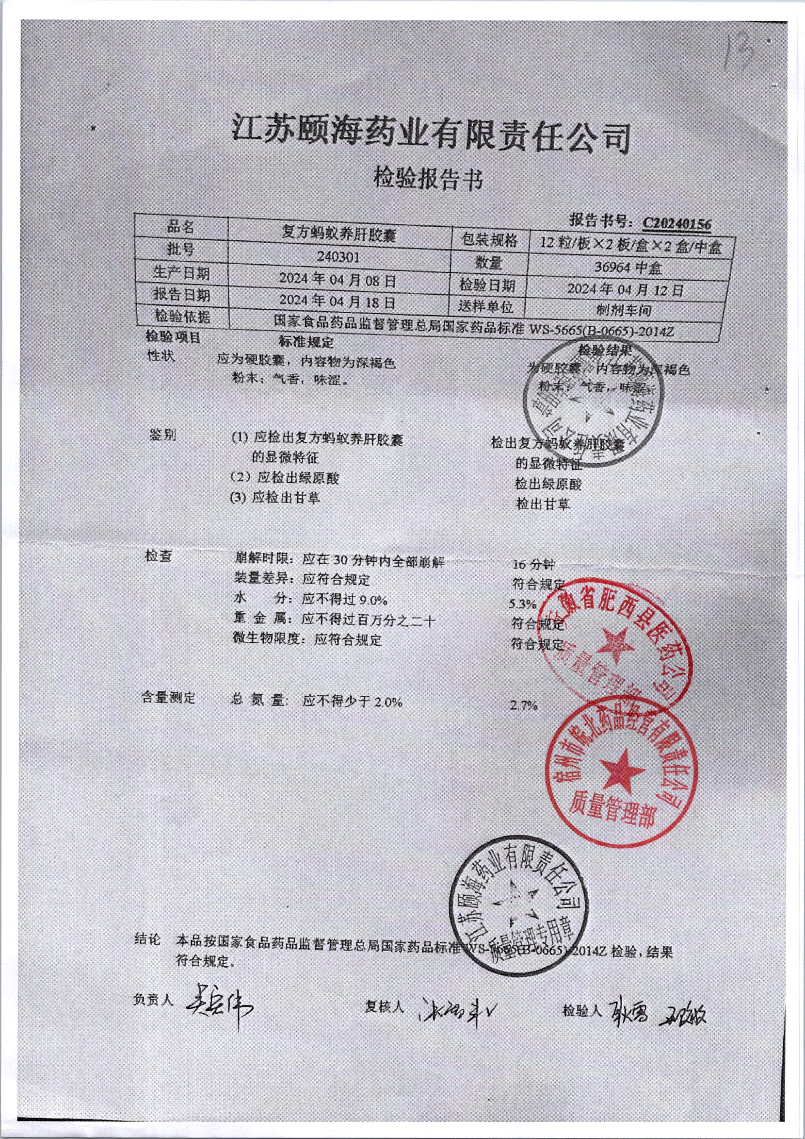 | 復(fù)方螞蟻養(yǎng)肝膠囊 | 24s | 240301/2 | 查看詳情 |