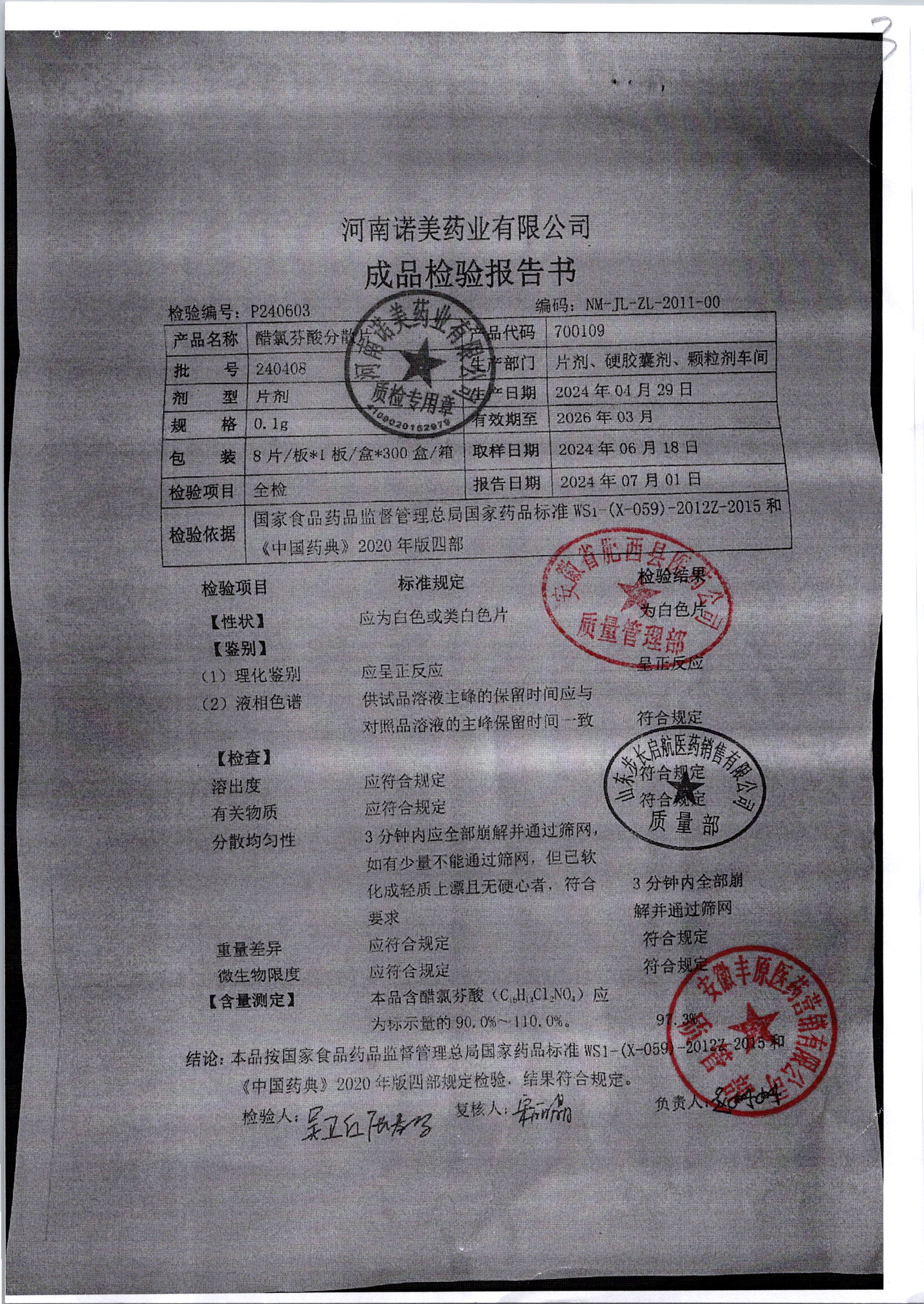 名稱 規(guī)格 批號 藥檢報告