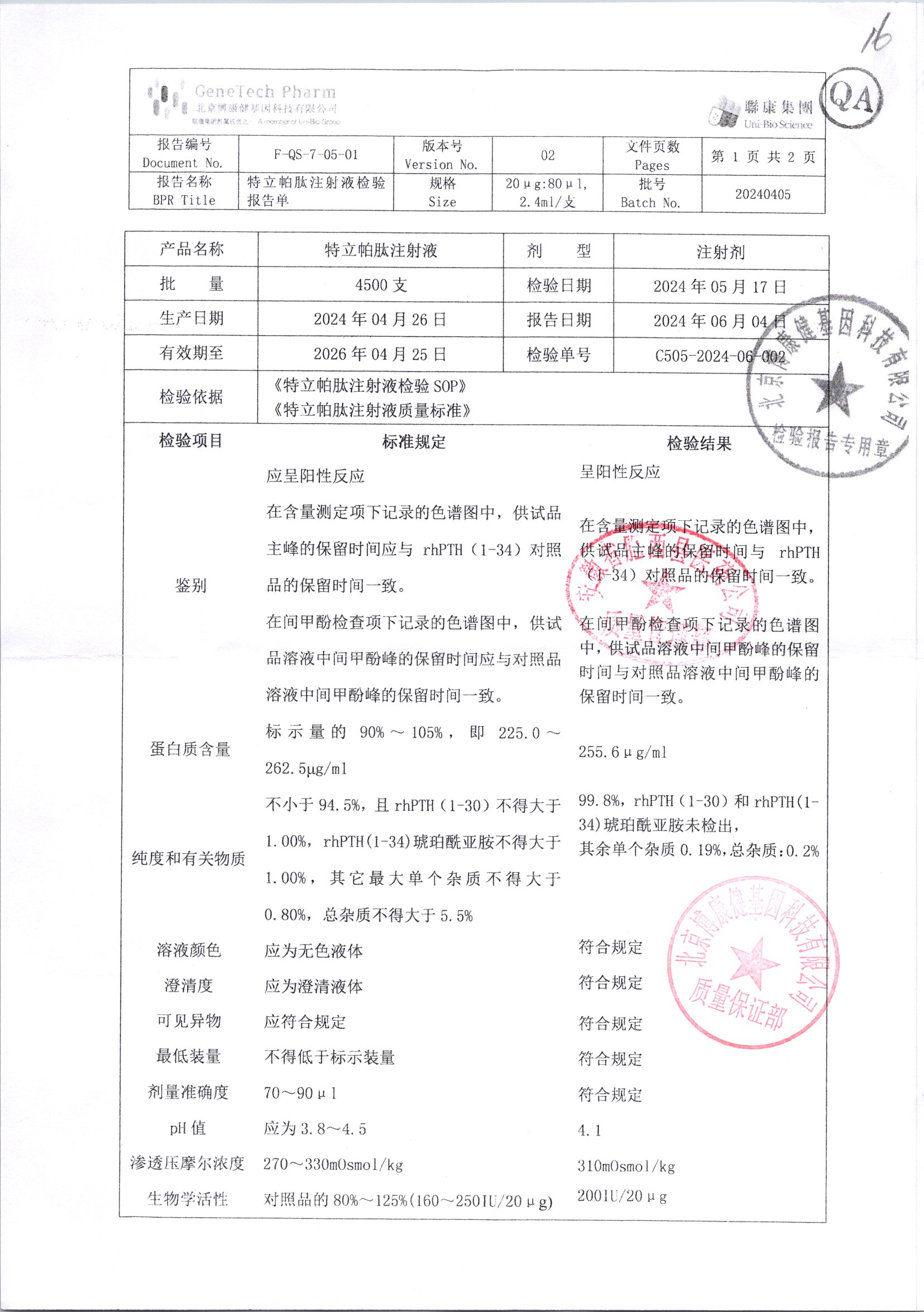 | 特立帕肽注射液 | 20ug:80ul | 20240405/5 | 查看詳情 |