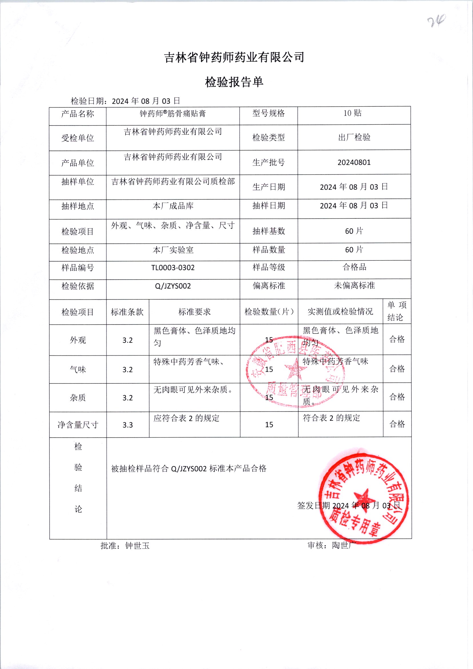 名稱(chēng) 規(guī)格 批號(hào) 藥檢報(bào)告