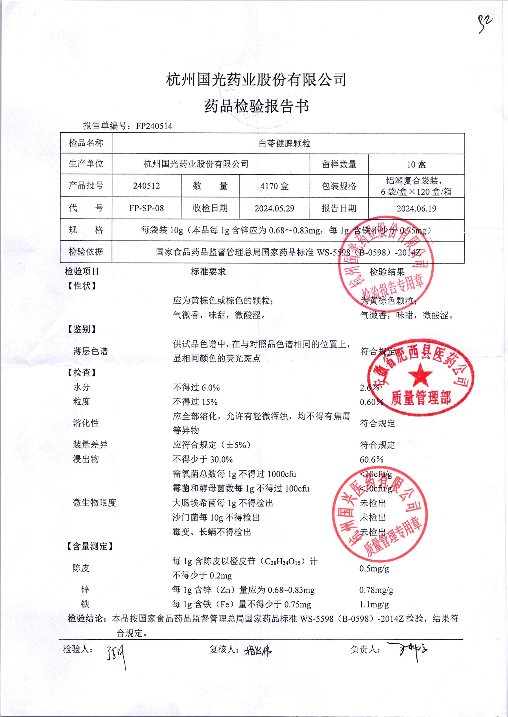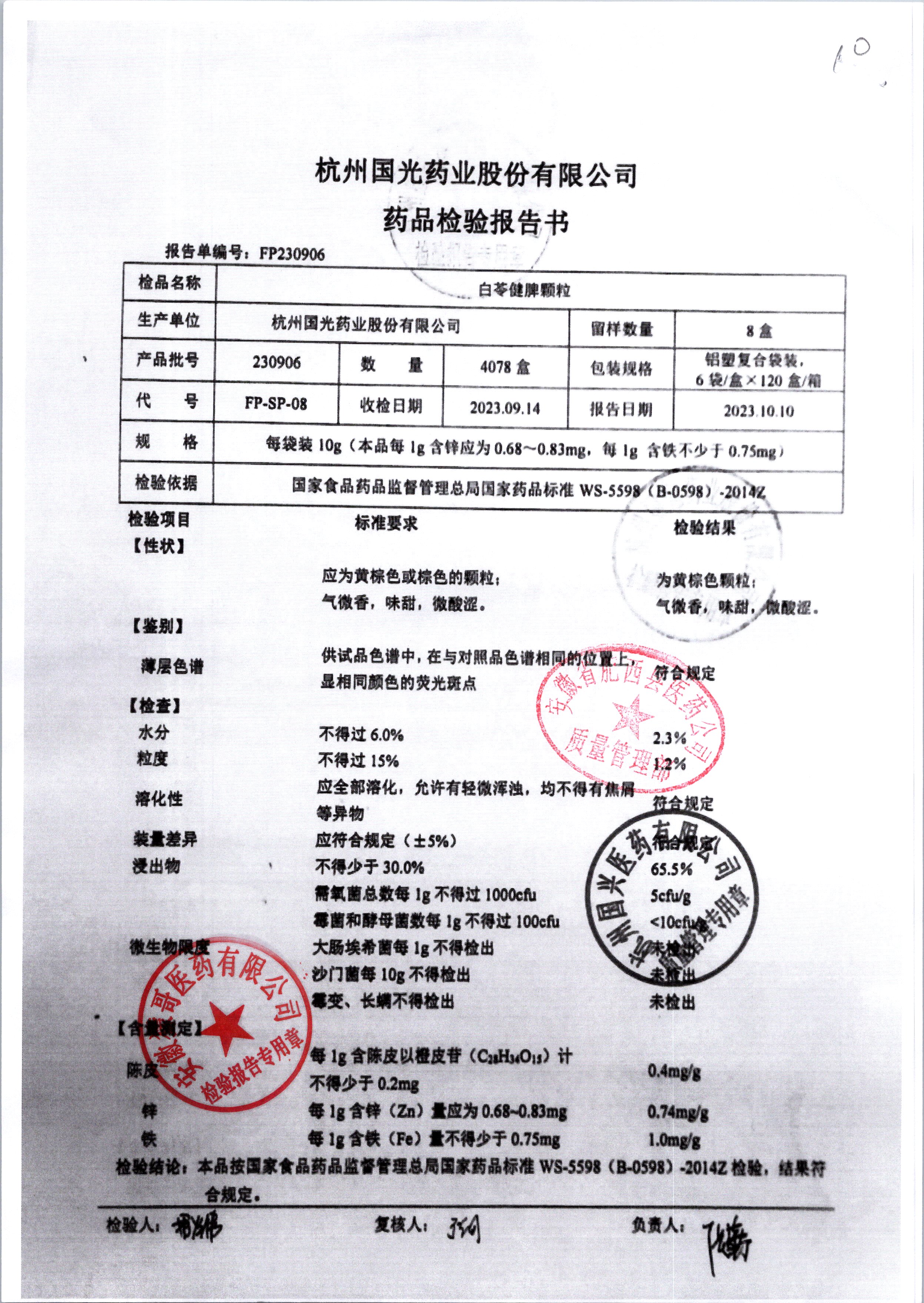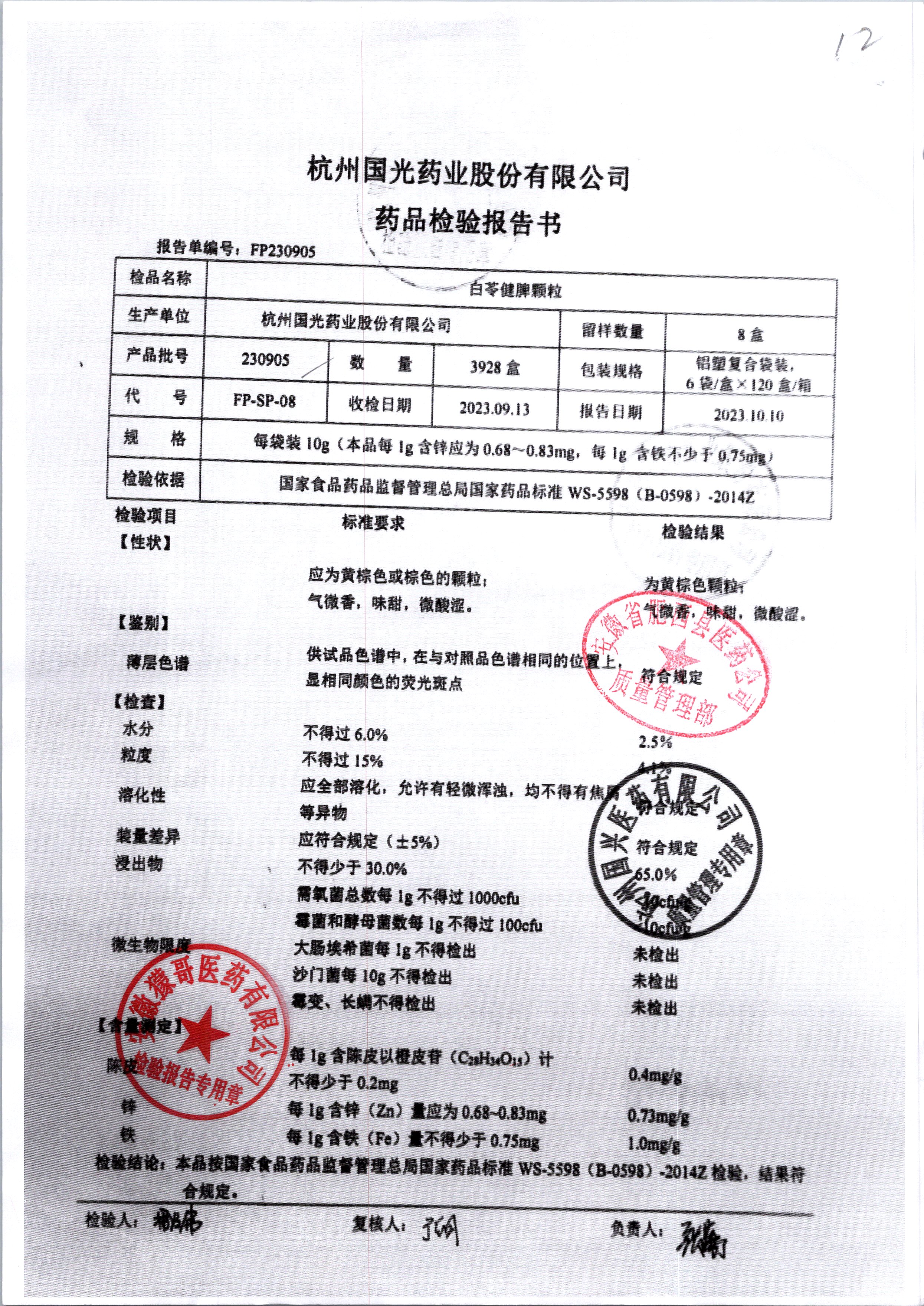 | 白苓健脾顆粒 | 10g*6袋 | 240512 | 查看詳情 |