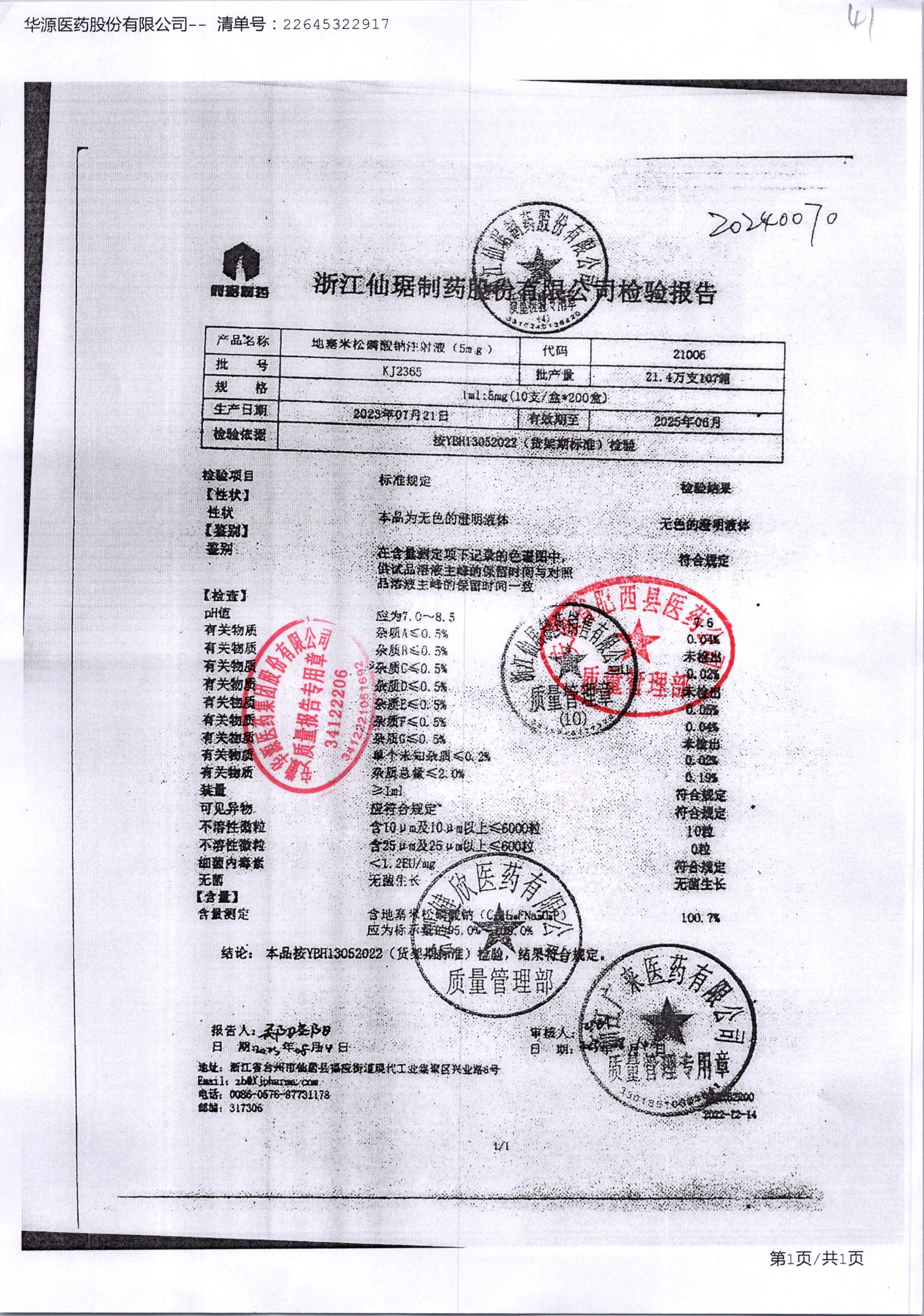 名稱 規(guī)格 批號(hào) 藥檢報(bào)告
