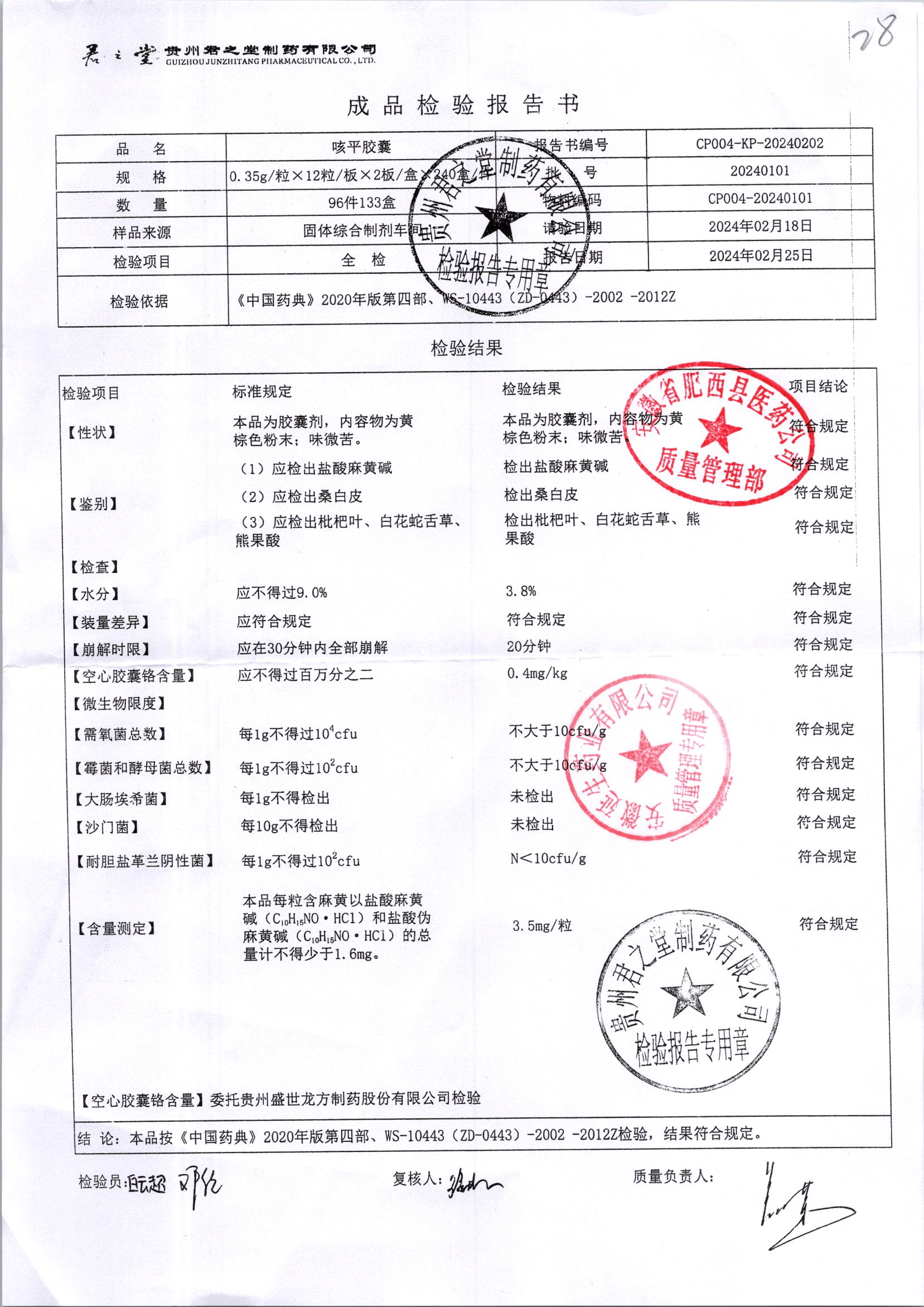 名稱 規(guī)格 批號(hào) 藥檢報(bào)告