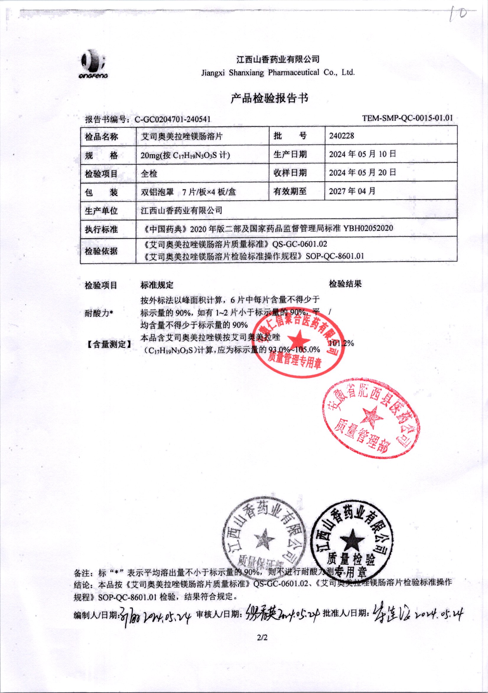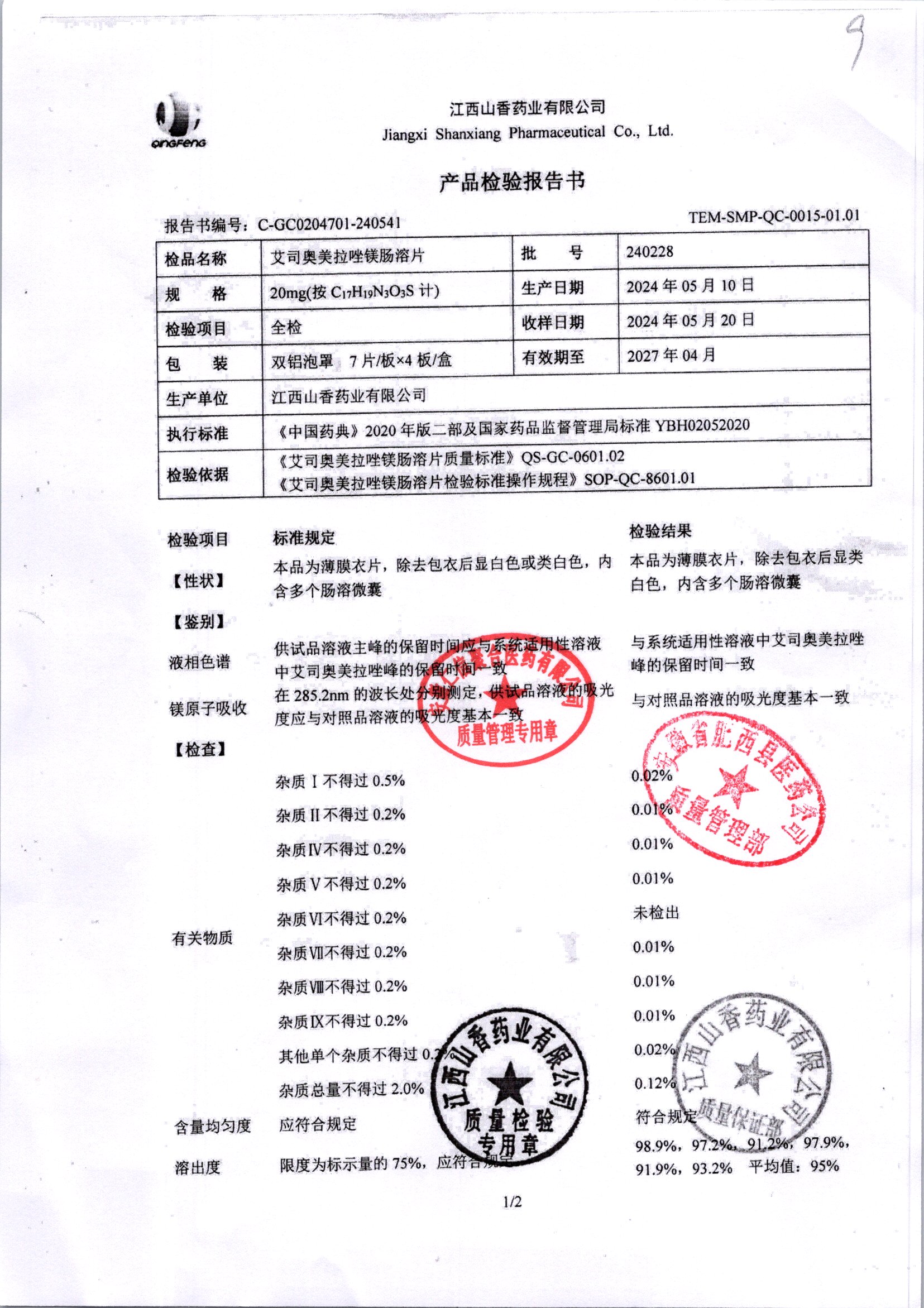 艾司奧美拉唑鎂腸溶片 20mg*28片 240228 查看詳情