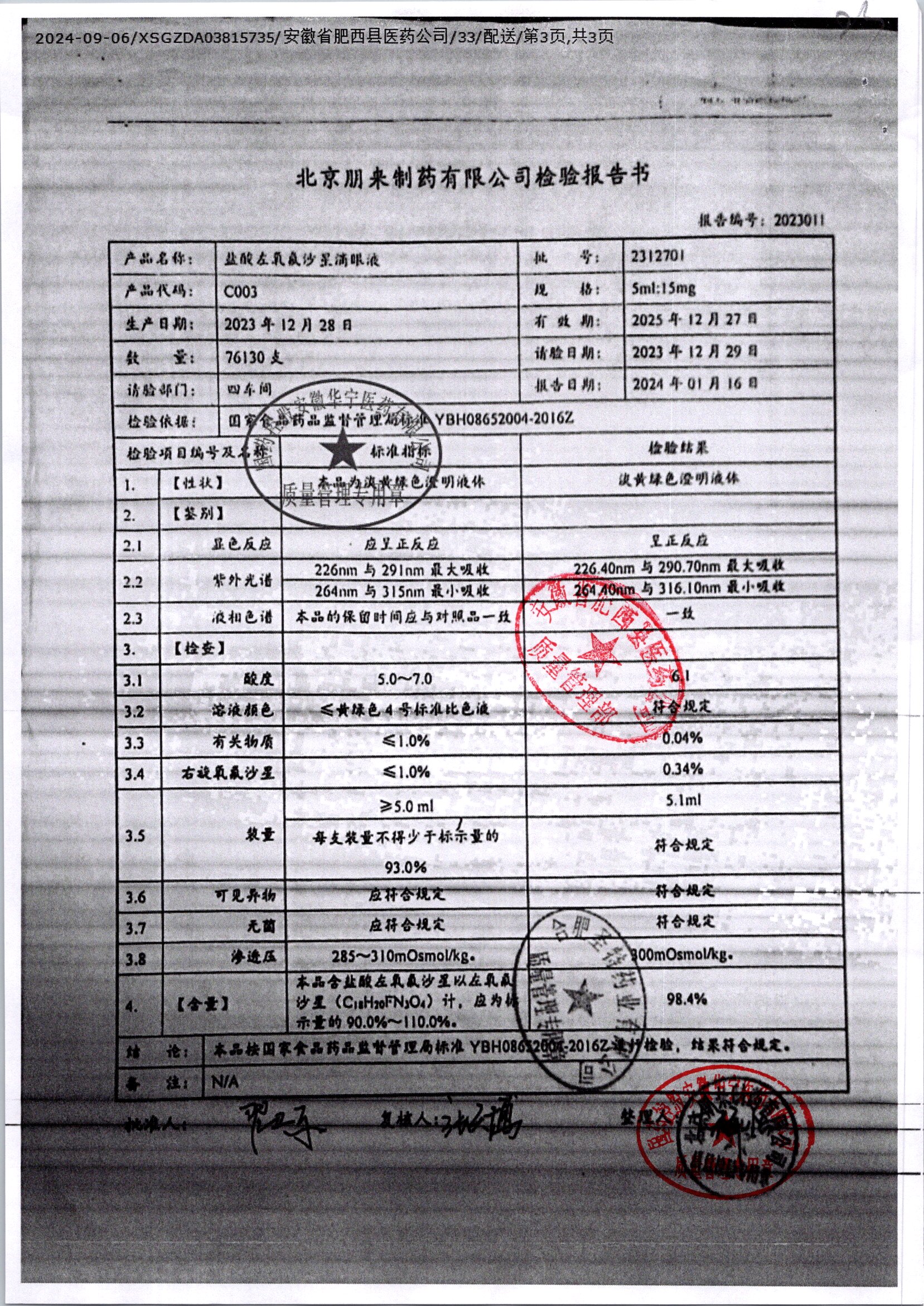 鹽酸左氧氟沙星滴眼液 5ml:15mg 2312701 查看詳情