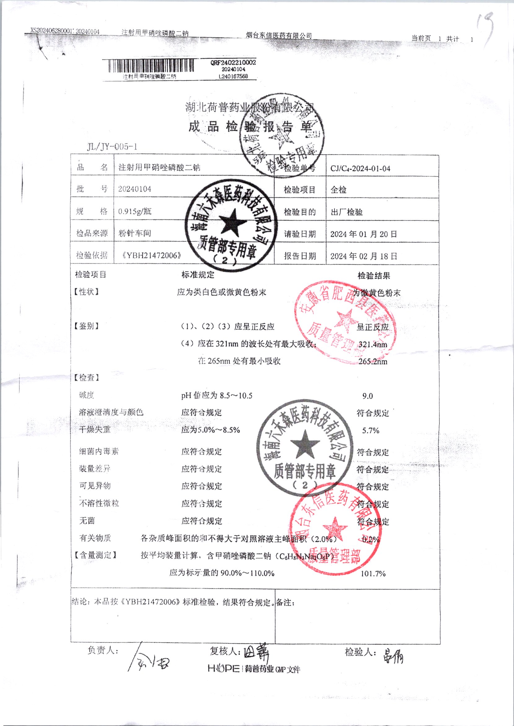 名稱 規(guī)格 批號 藥檢報告