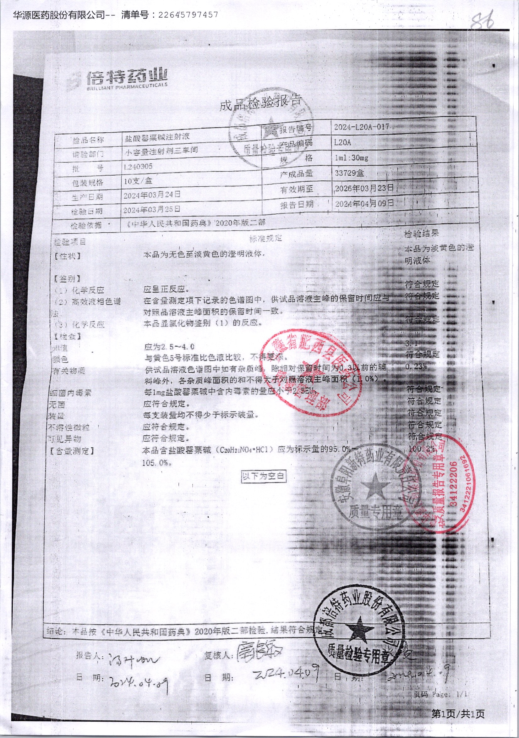 名稱 規(guī)格 批號(hào) 藥檢報(bào)告
