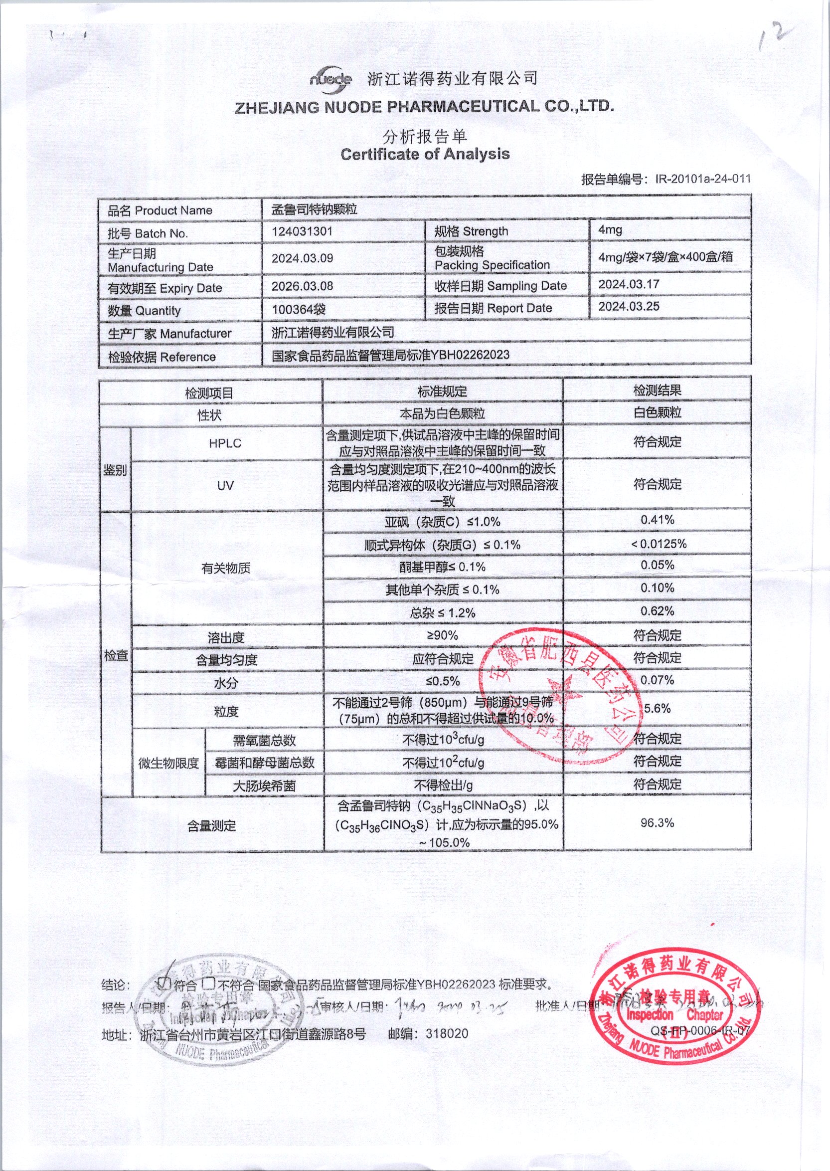 孟魯司特鈉顆粒 4mg*7袋 124031301 查看詳情