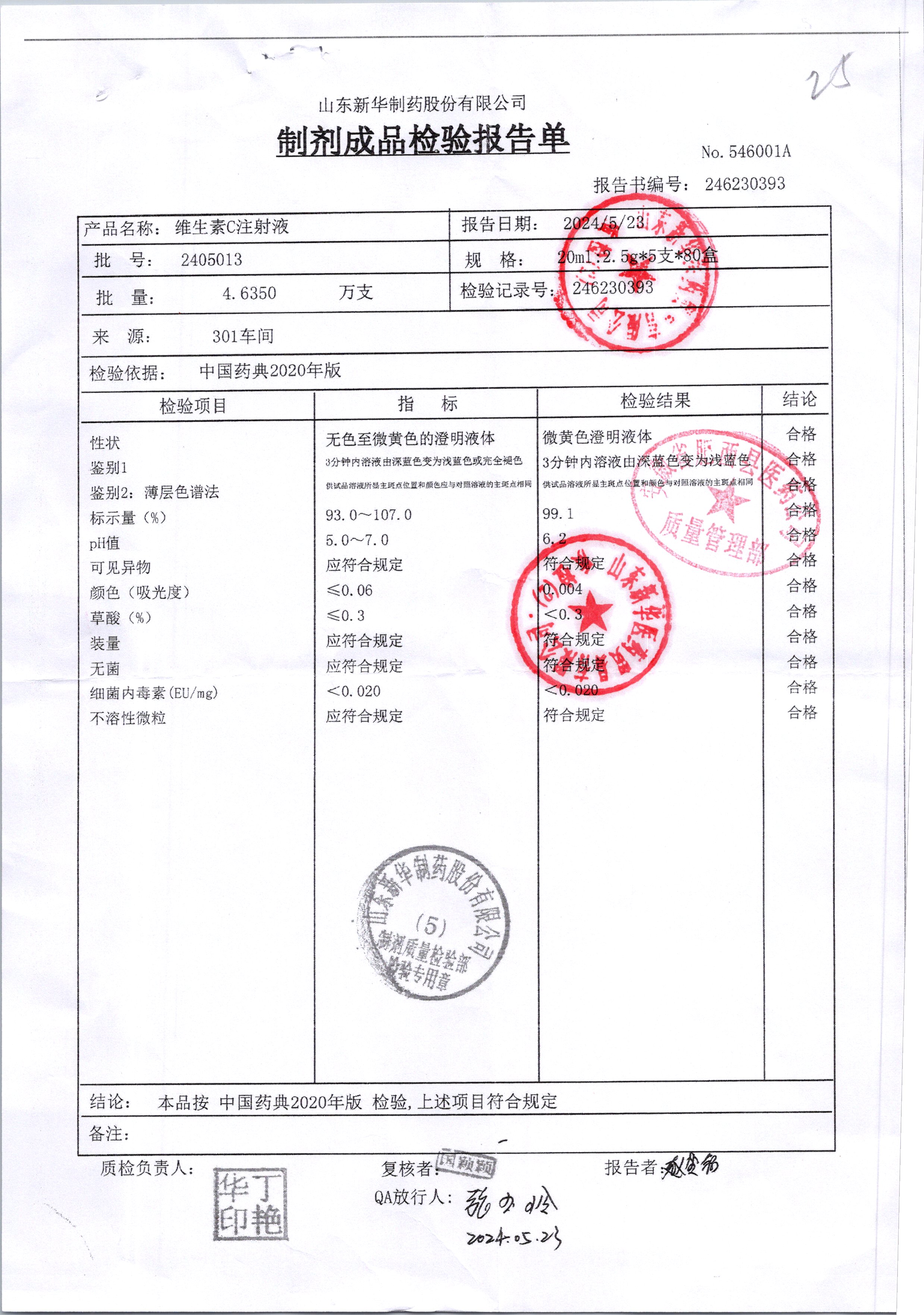 維生素C注射液 20ml:2.5G *5支 2405013 查看詳情