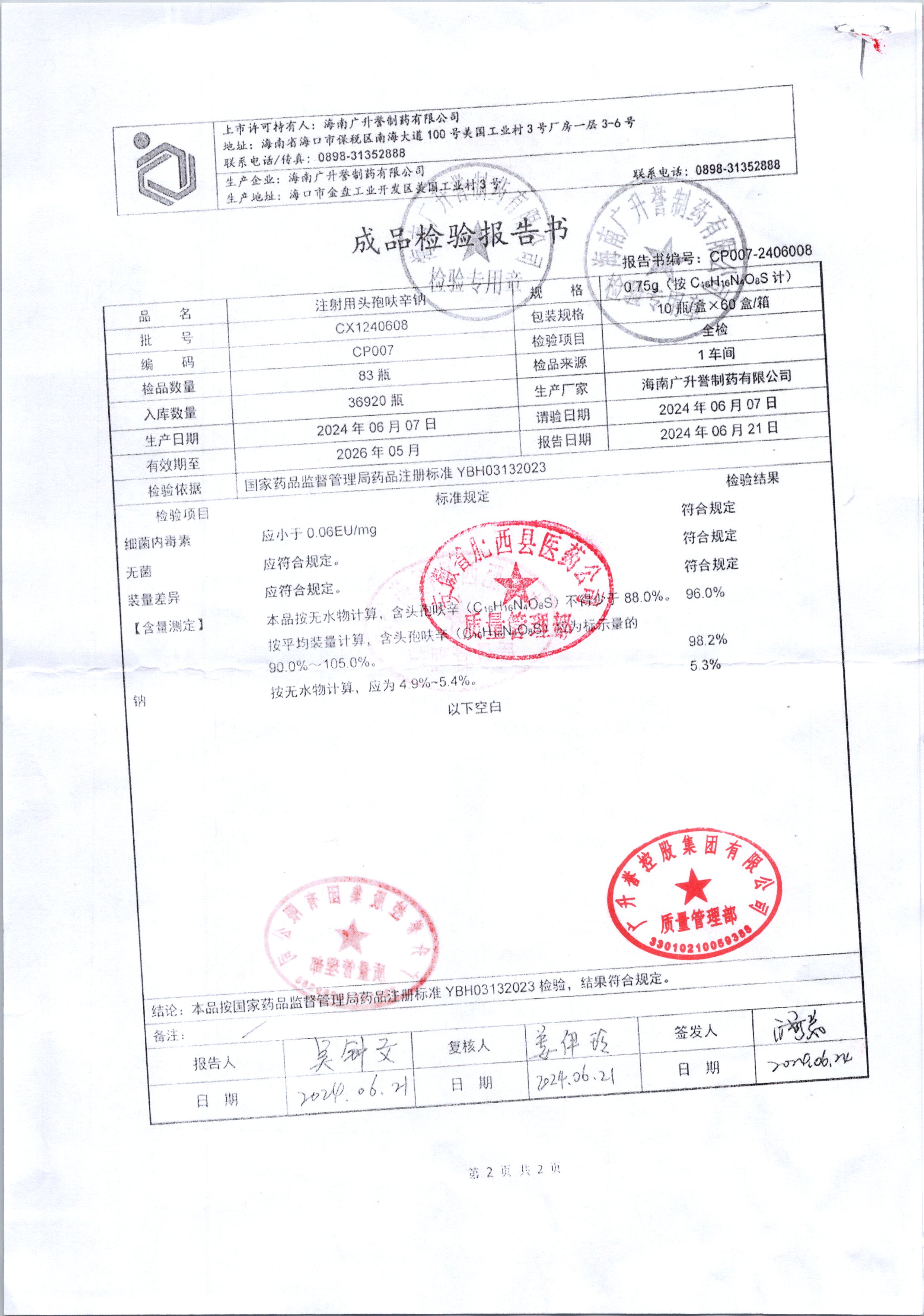 注射用頭孢呋辛鈉 0.75G*10瓶 CX 1240608 查看詳情