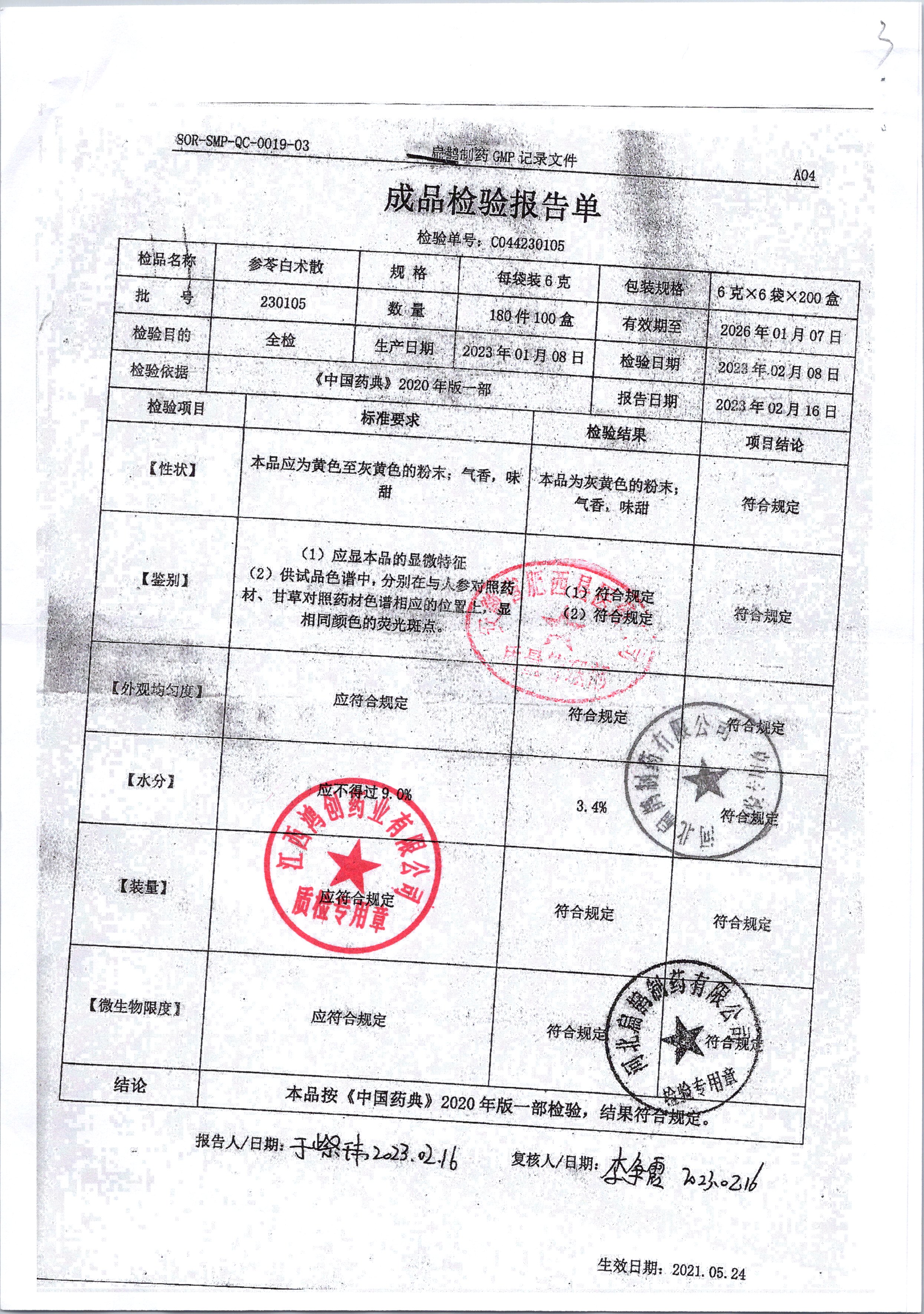 名稱 規(guī)格 批號 藥檢報告