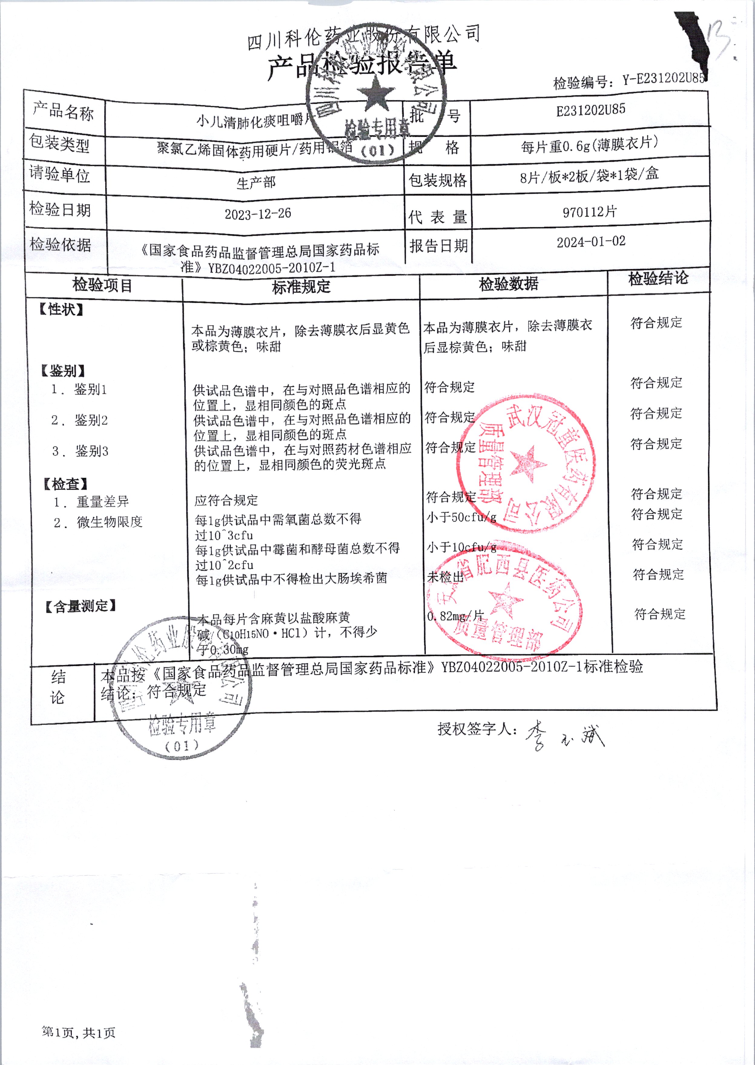 小兒清肺化痰咀嚼片 0.6g*16s E231202U85 查看詳情