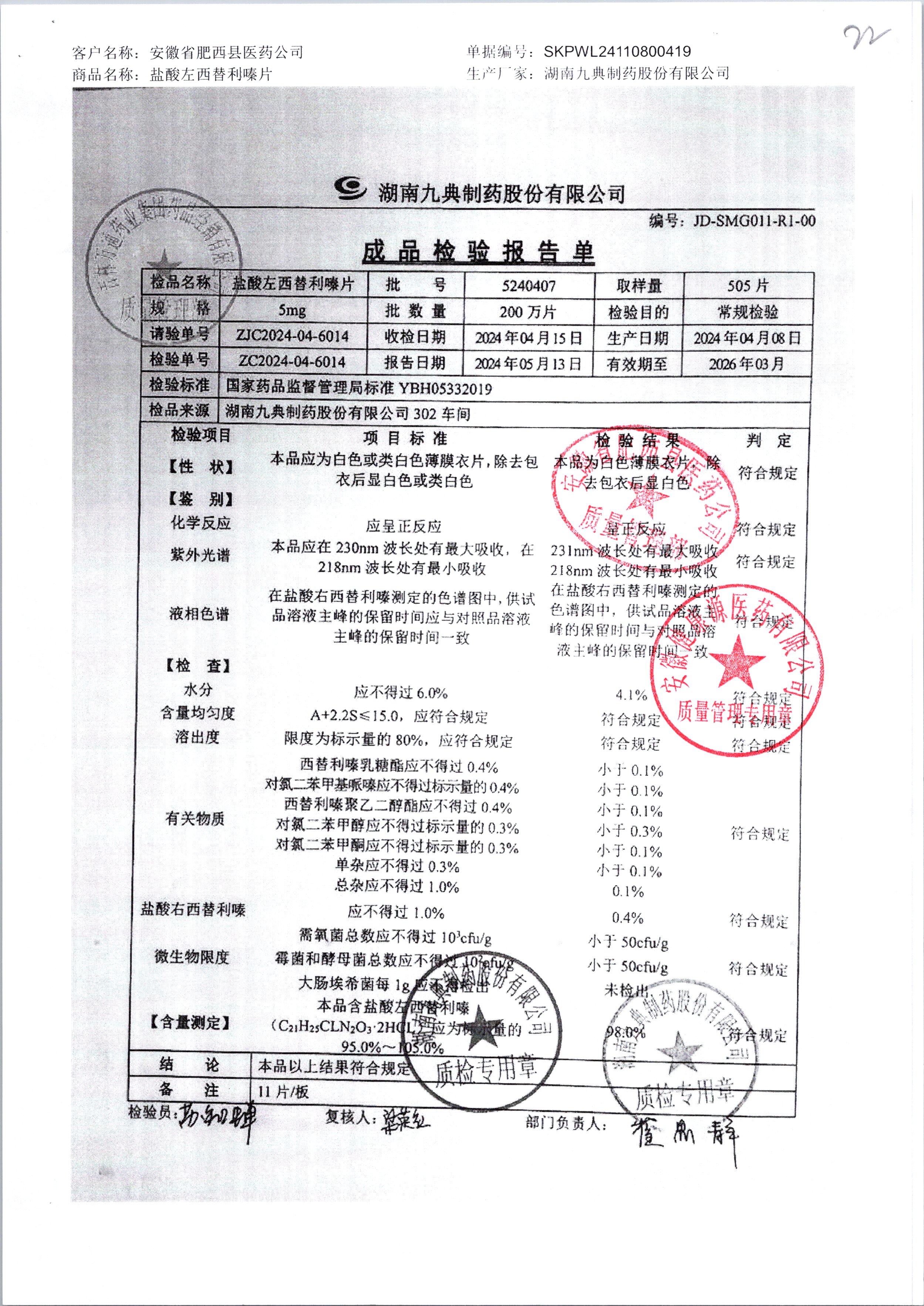 名稱(chēng) 規(guī)格 批號(hào) 藥檢報(bào)告