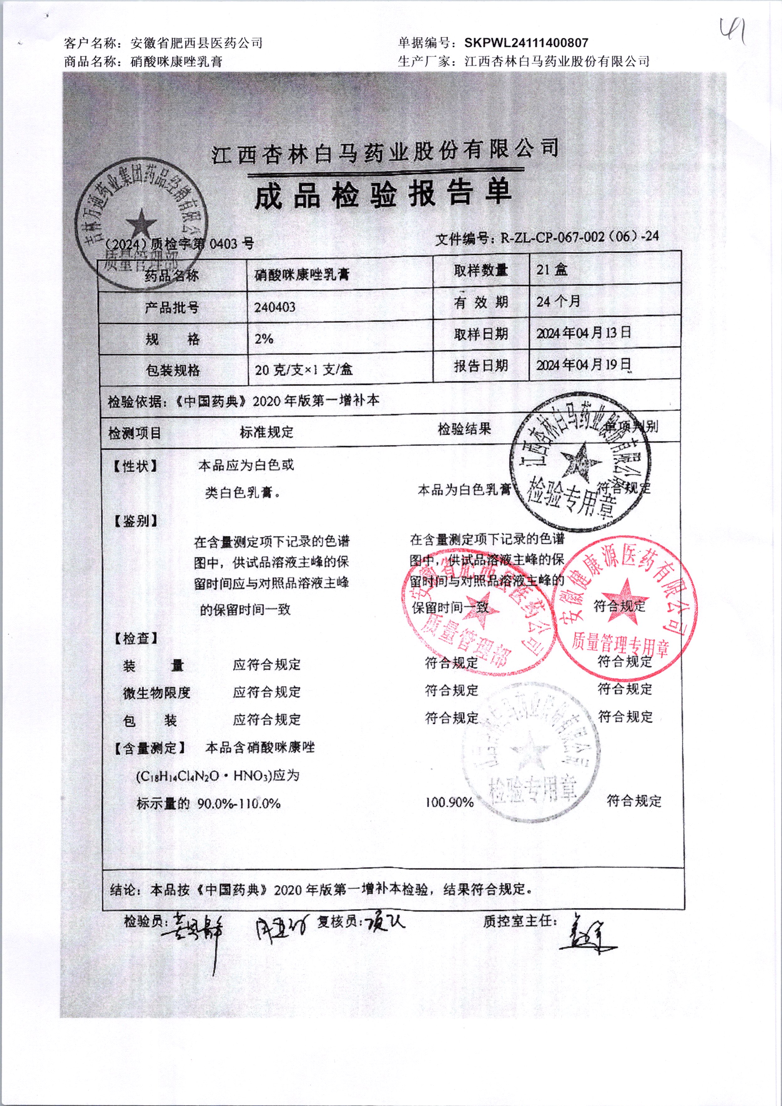 名稱 規(guī)格 批號 藥檢報告