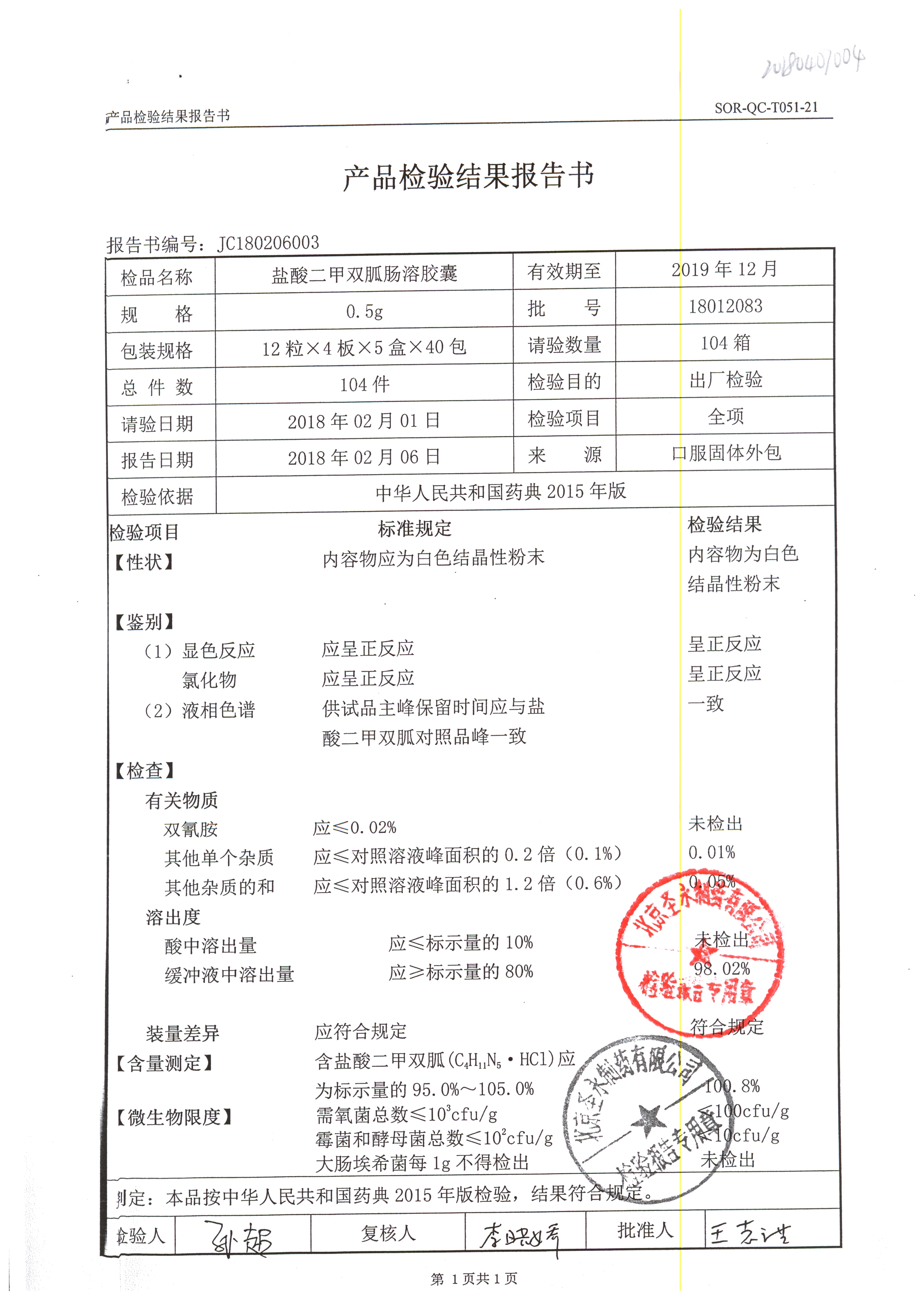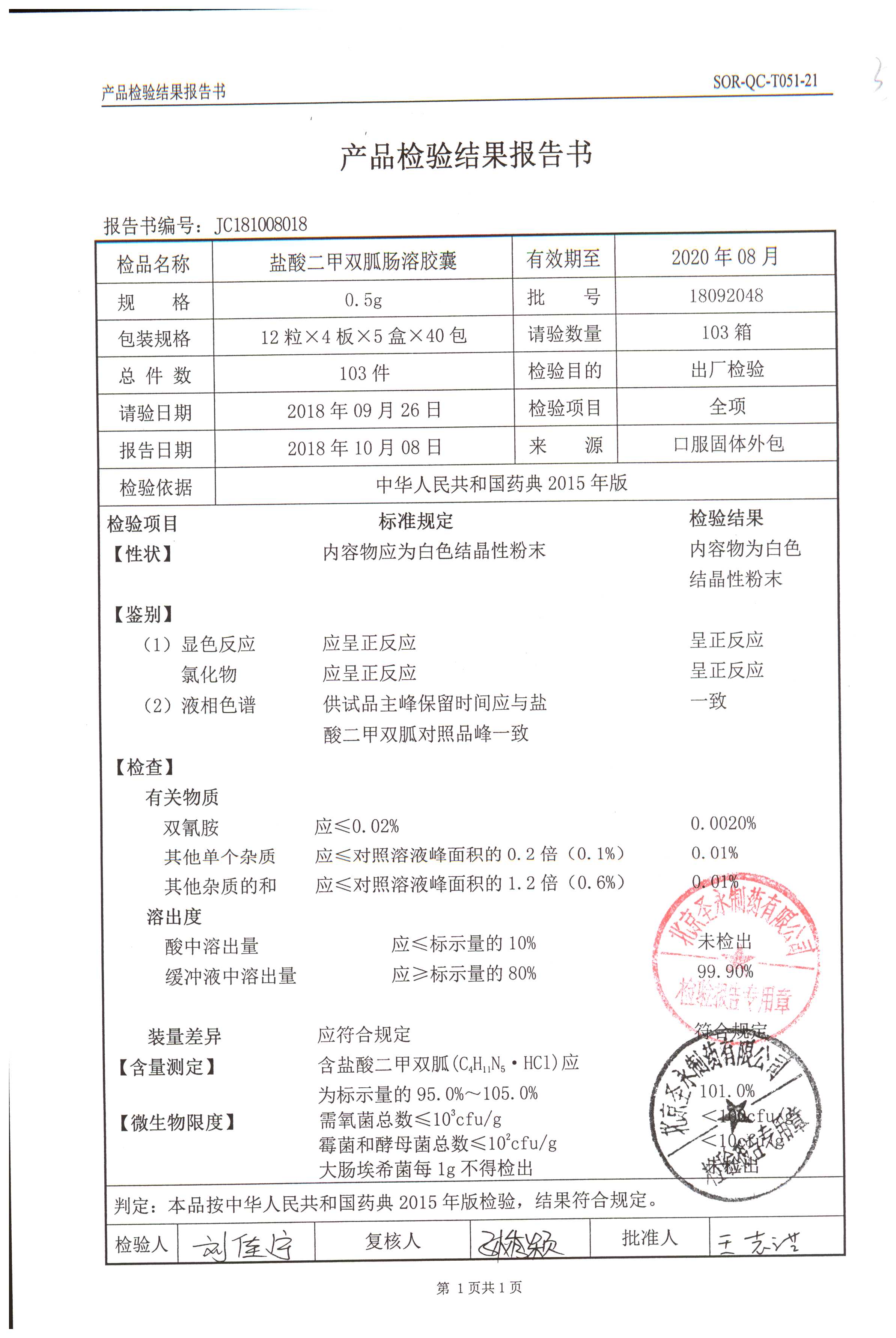 | 鹽酸二甲雙胍腸溶膠囊 | 0.5g*48粒 | 18102043(2/2) | 查看詳情 |