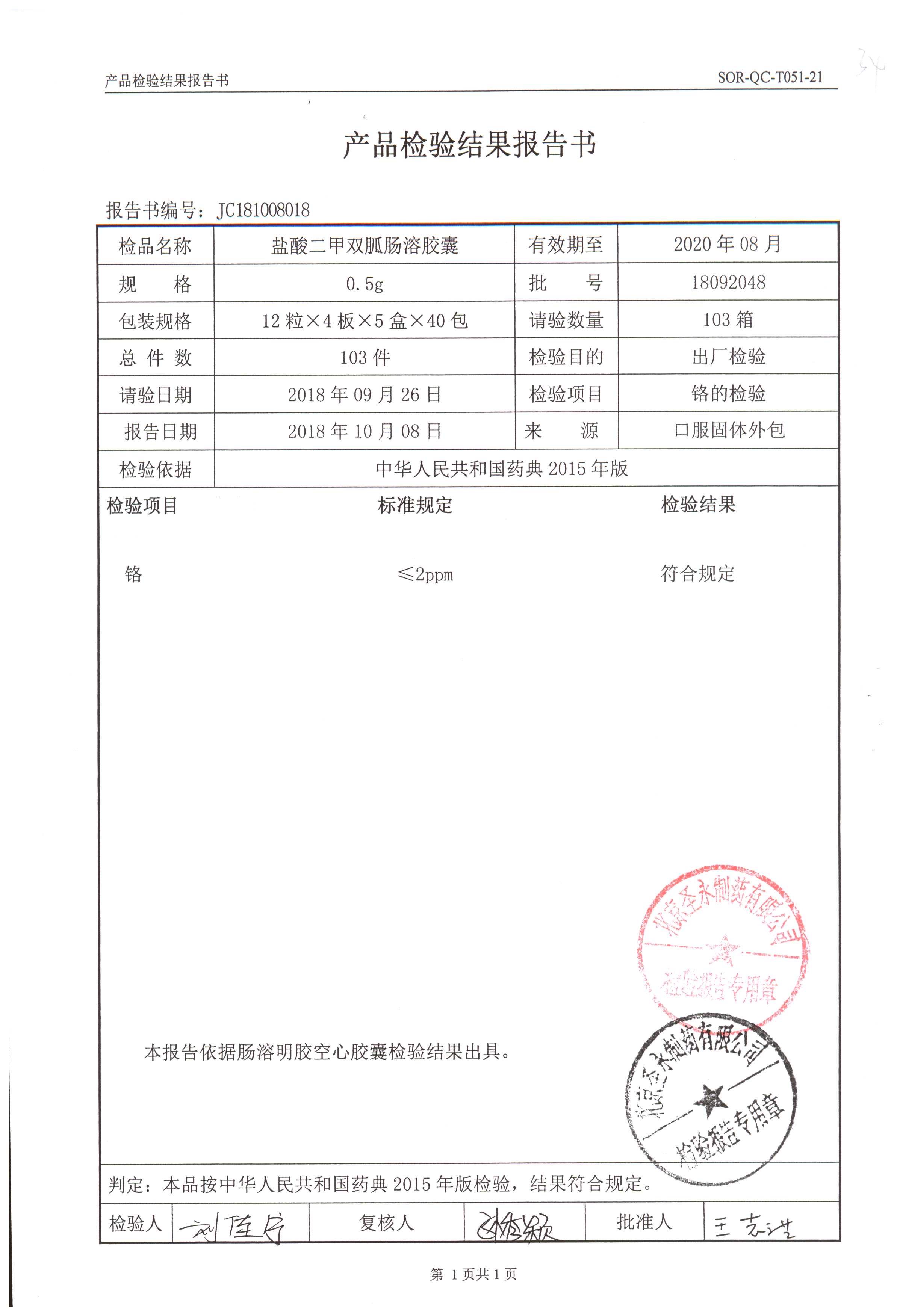 | 鹽酸二甲雙胍腸溶膠囊 | 0.5g*48粒 | 18092048(1/2) | 查看詳情 |
