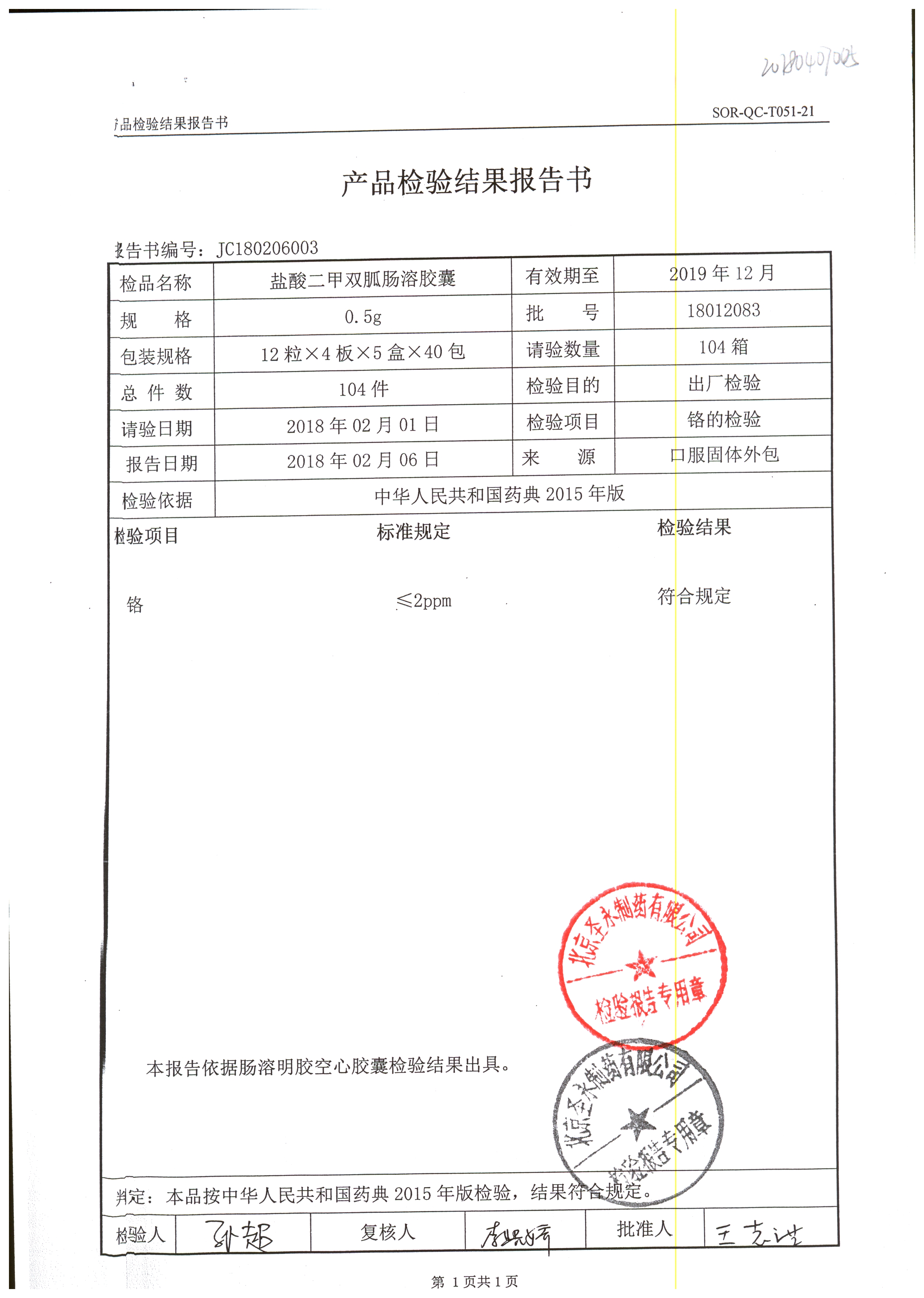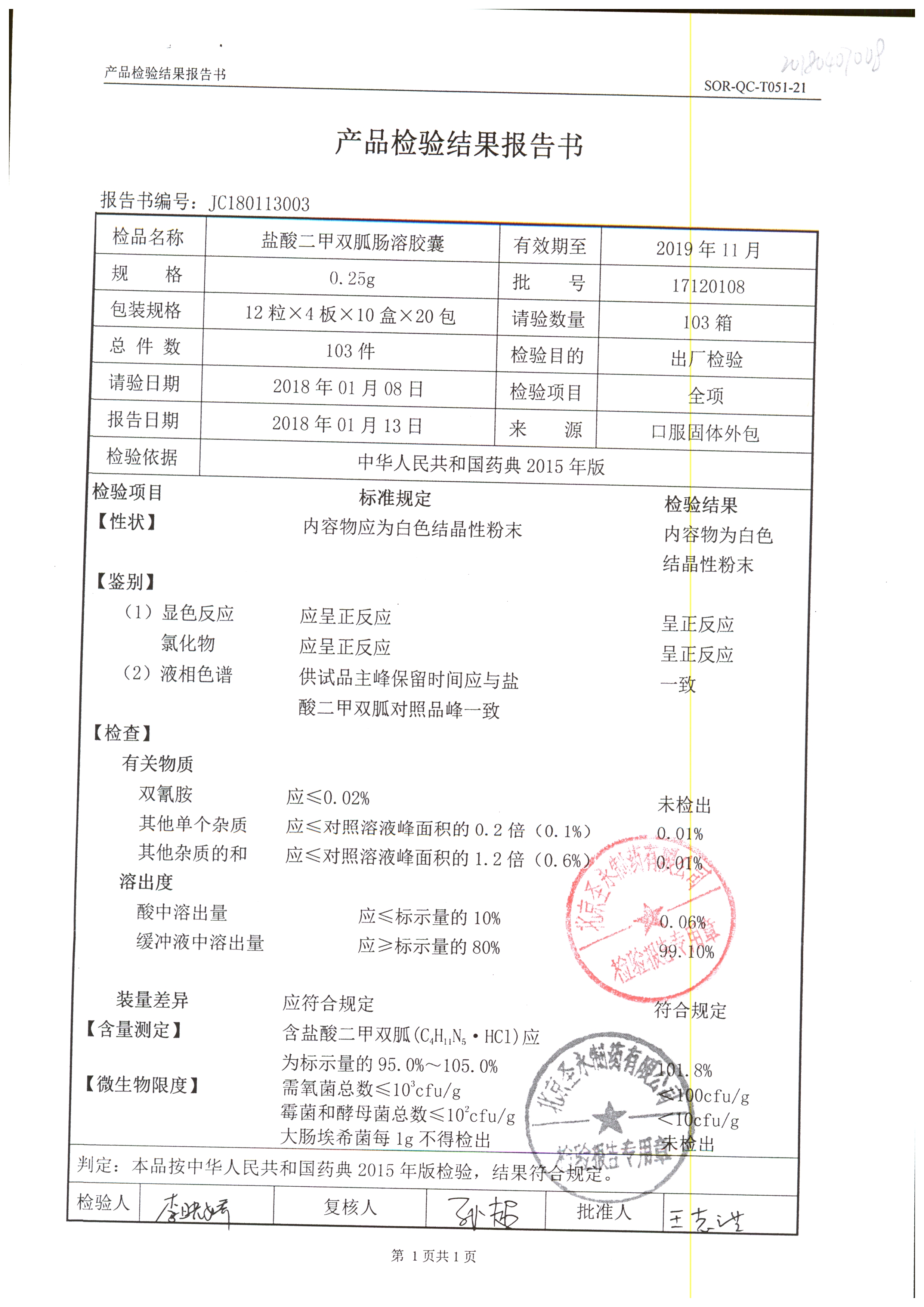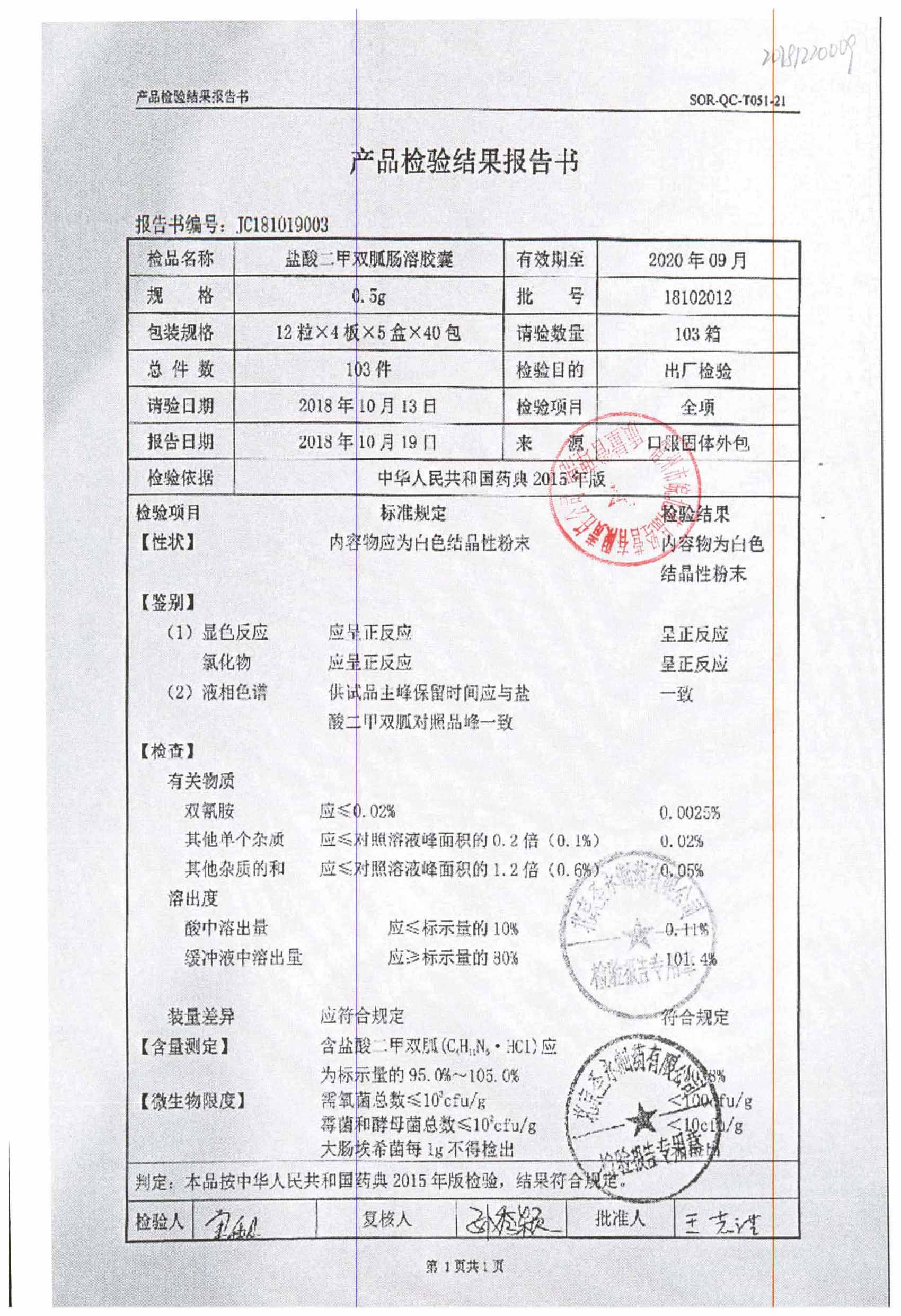 | 鹽酸二甲雙胍腸溶膠囊 | 0.5g*48粒 | 18102054(1/2) | 查看詳情 |