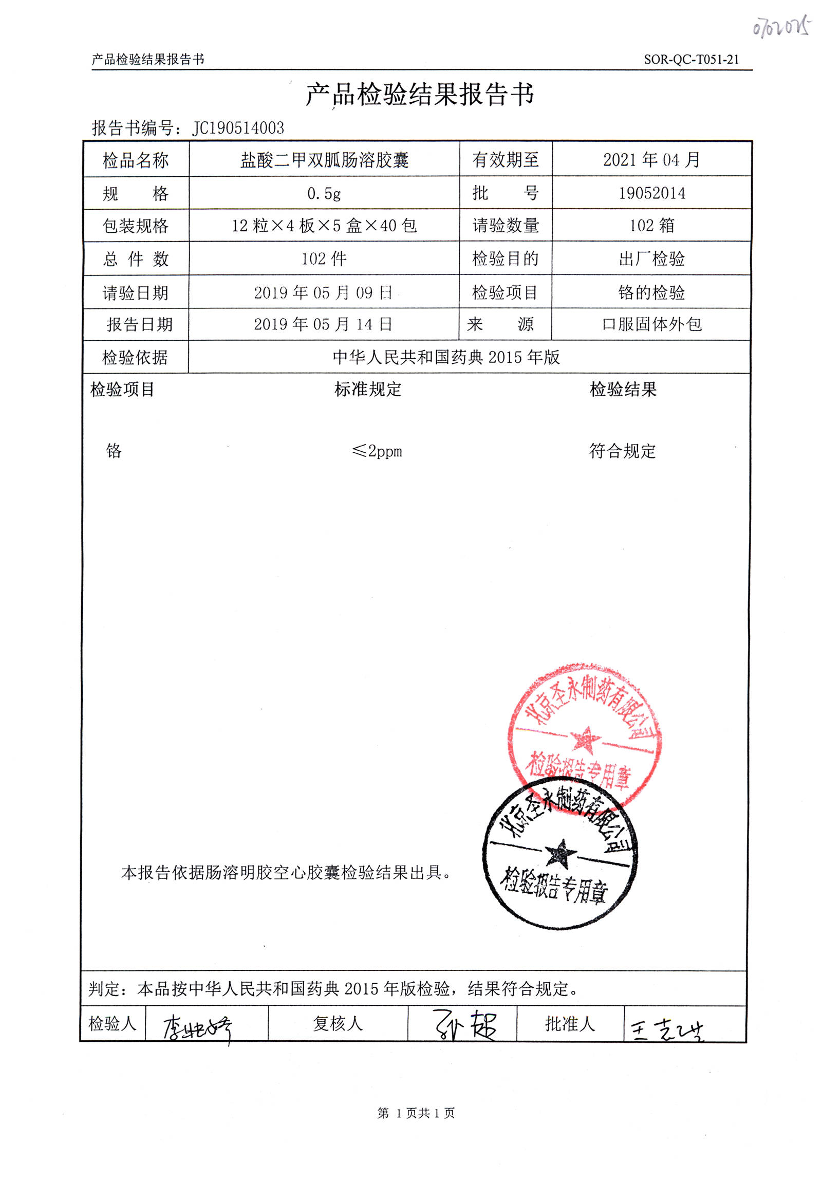 | 鹽酸二甲雙胍腸溶膠囊 | 0.5g*48粒 | 19052041(2/2) | 查看詳情 |
