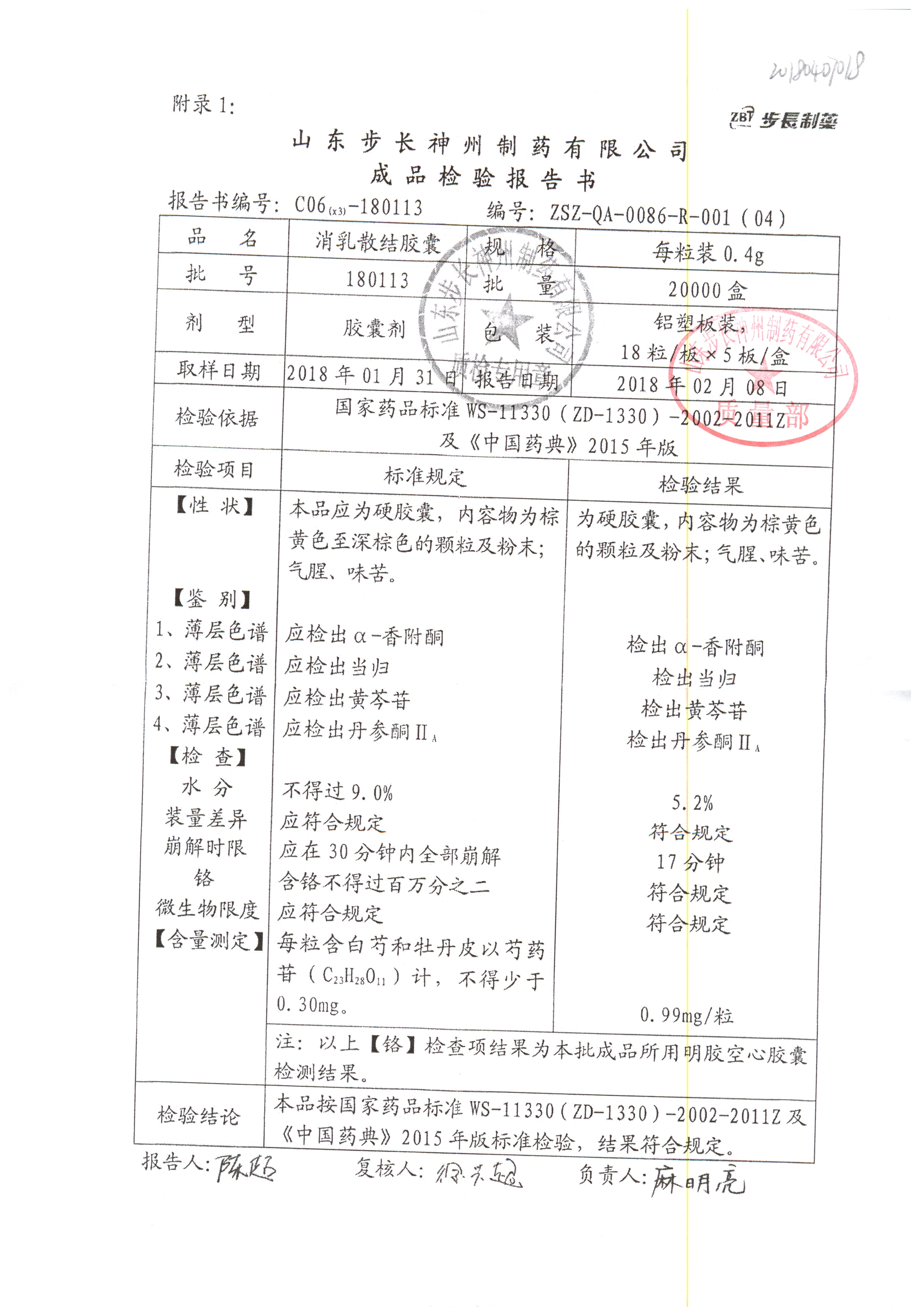 | 消乳散結(jié)膠囊 | 0.4g*90粒 | 180115 | 查看詳情 |