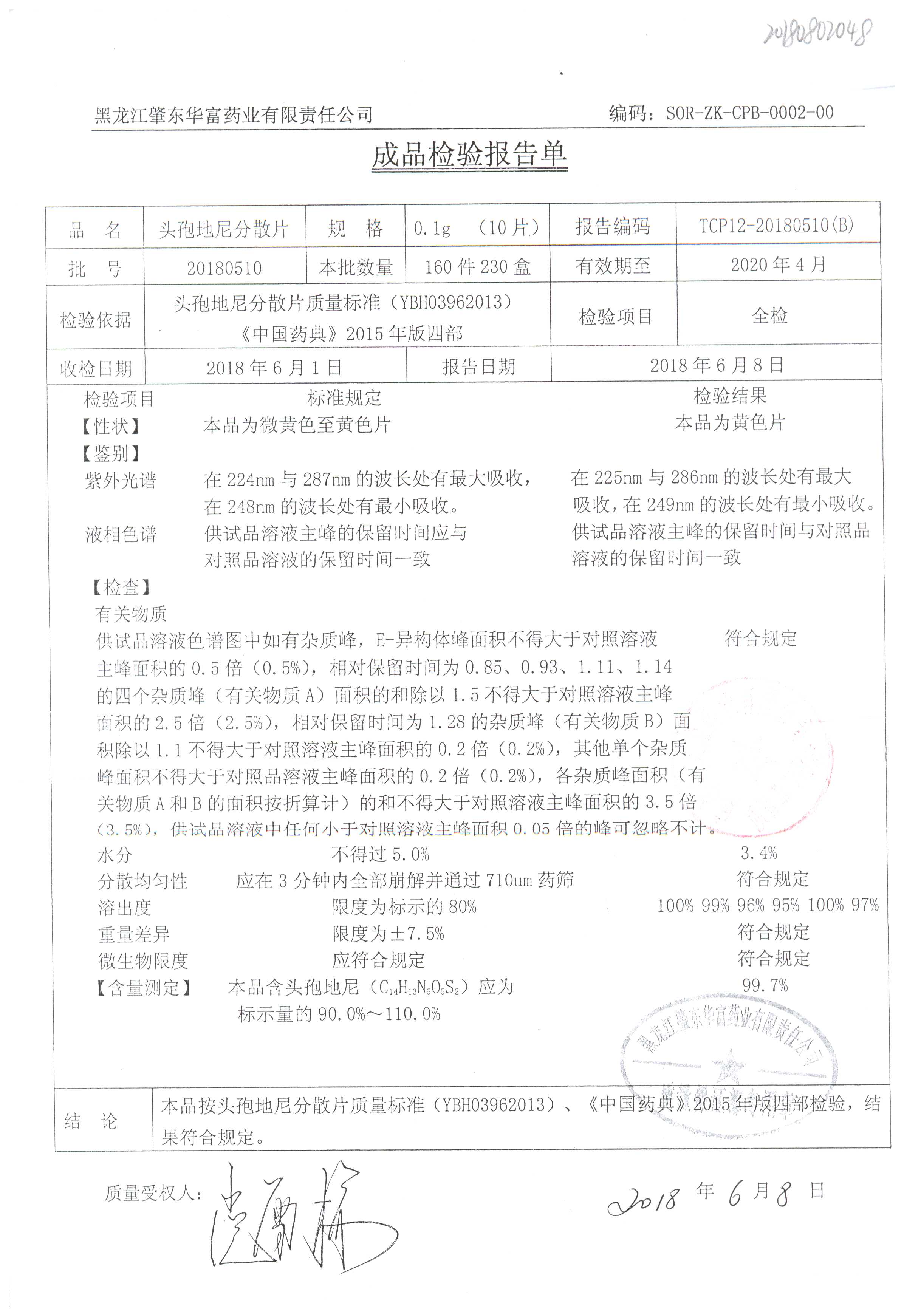 | 頭孢地尼分散片 | 0.1g*10s | 20181006 | 查看詳情 |