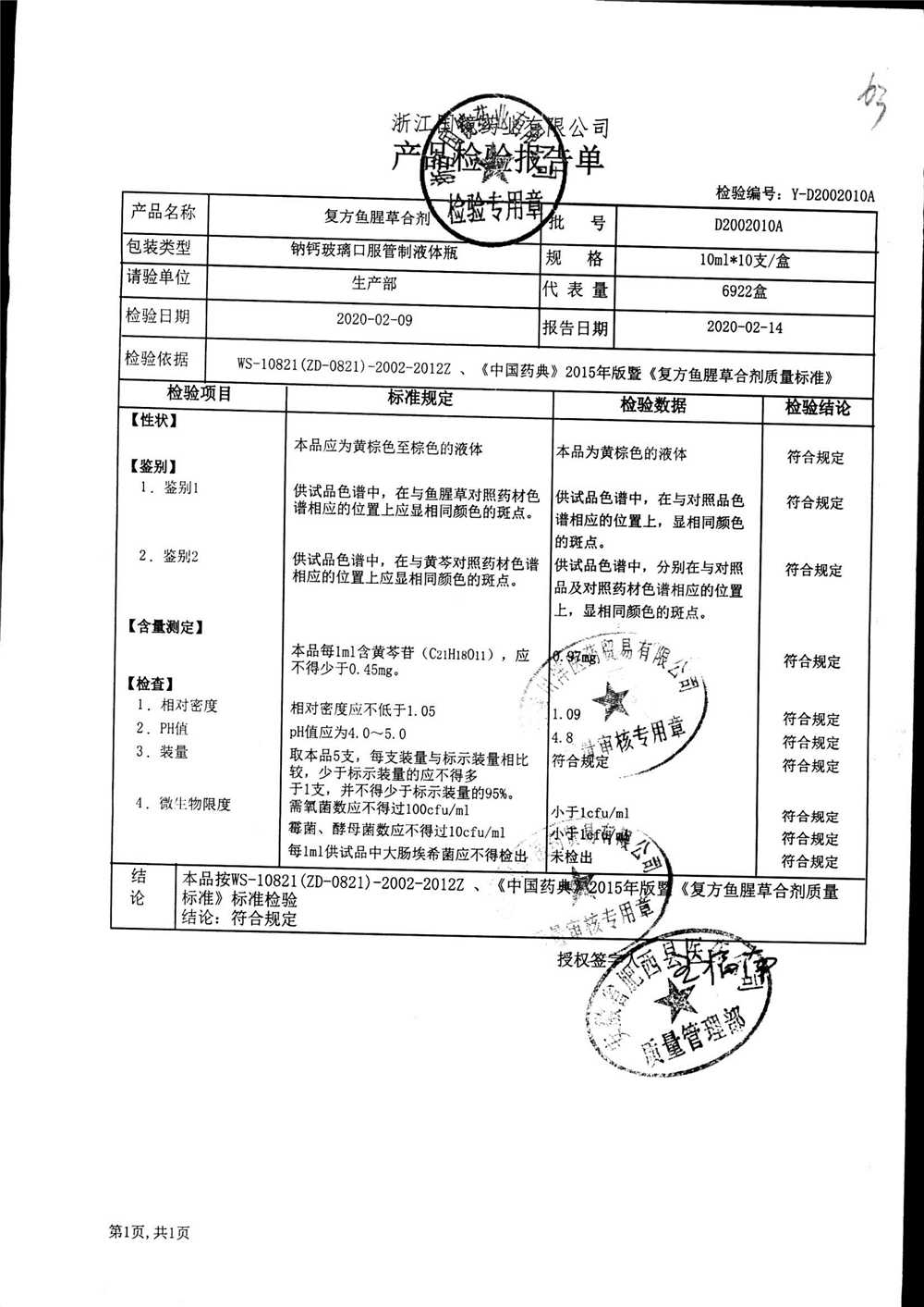 | 復(fù)方魚(yú)腥草合劑 | 10ml | 180200902 | 查看詳情 |
