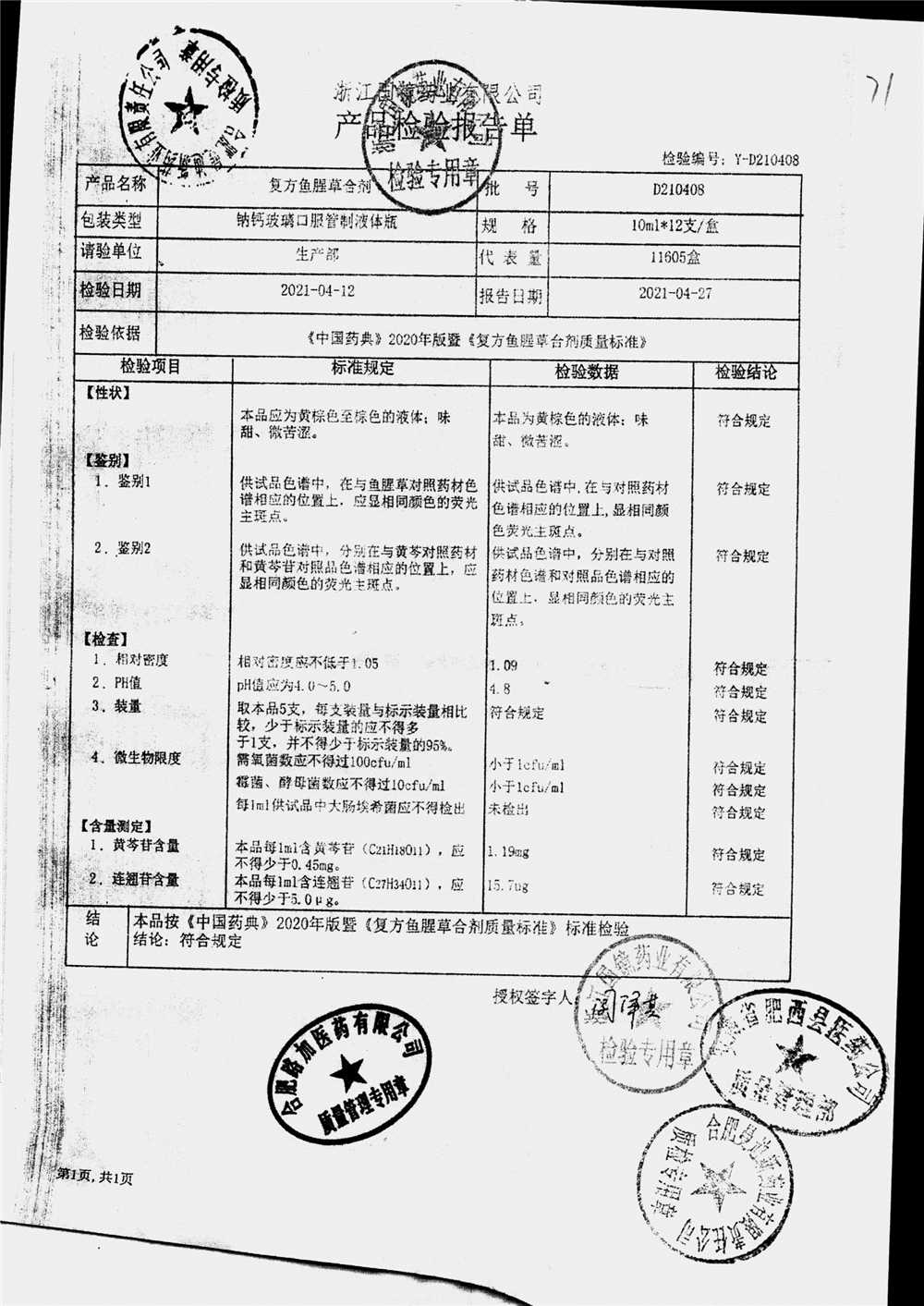 | 復(fù)方魚(yú)腥草合劑 | 10ml | D210408 | 查看詳情 |