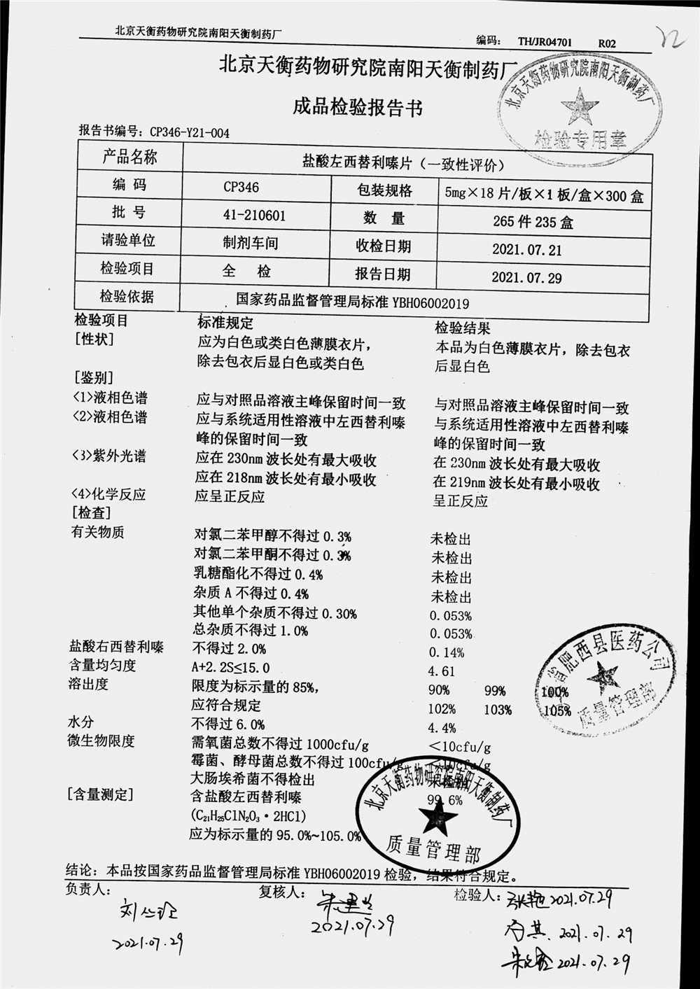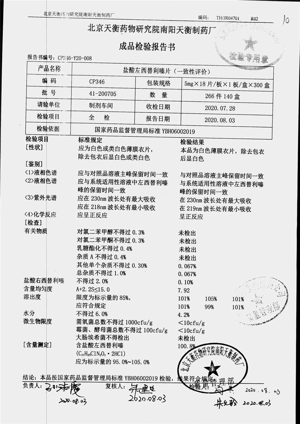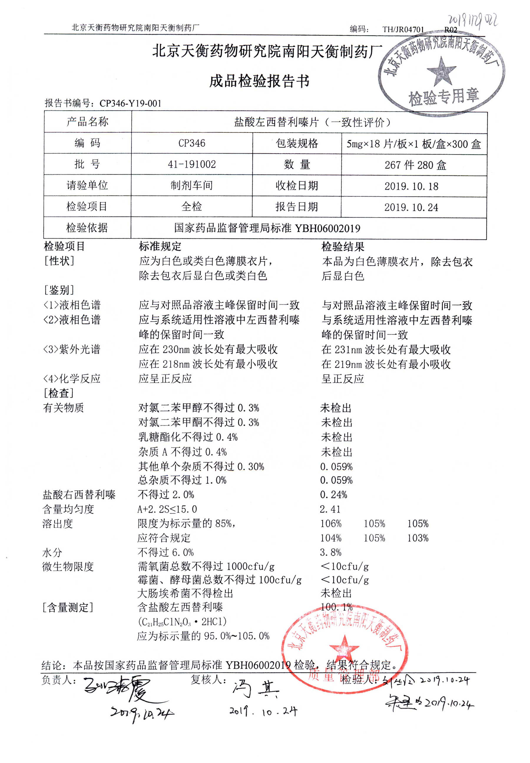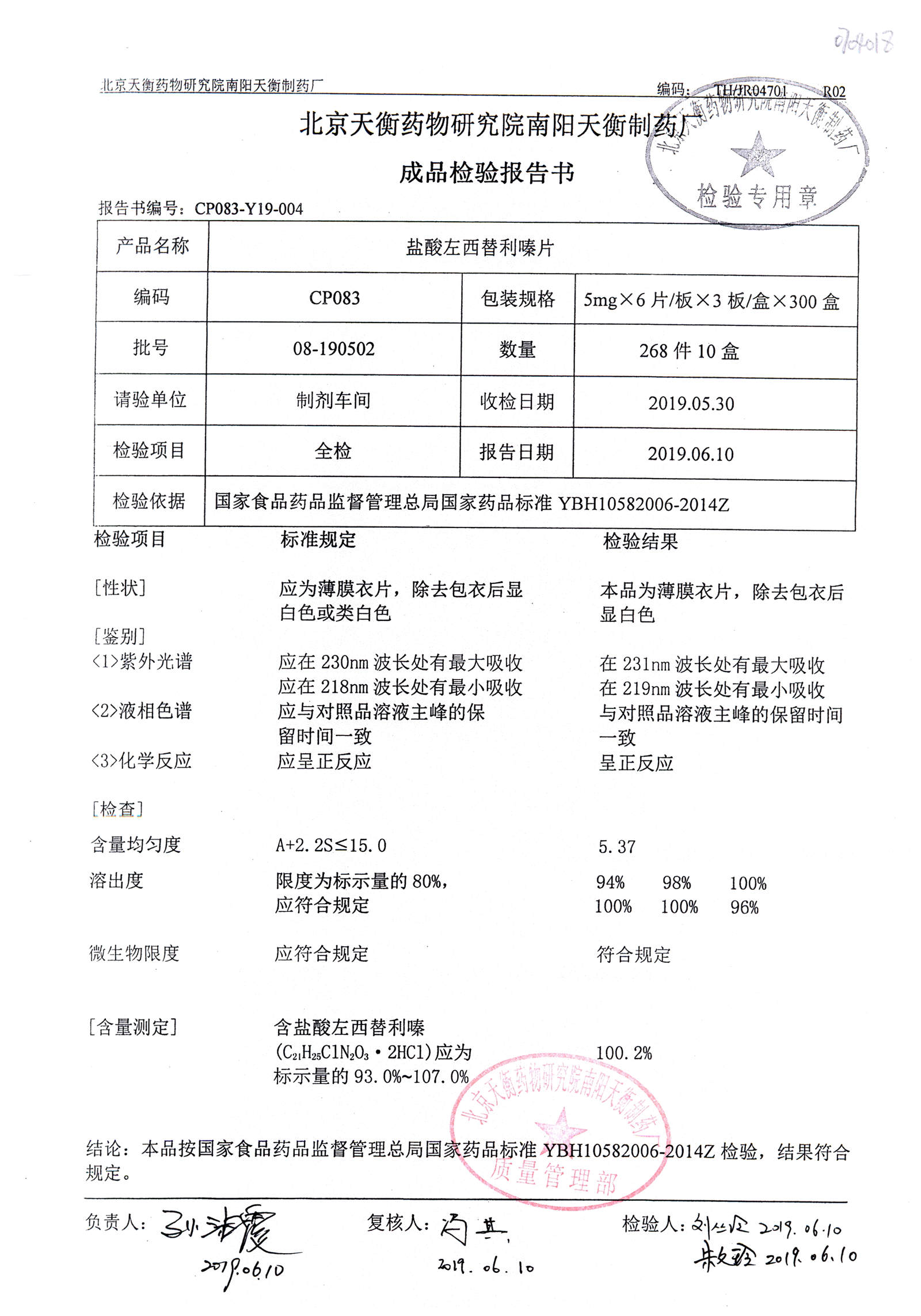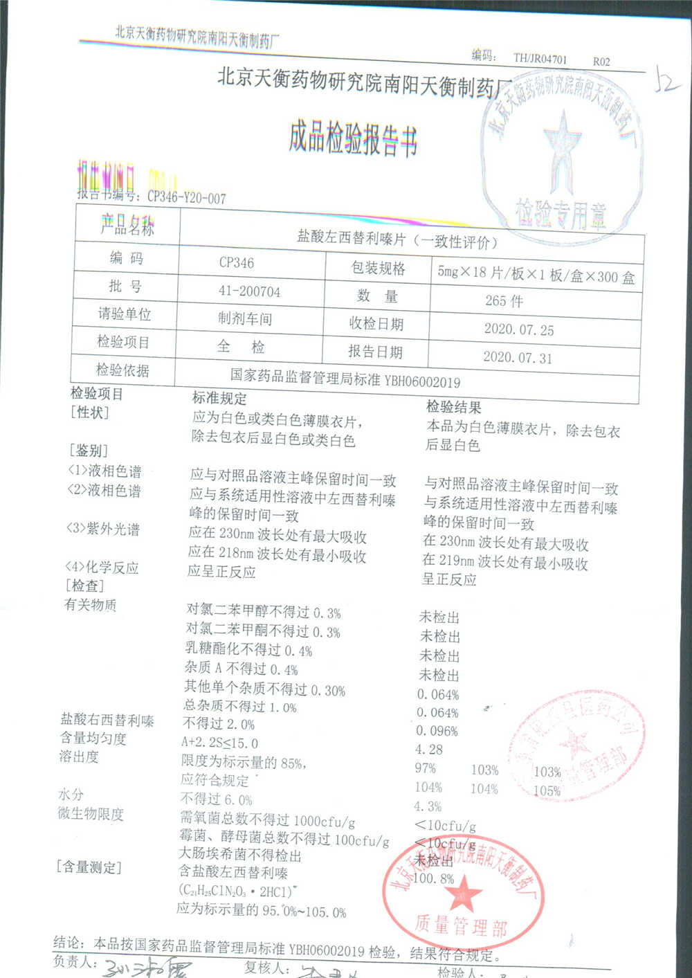 | 鹽酸左西替利嗪片 | 5mg*18s | 08-190801 | 查看詳情 |