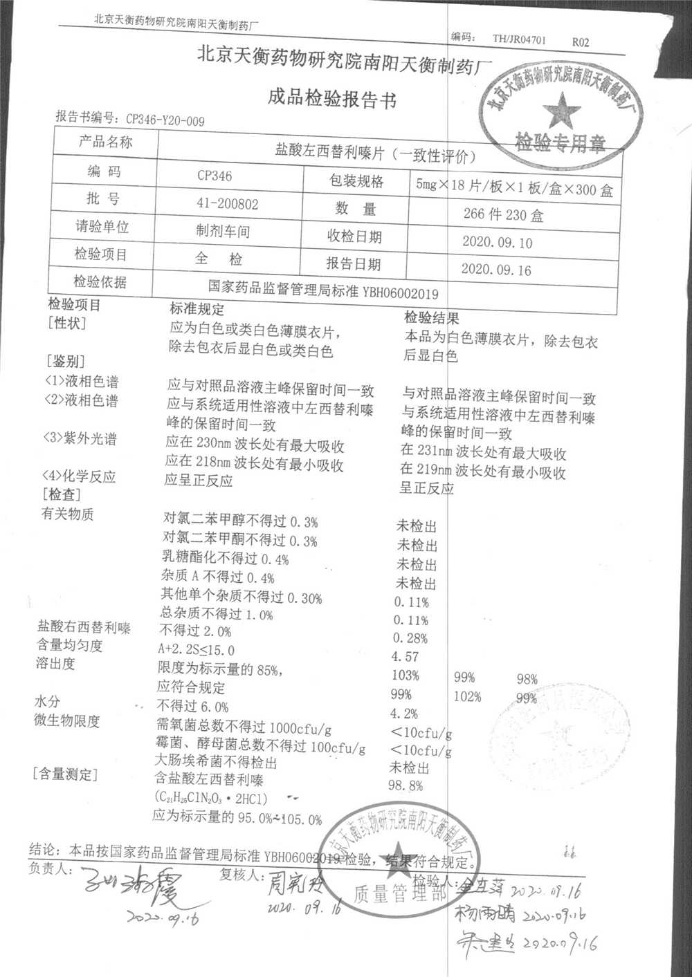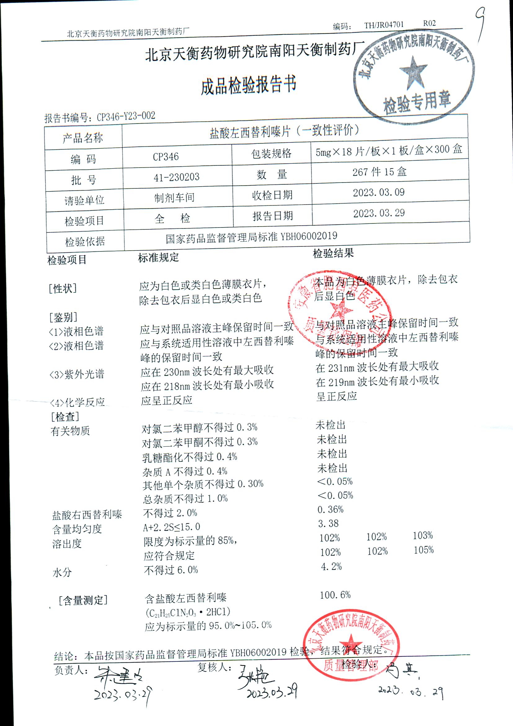 | 鹽酸左西替利嗪片 | 5mg*18s | 08-180901 | 查看詳情 |