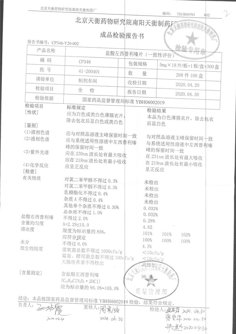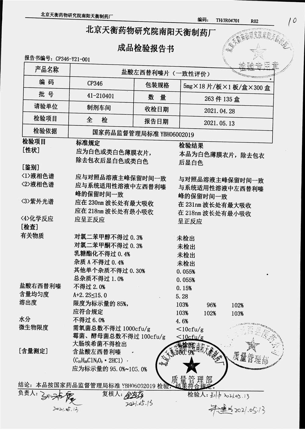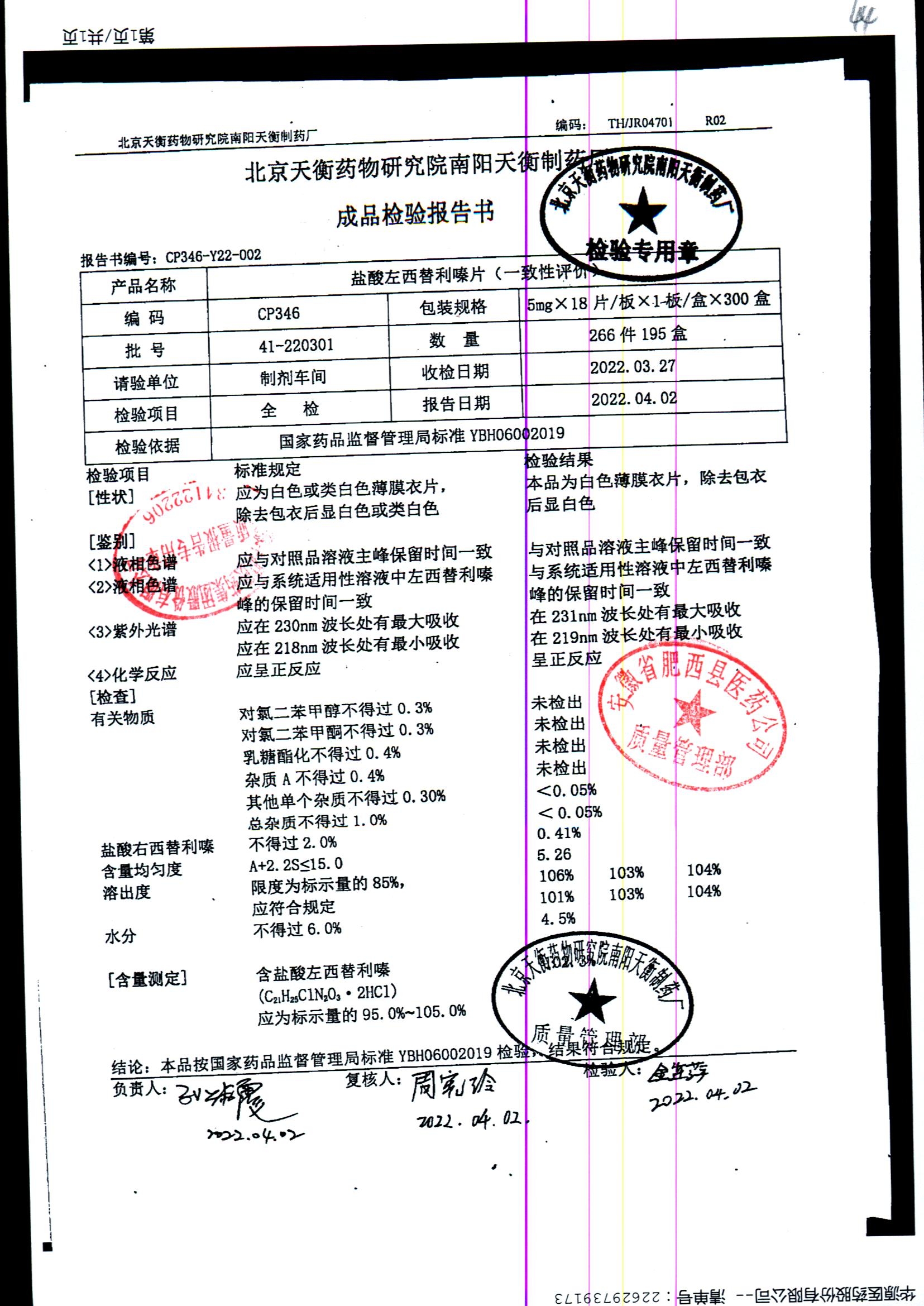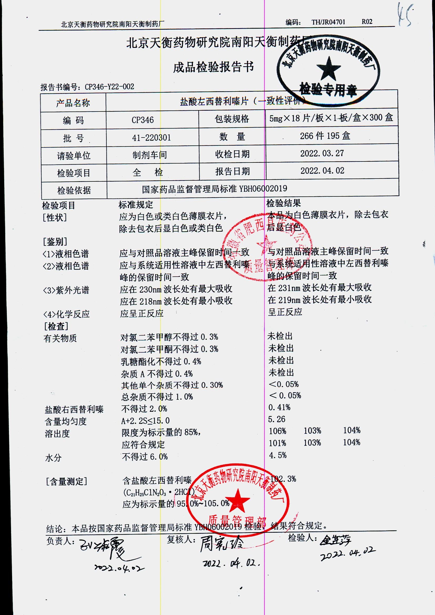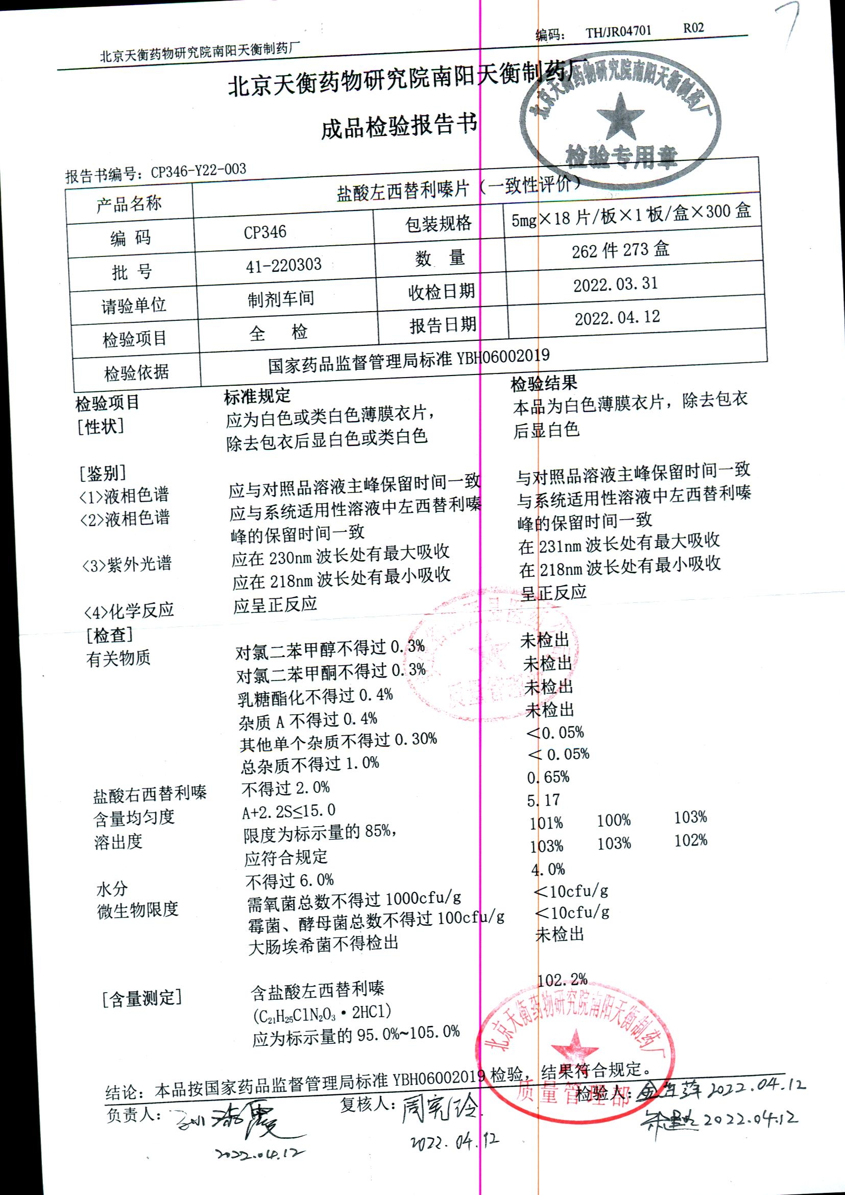 | 鹽酸左西替利嗪片 | 5mg*18s | 41-210401 | 查看詳情 |