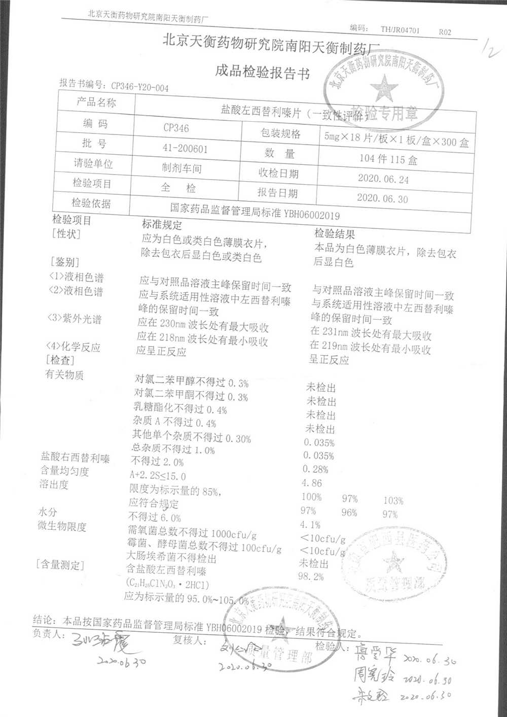 | 鹽酸左西替利嗪片 | 5mg*18s | 08-190701 | 查看詳情 |