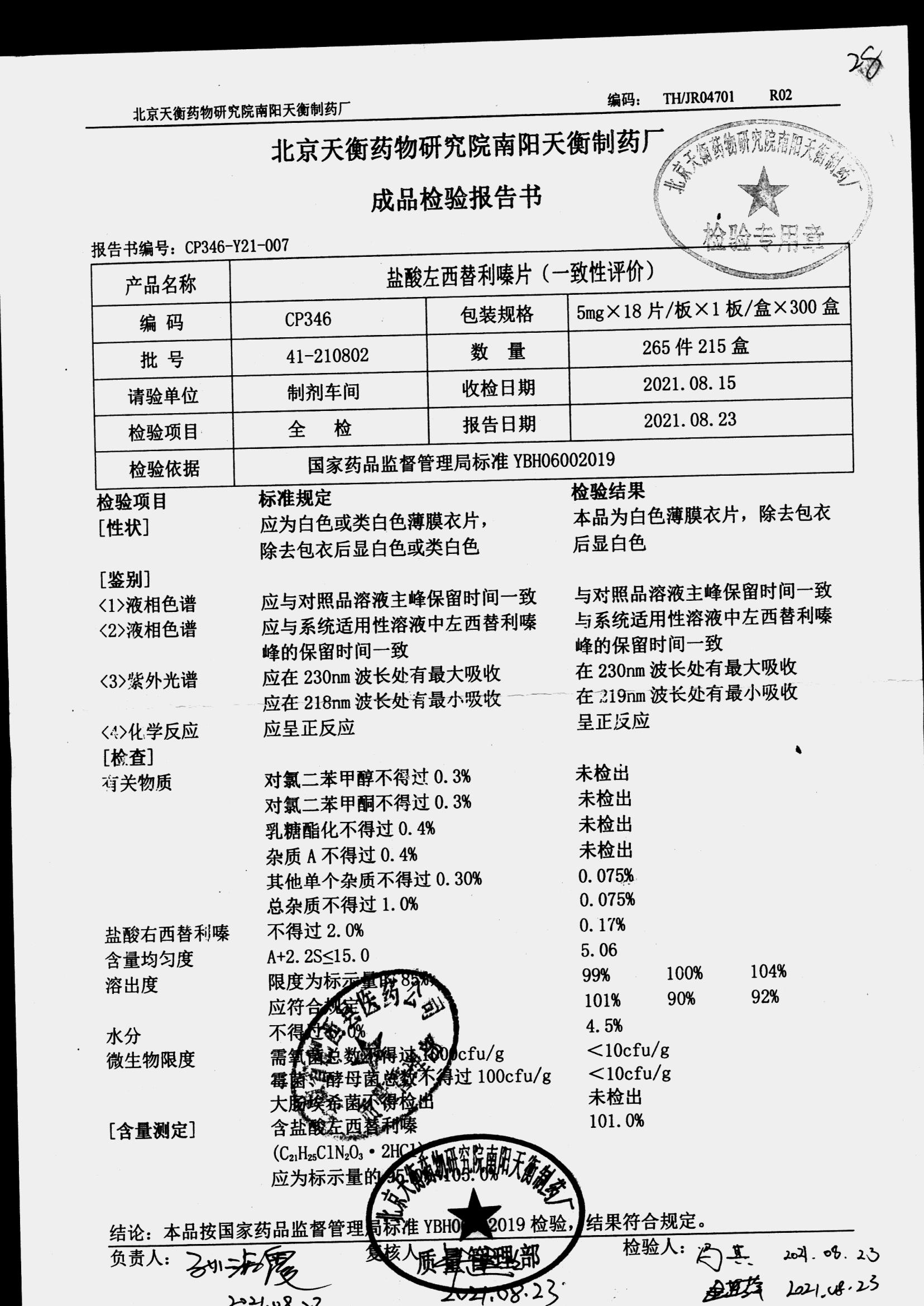 | 鹽酸左西替利嗪片 | 5mg*18s | 41-210802 | 查看詳情 |