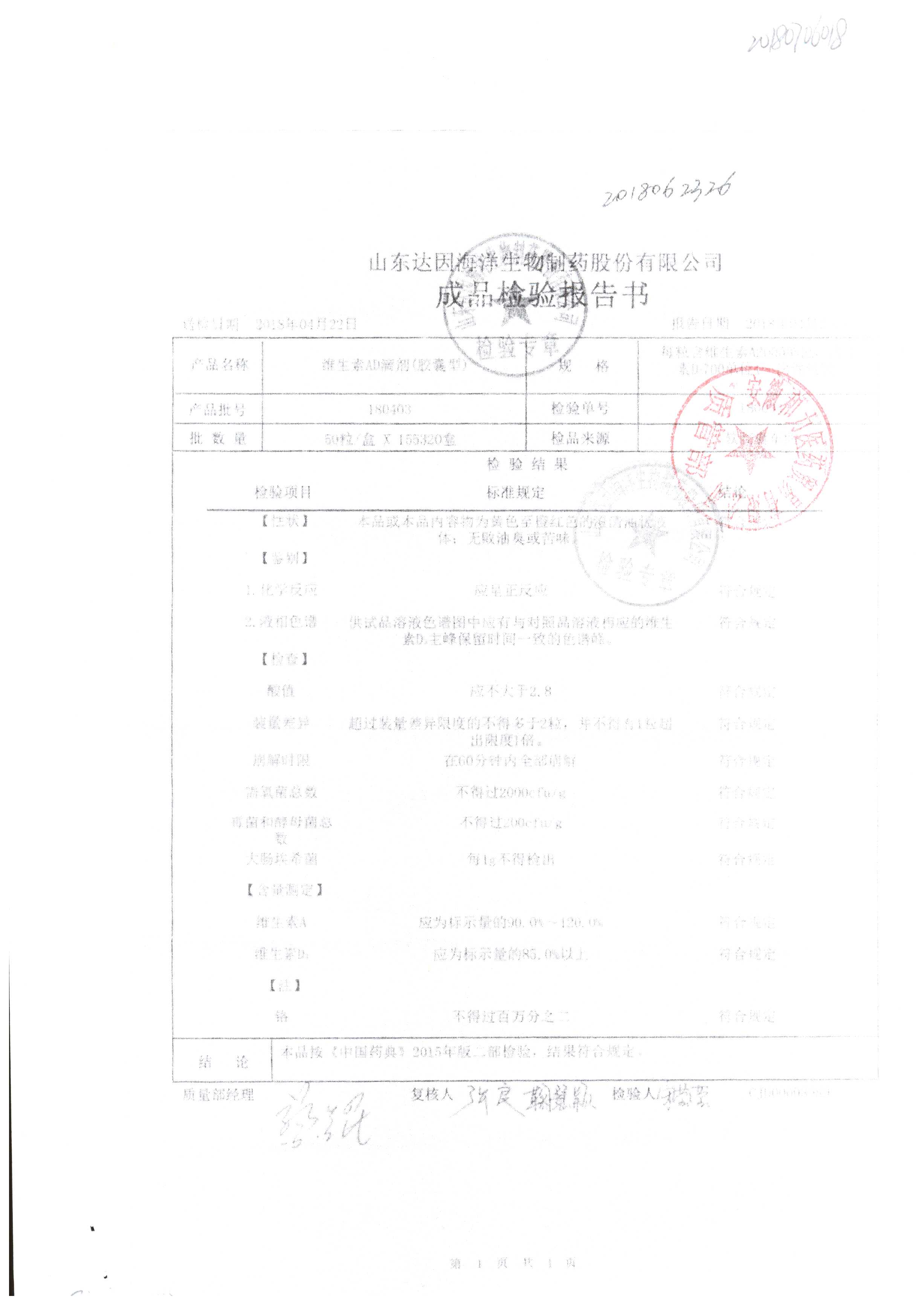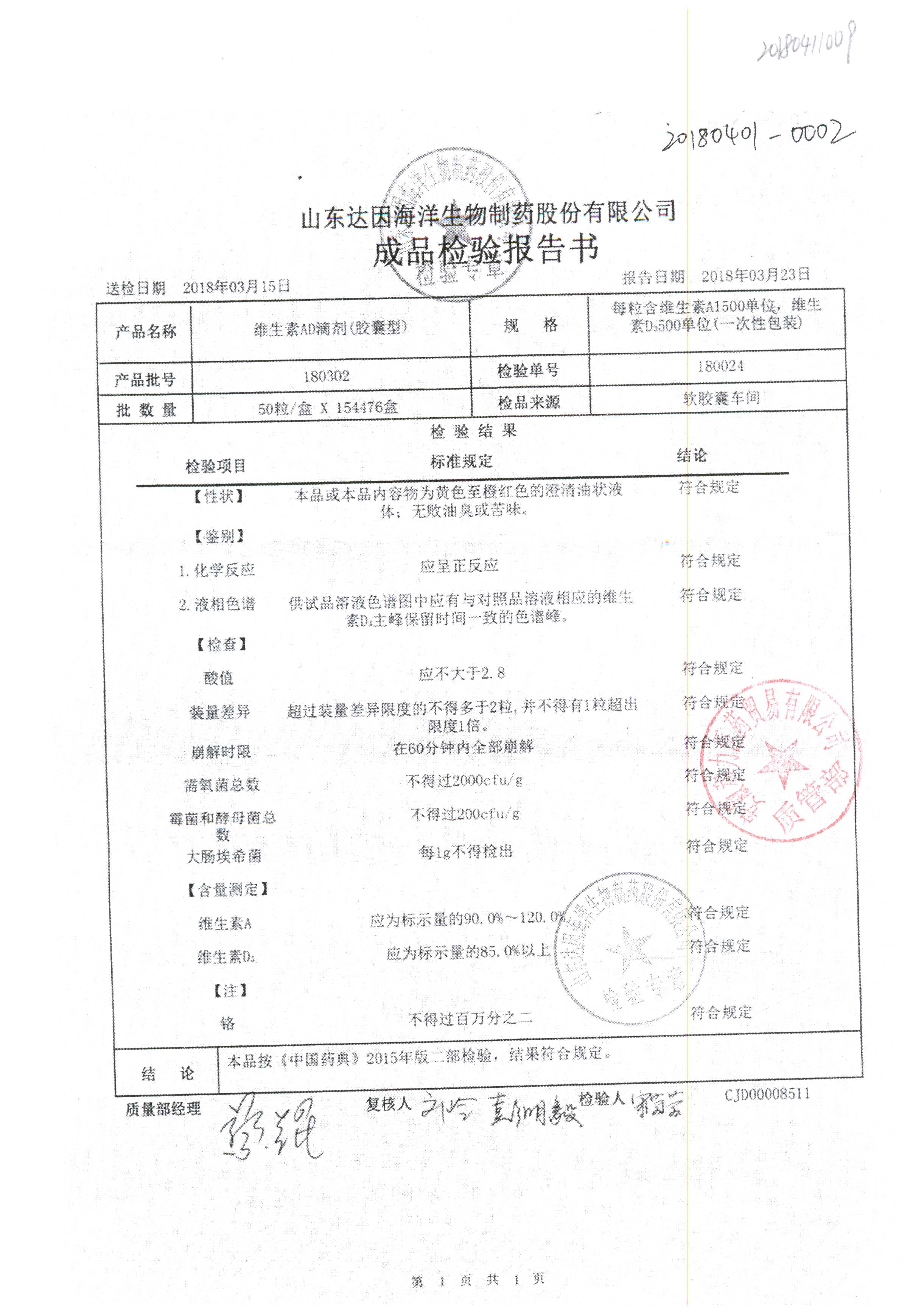 | 維生素AD滴劑(膠囊型) | 2000單位:700單位*50粒 | 180403 | 查看詳情 |