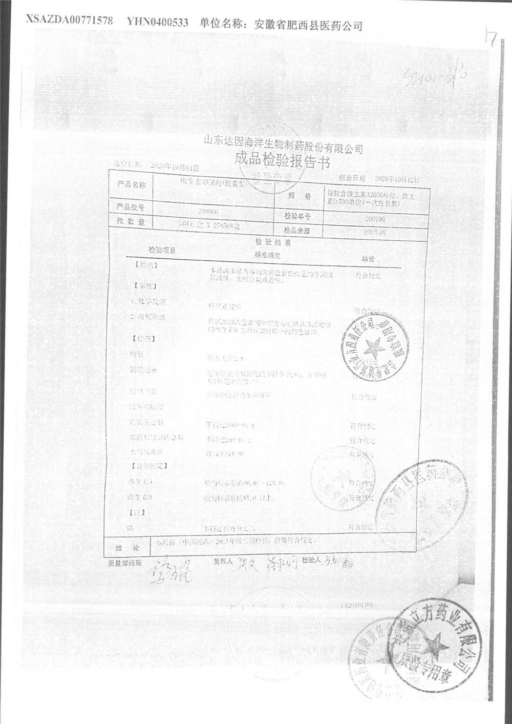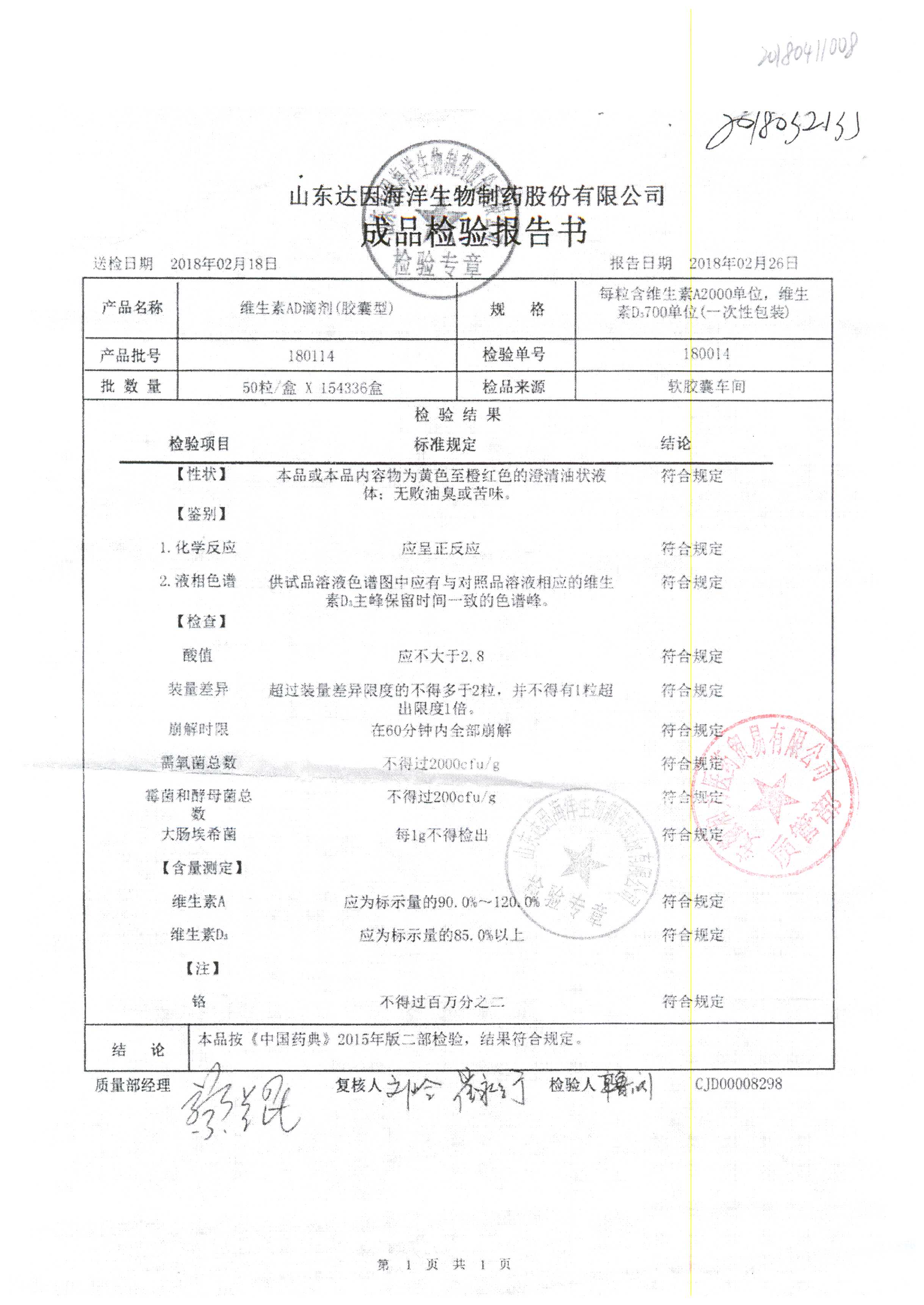 | 維生素AD滴劑(膠囊型) | 2000單位:700單位*50粒 | 200960 | 查看詳情 |