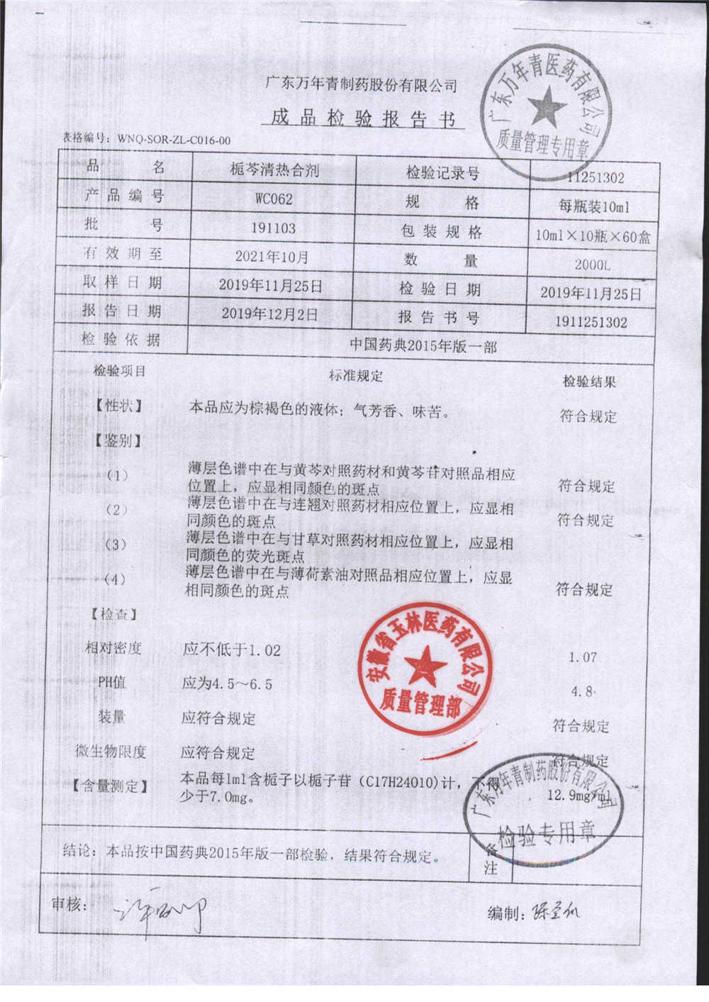| 梔芩清熱合劑 | 10ml*10瓶 | 191102 | 查看詳情 |