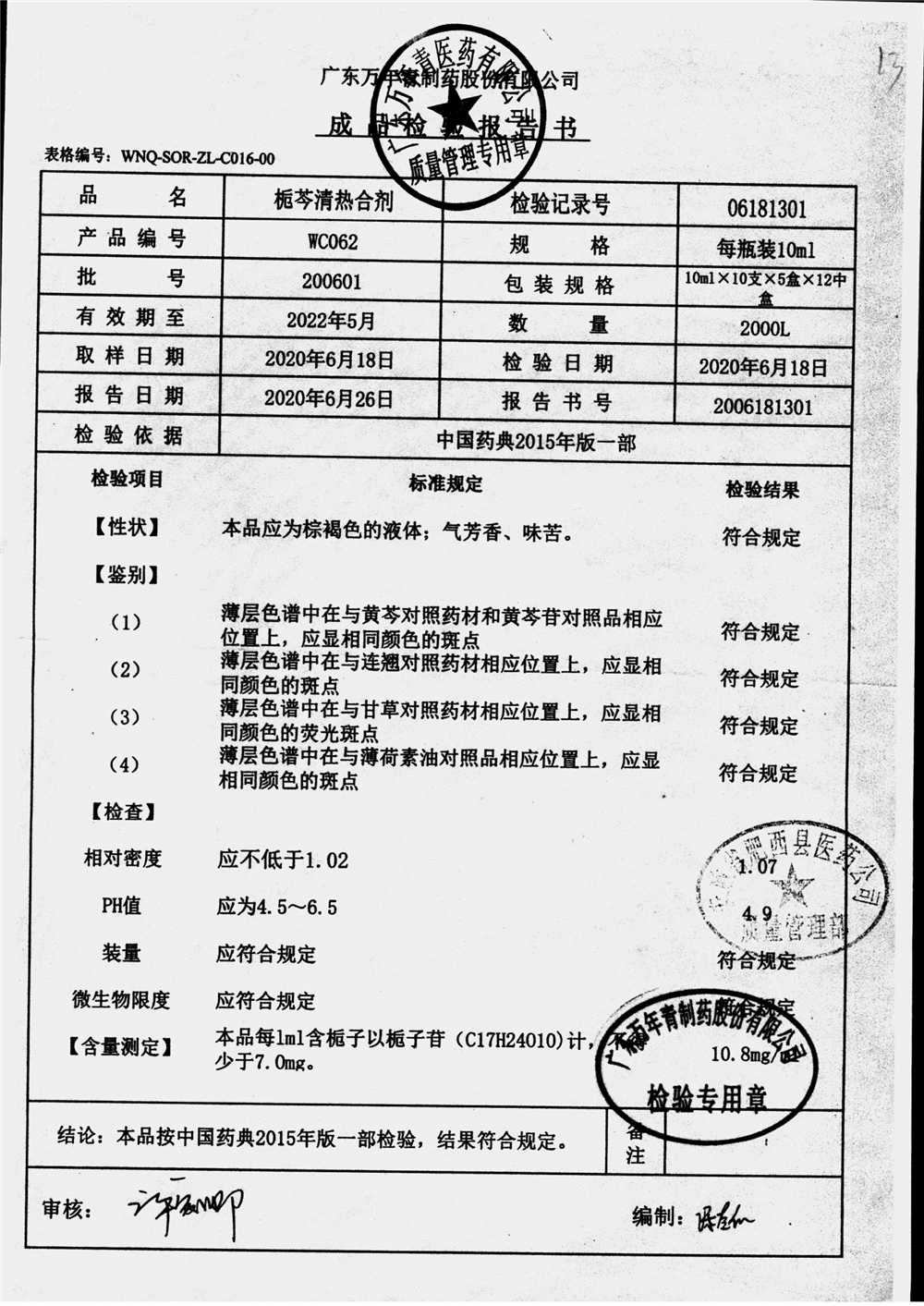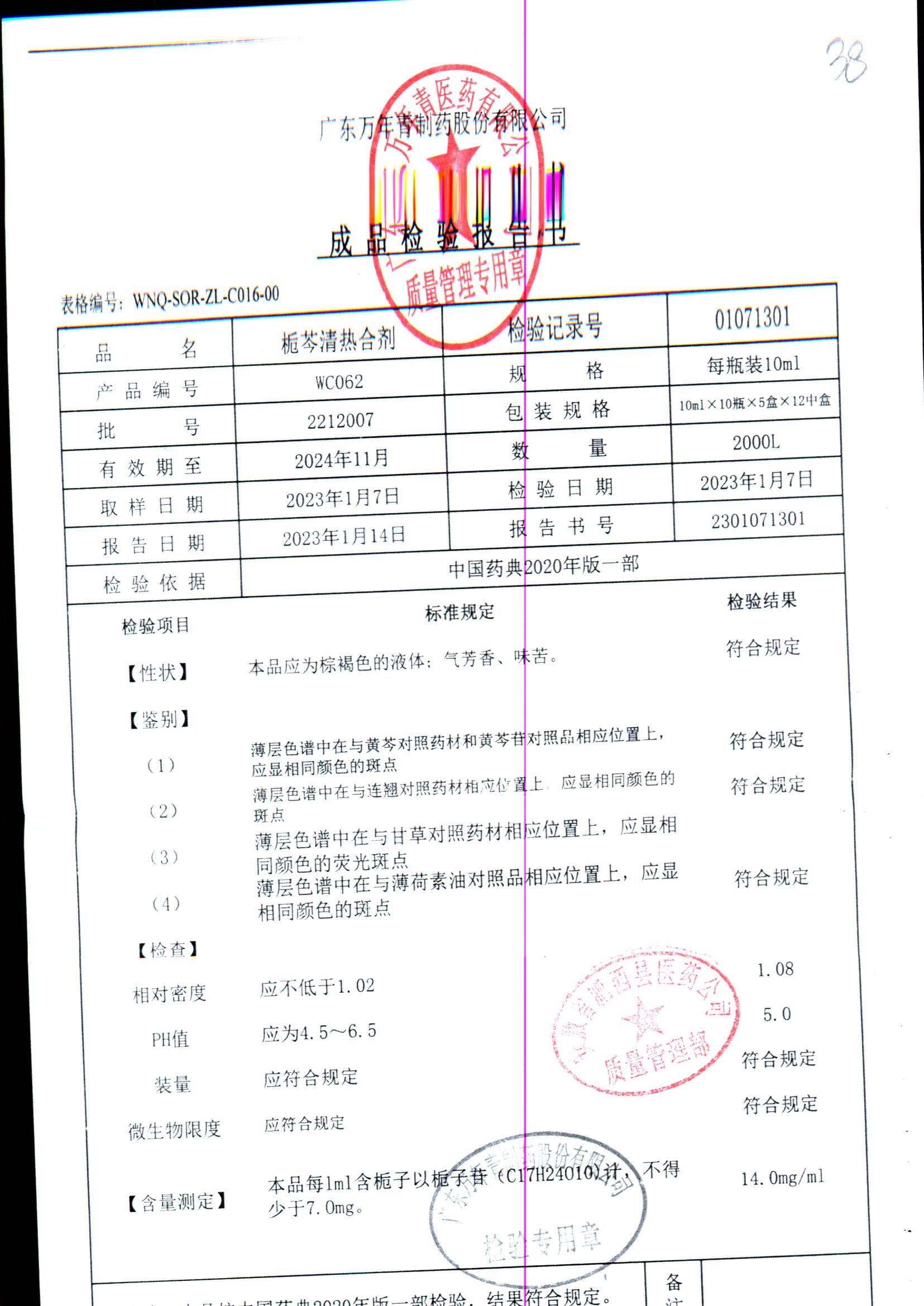 | 名稱 | 規(guī)格 | 批號 | 藥檢報(bào)告 |