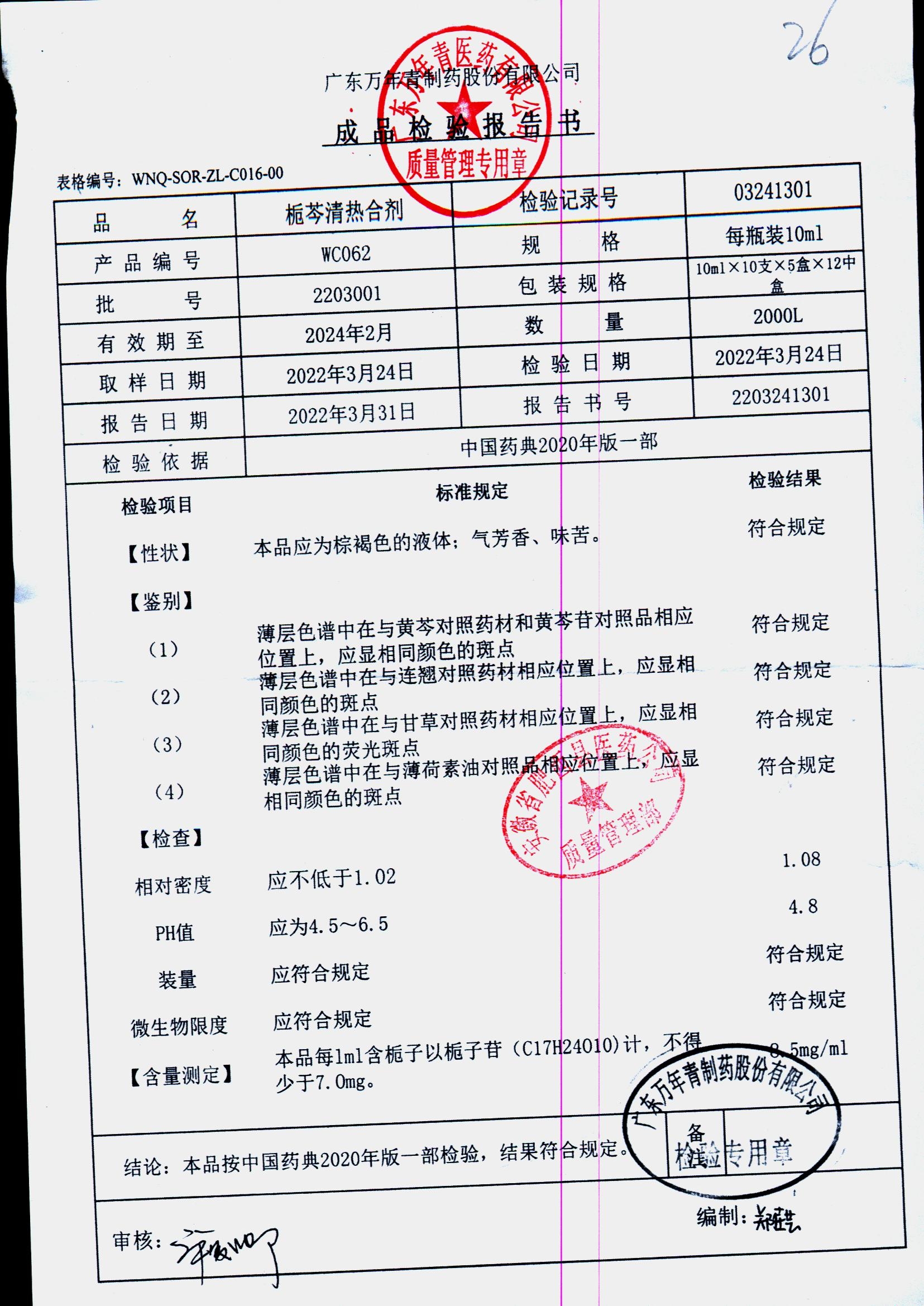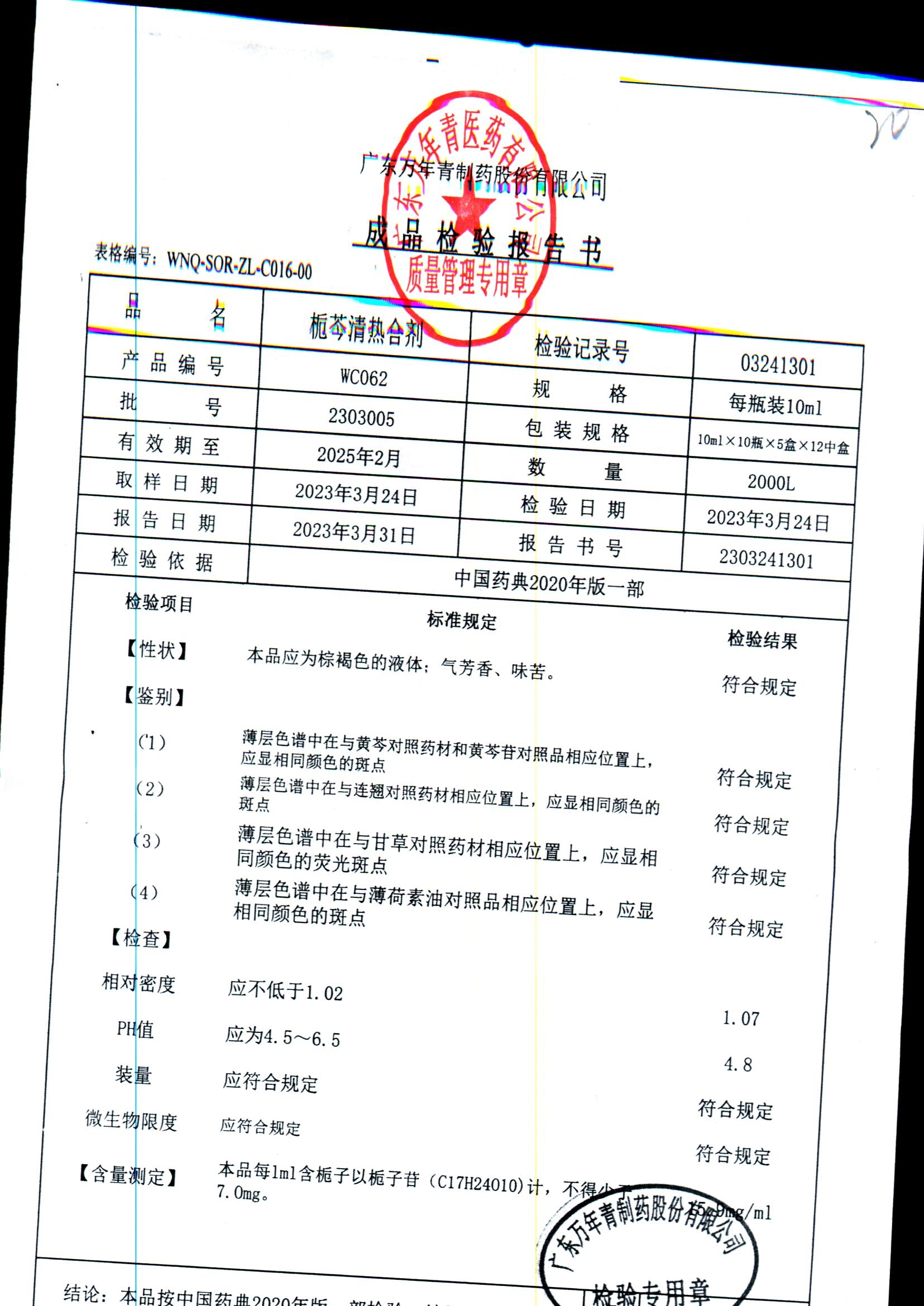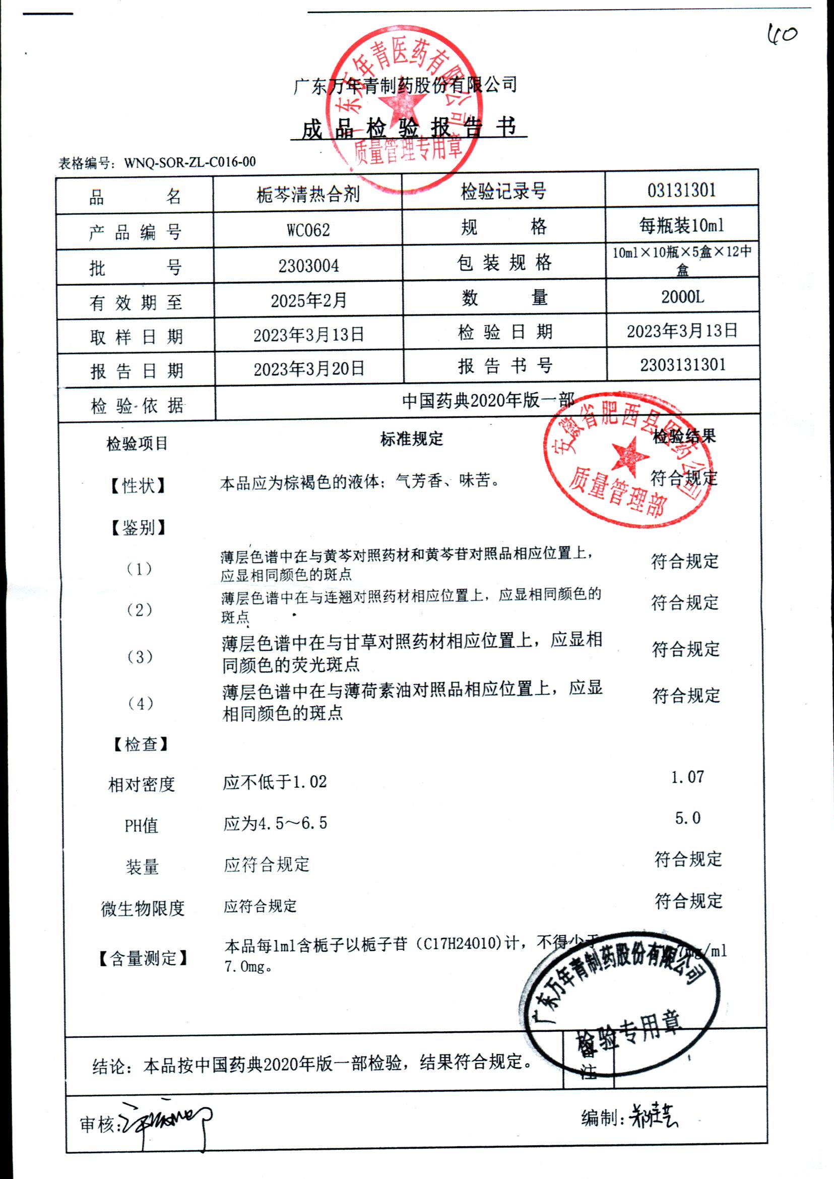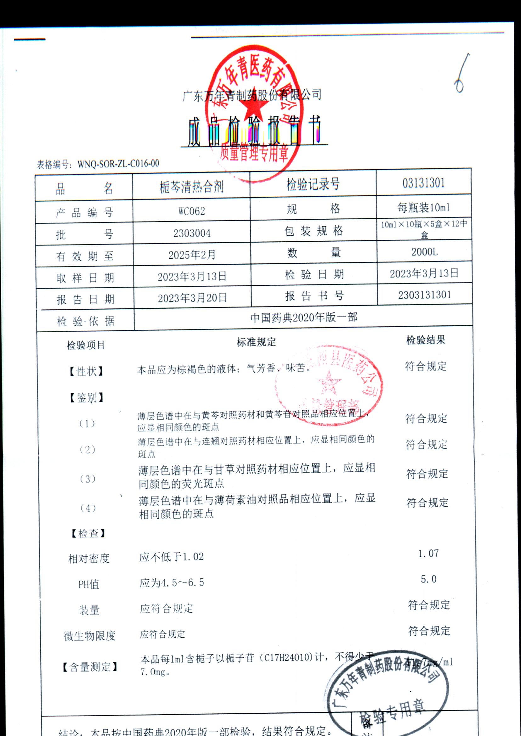| 梔芩清熱合劑 | 10ml*10瓶 | 2302004 | 查看詳情 |