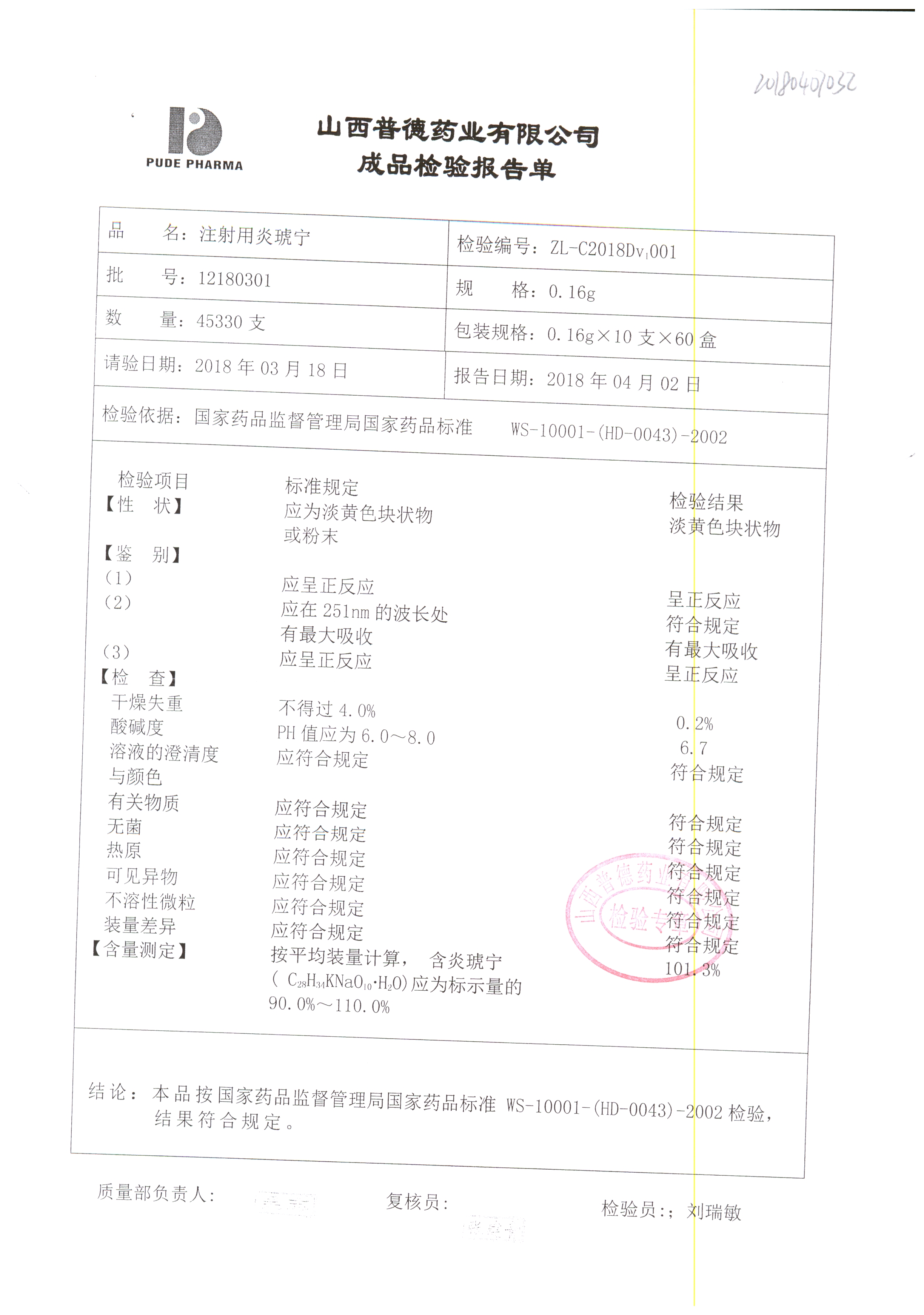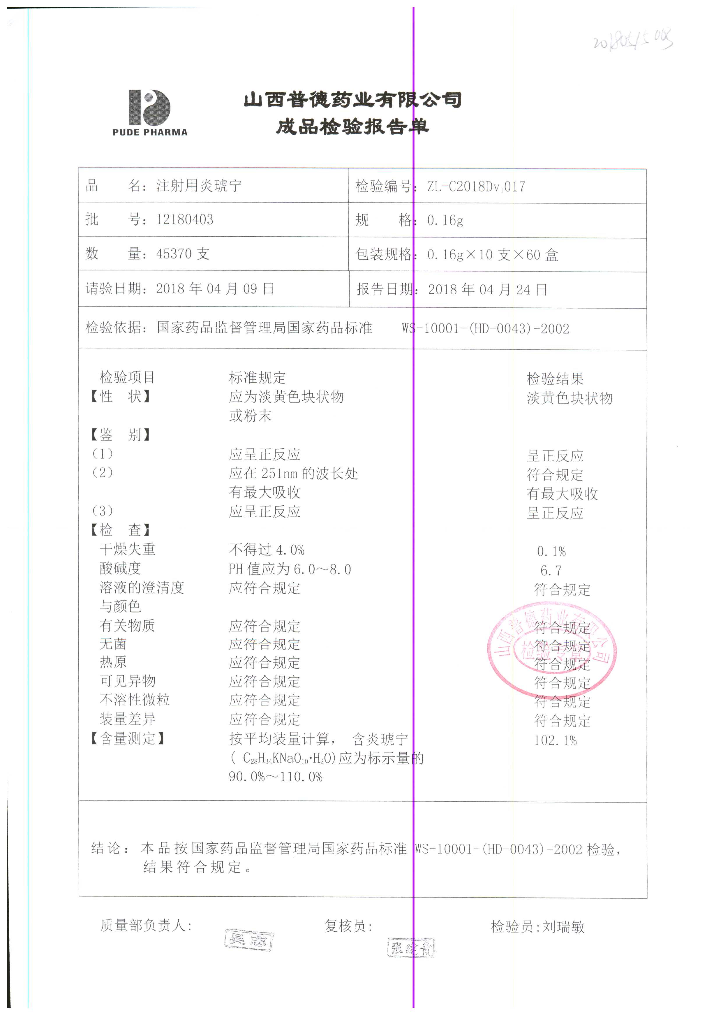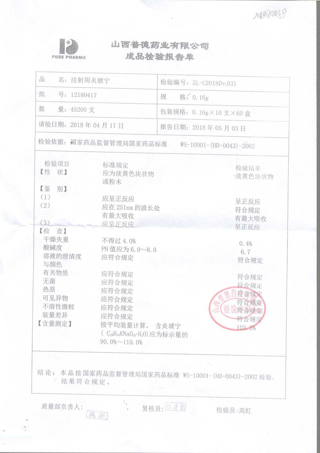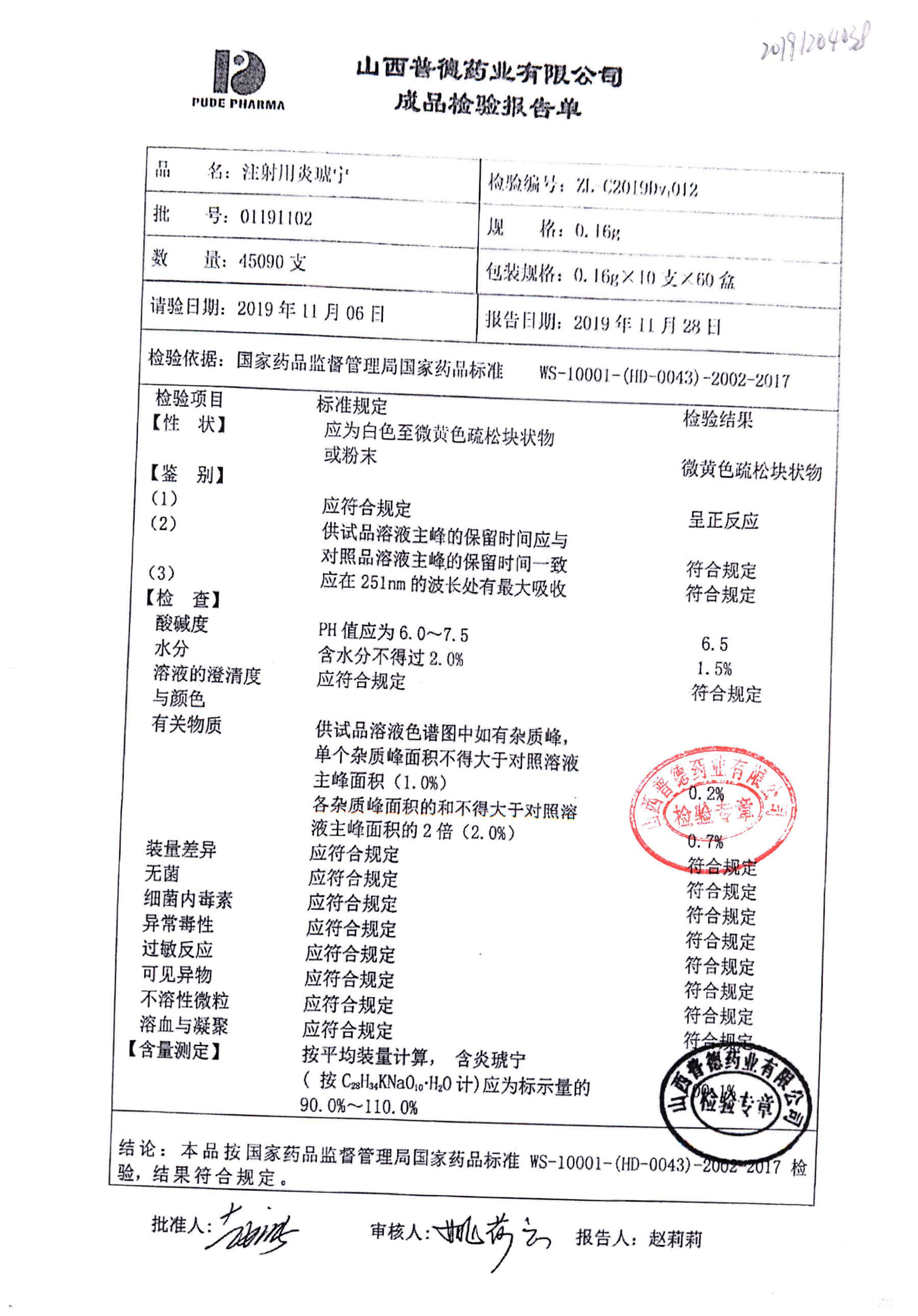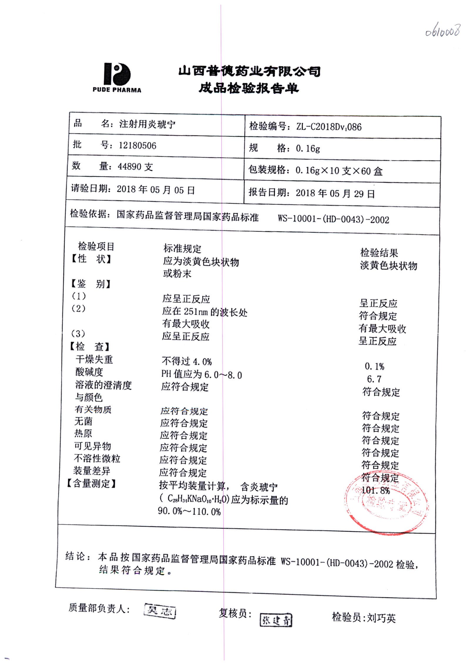 | 名稱 | 規(guī)格 | 批號(hào) | 藥檢報(bào)告 |
