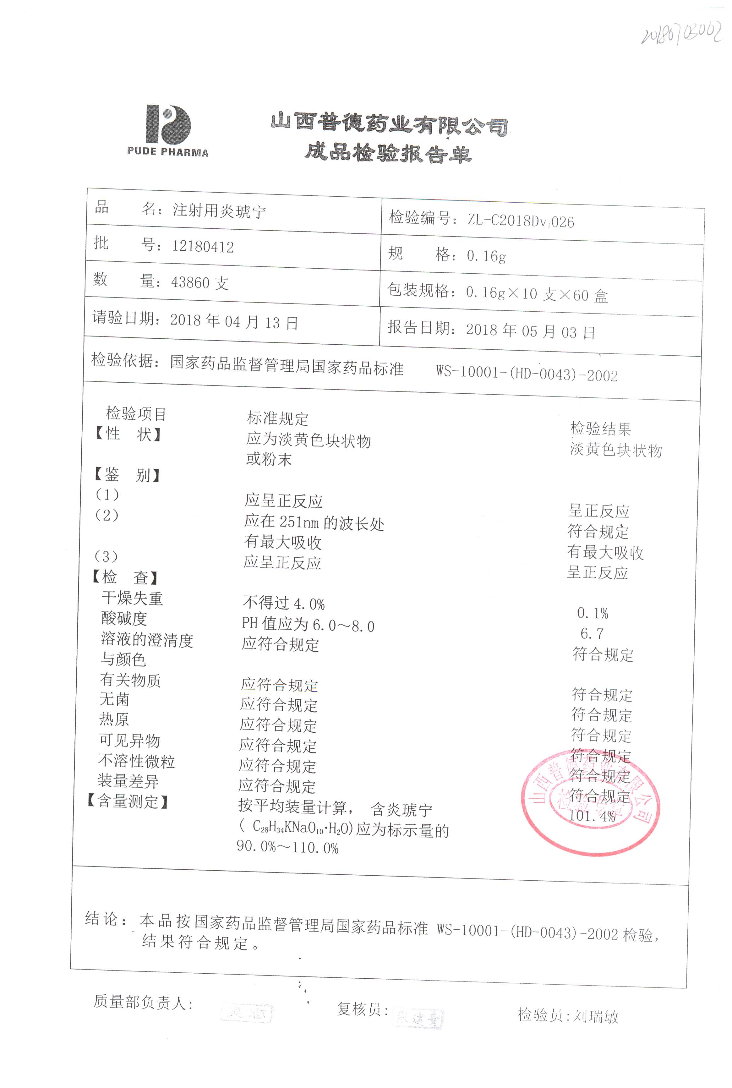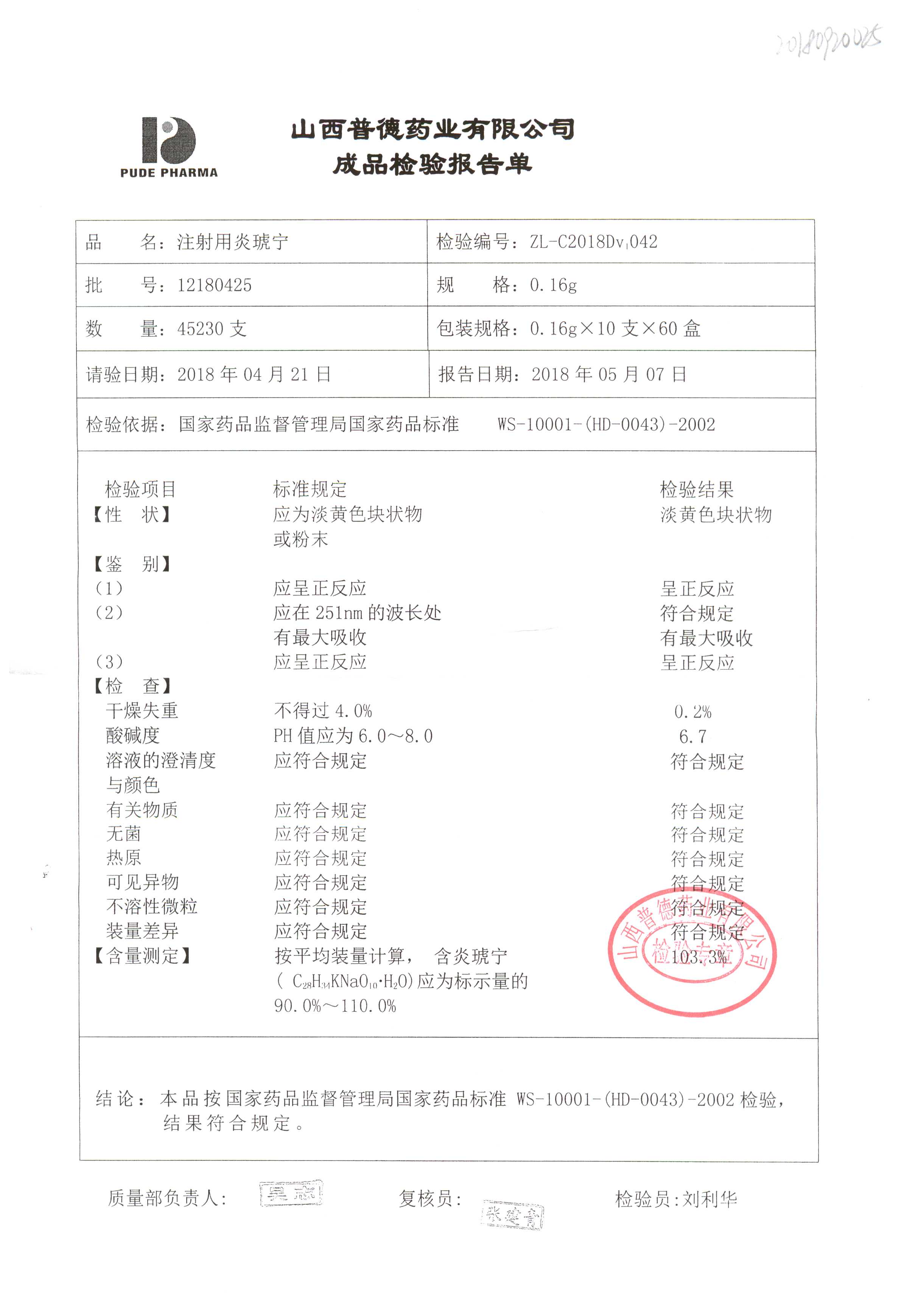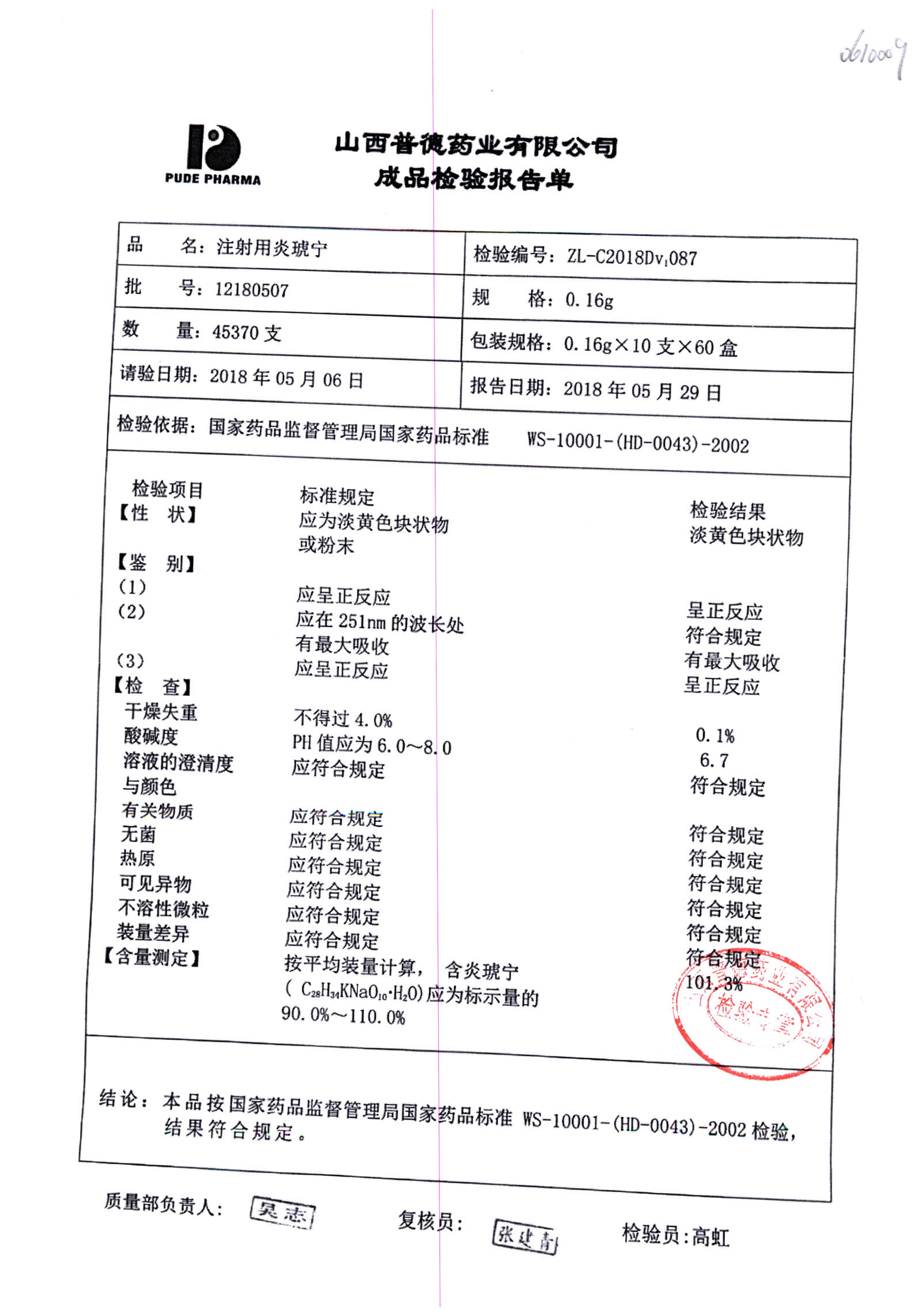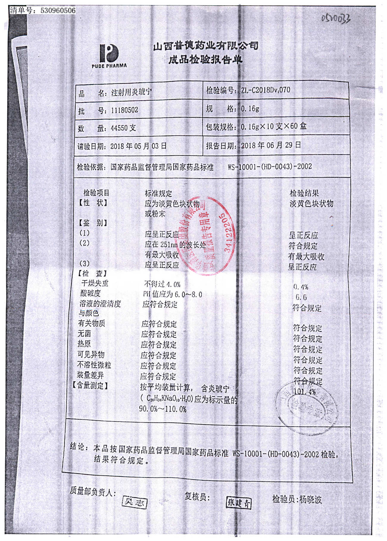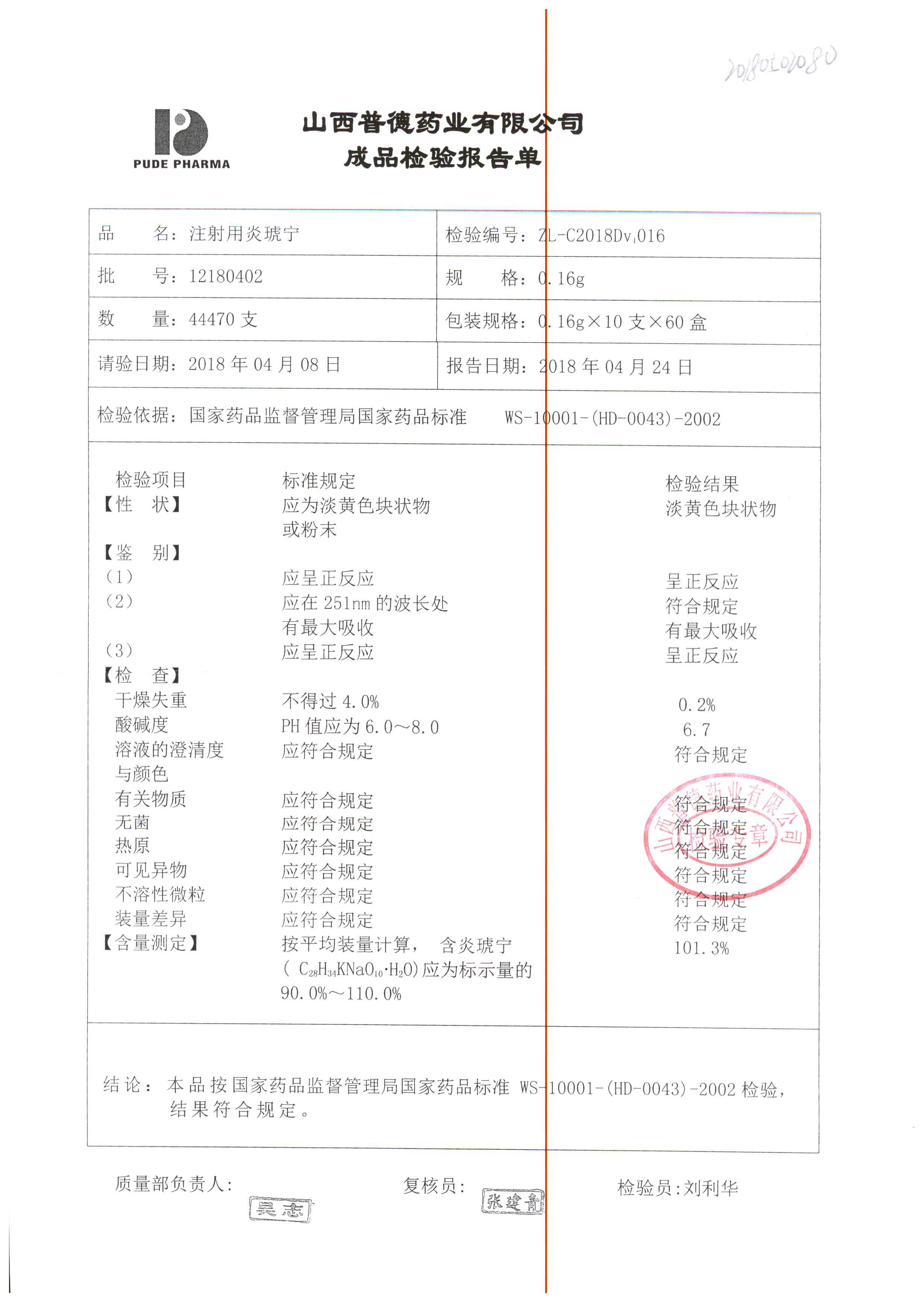 | 名稱 | 規(guī)格 | 批號(hào) | 藥檢報(bào)告 |