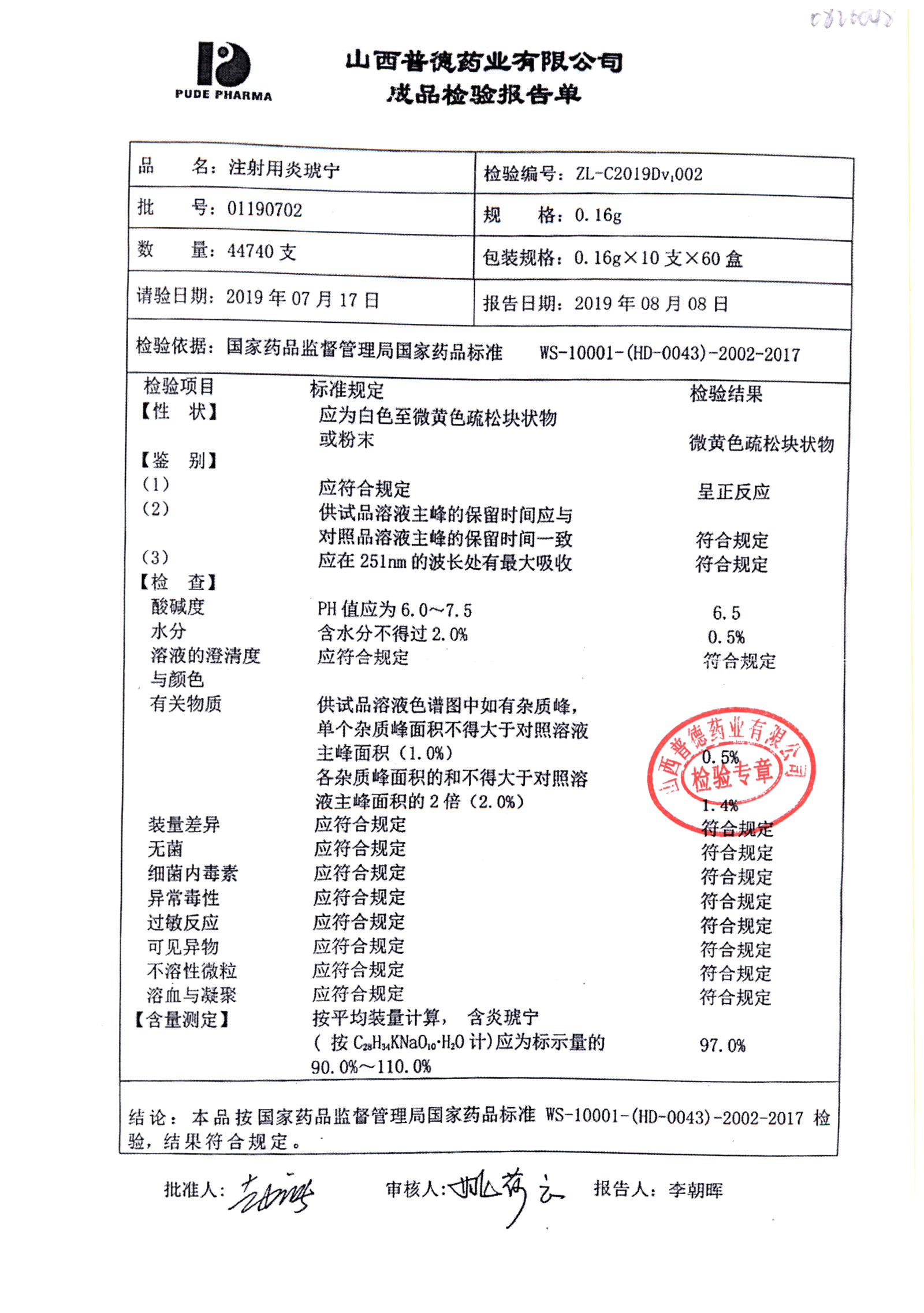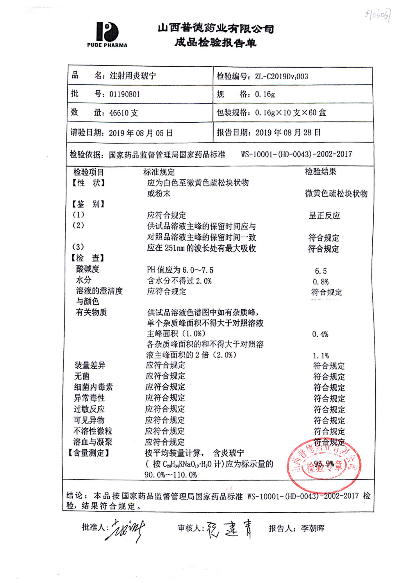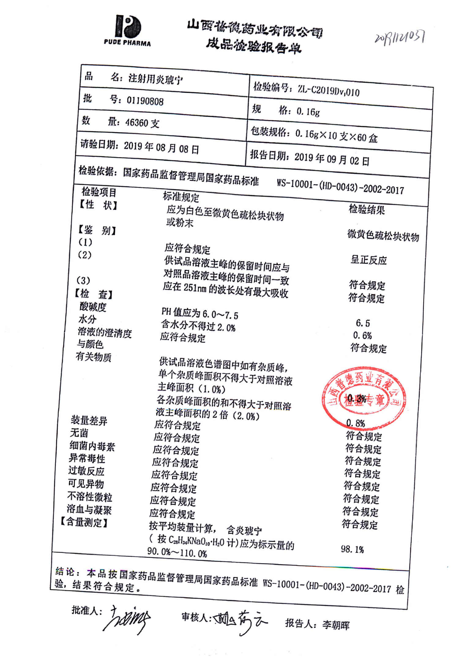 | 注射用炎琥寧 | 0.16g*10支 | 01190808 | 查看詳情 |