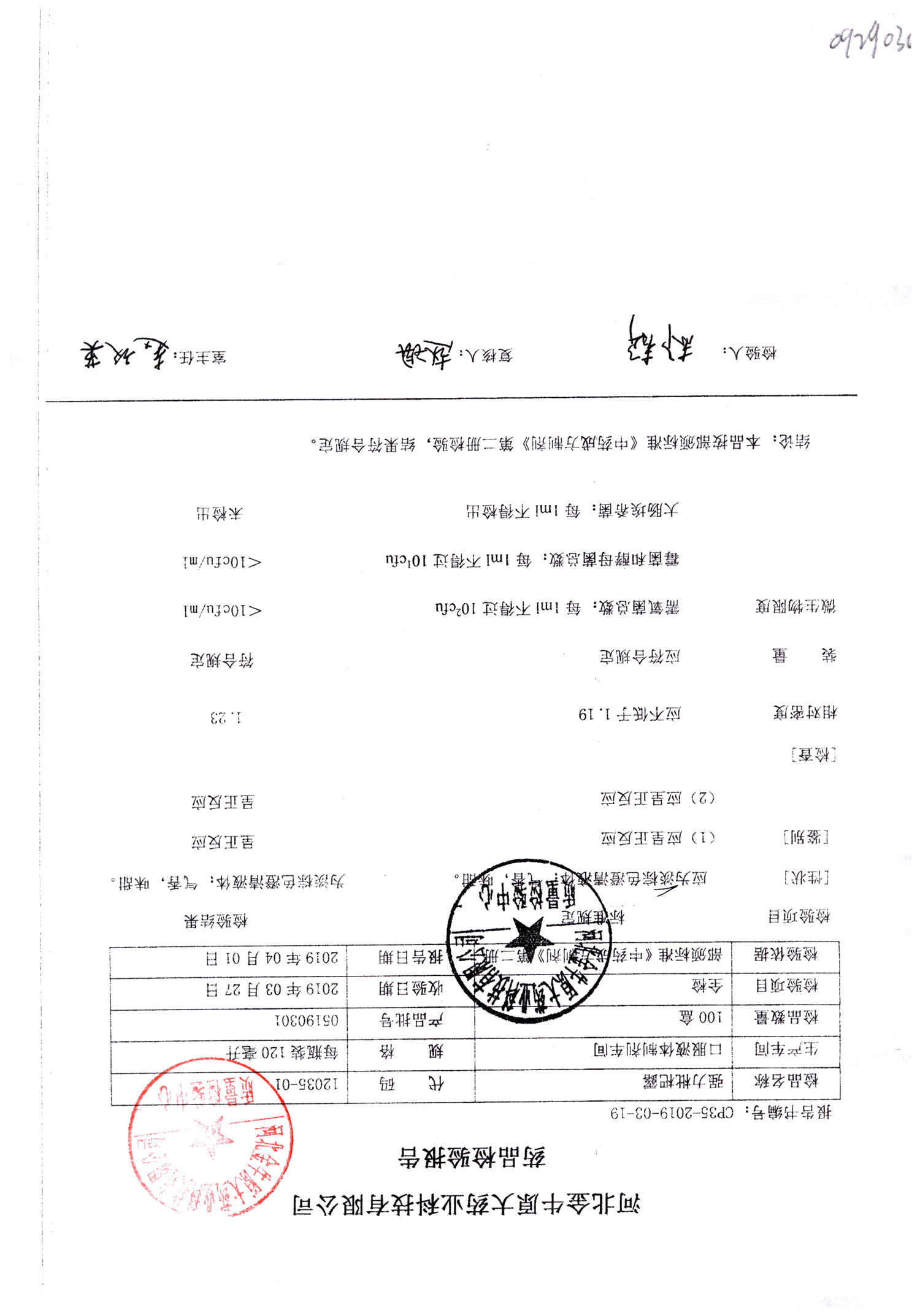 | 名稱(chēng) | 規(guī)格 | 批號(hào) | 藥檢報(bào)告 |