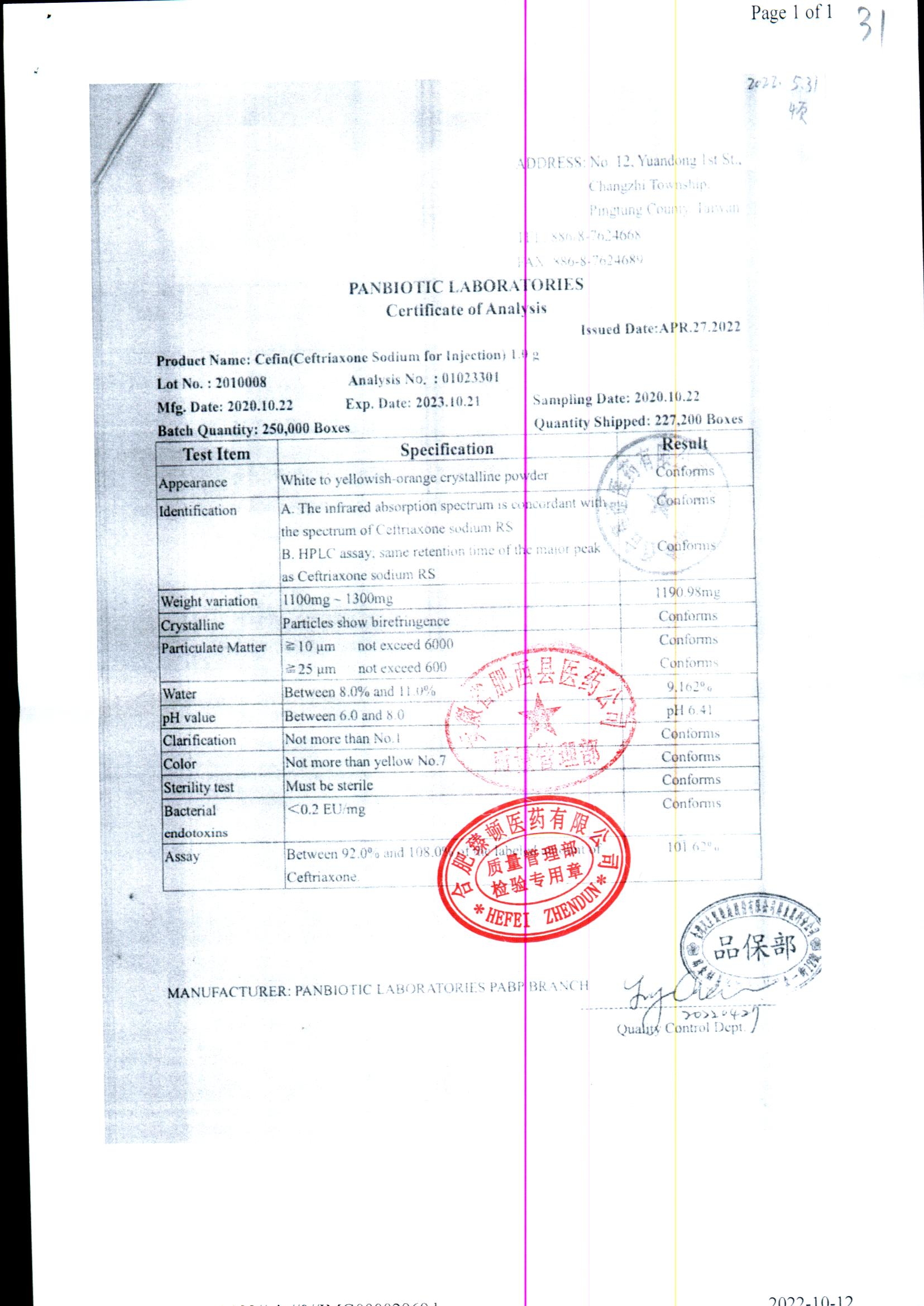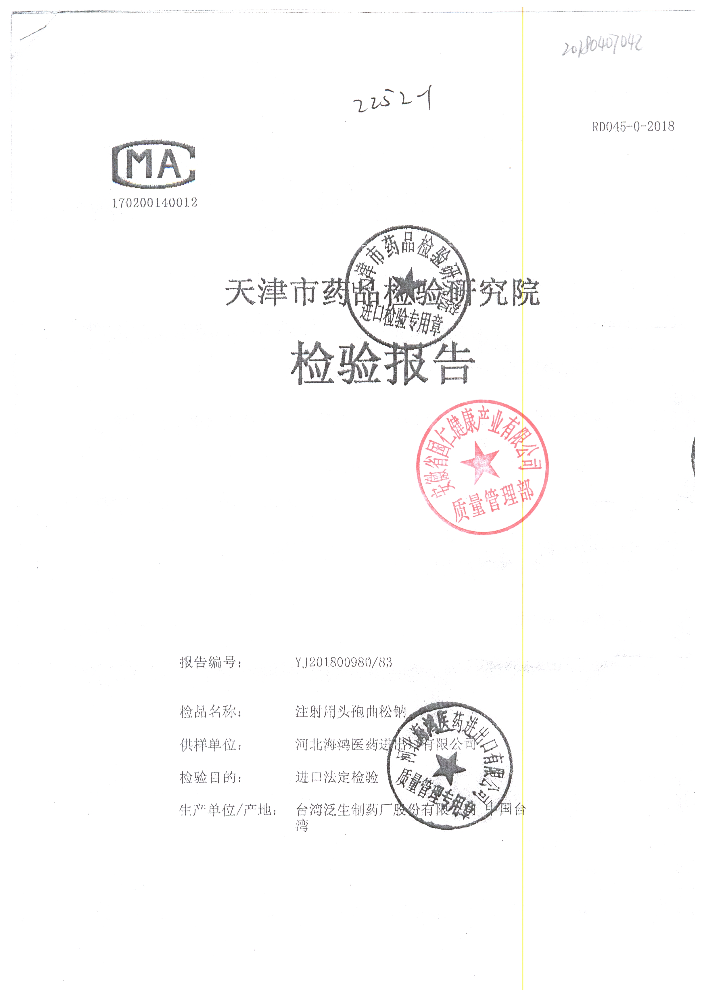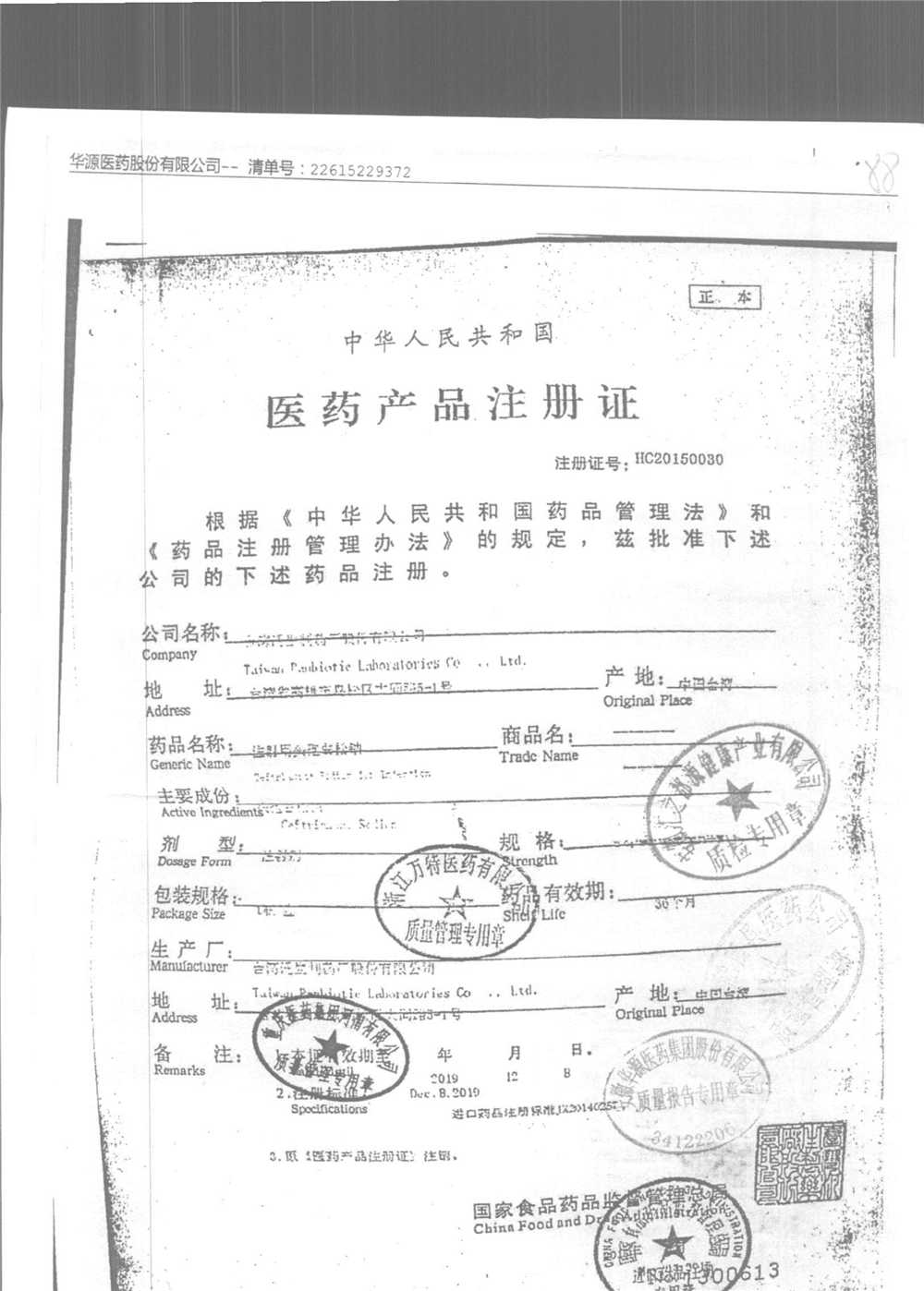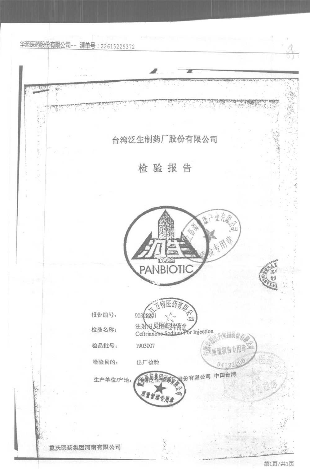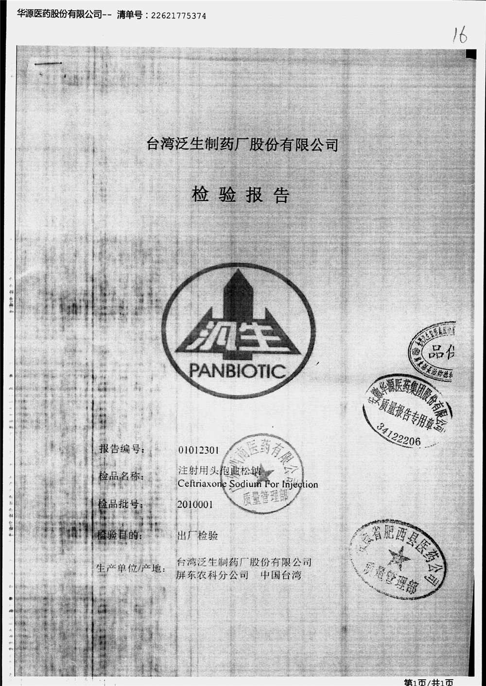 | 名稱 | 規(guī)格 | 批號(hào) | 藥檢報(bào)告 |