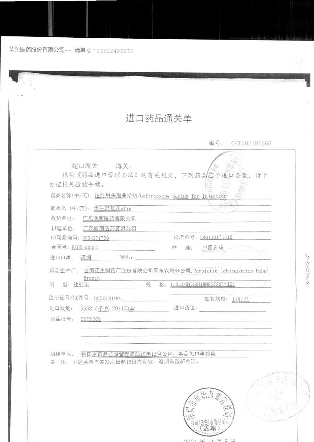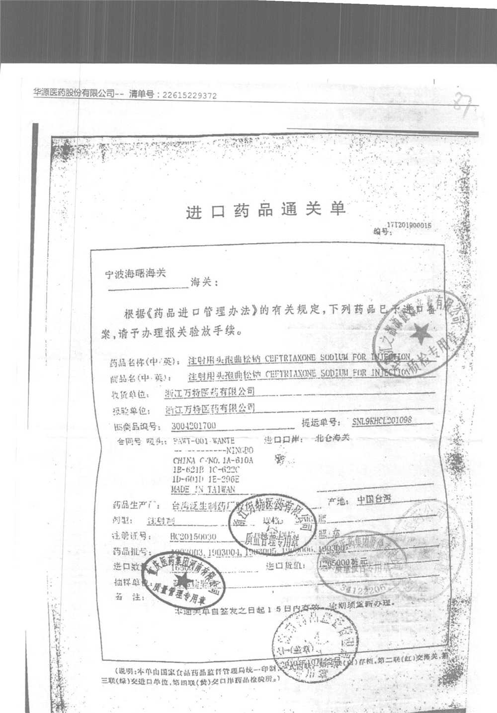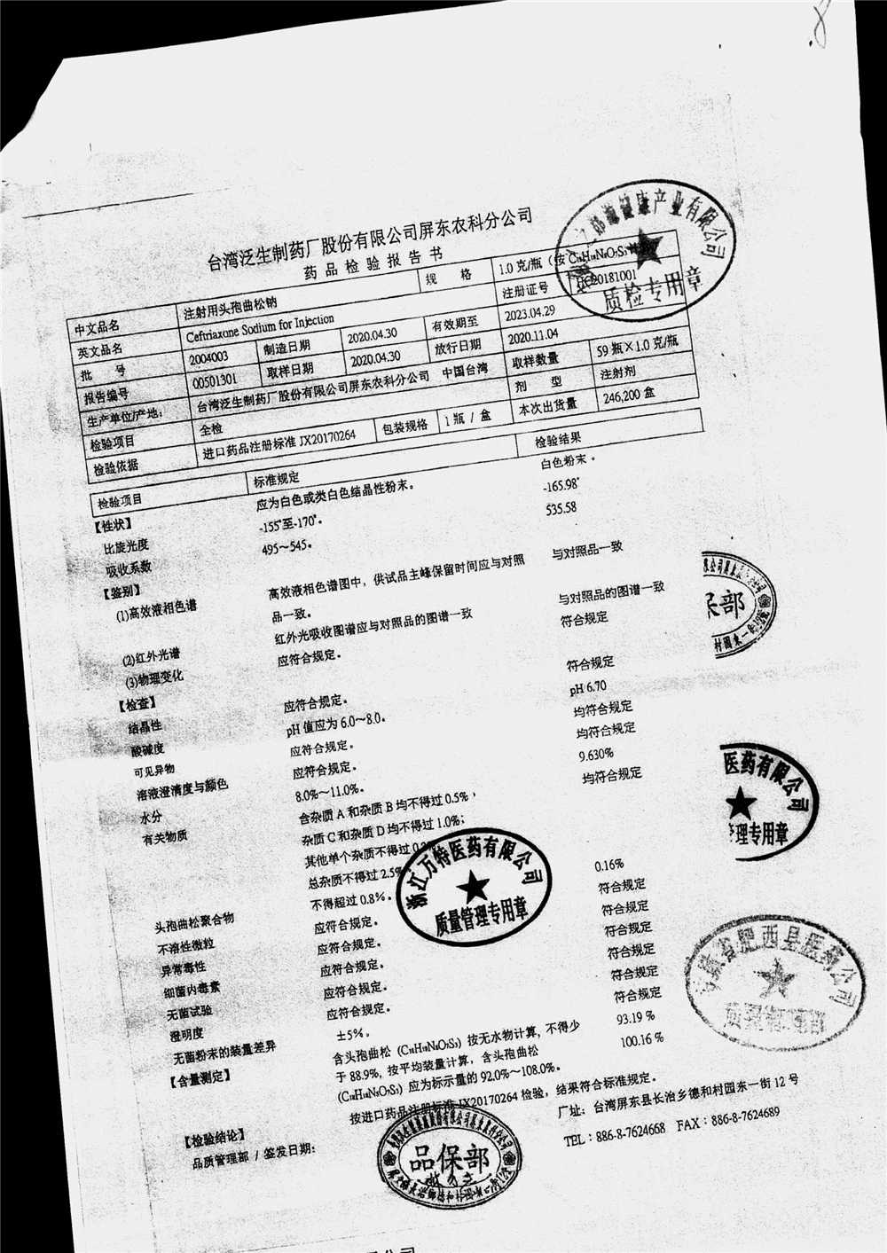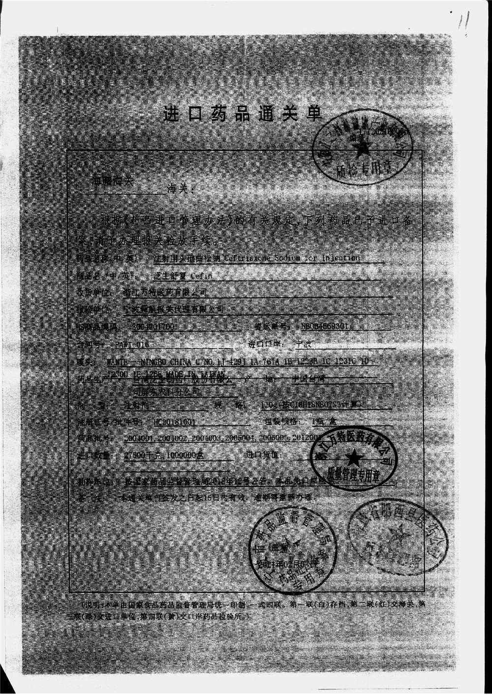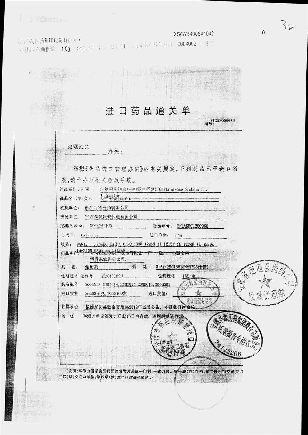 | 注射用頭孢曲松鈉 | 2.0g | 2005005(3/4) | 查看詳情 |