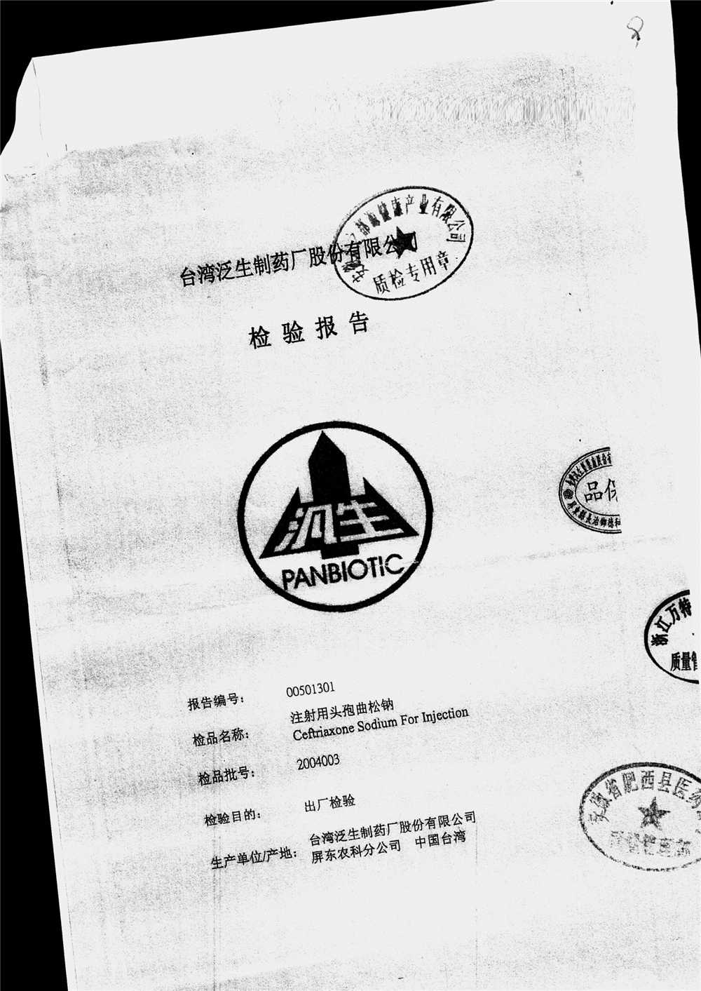 | 注射用頭孢曲松鈉 | 2.0g | 2004003(4/4) | 查看詳情 |