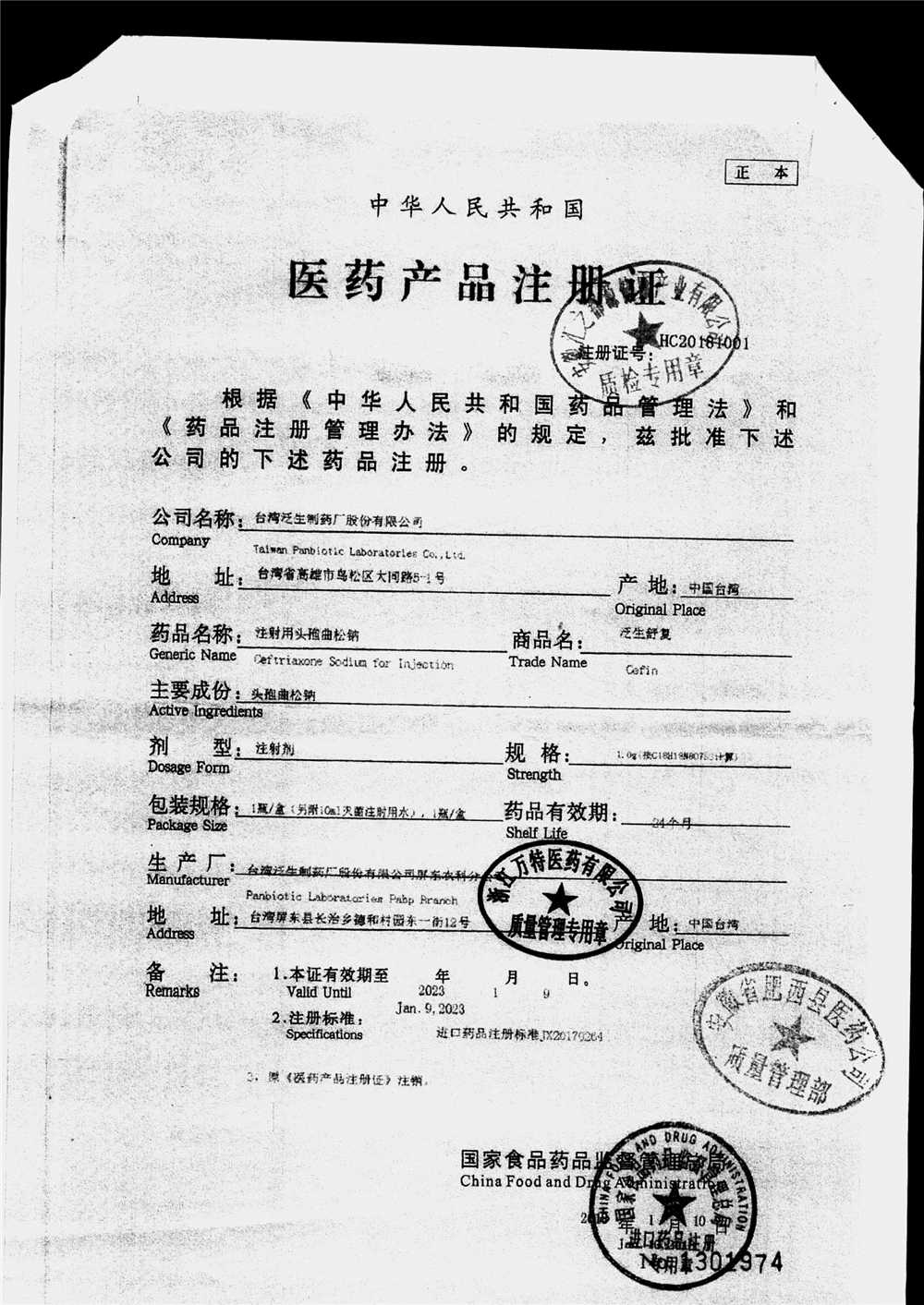 | 注射用頭孢曲松鈉 | 2.0g | 2004003(2/4) | 查看詳情 |