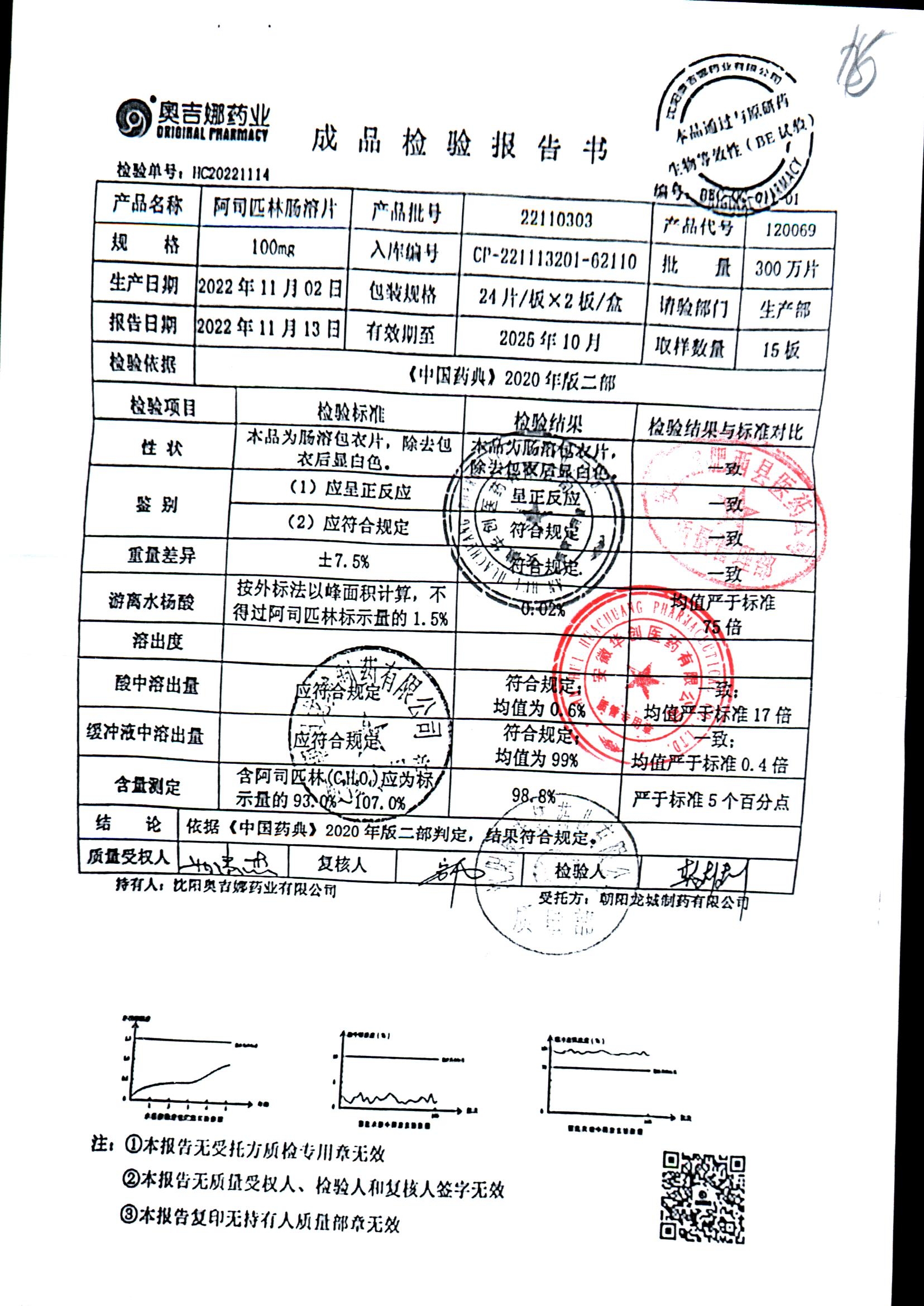 | 阿司匹林腸溶片 | 100mg*24s | 20191101 | 查看詳情 |
