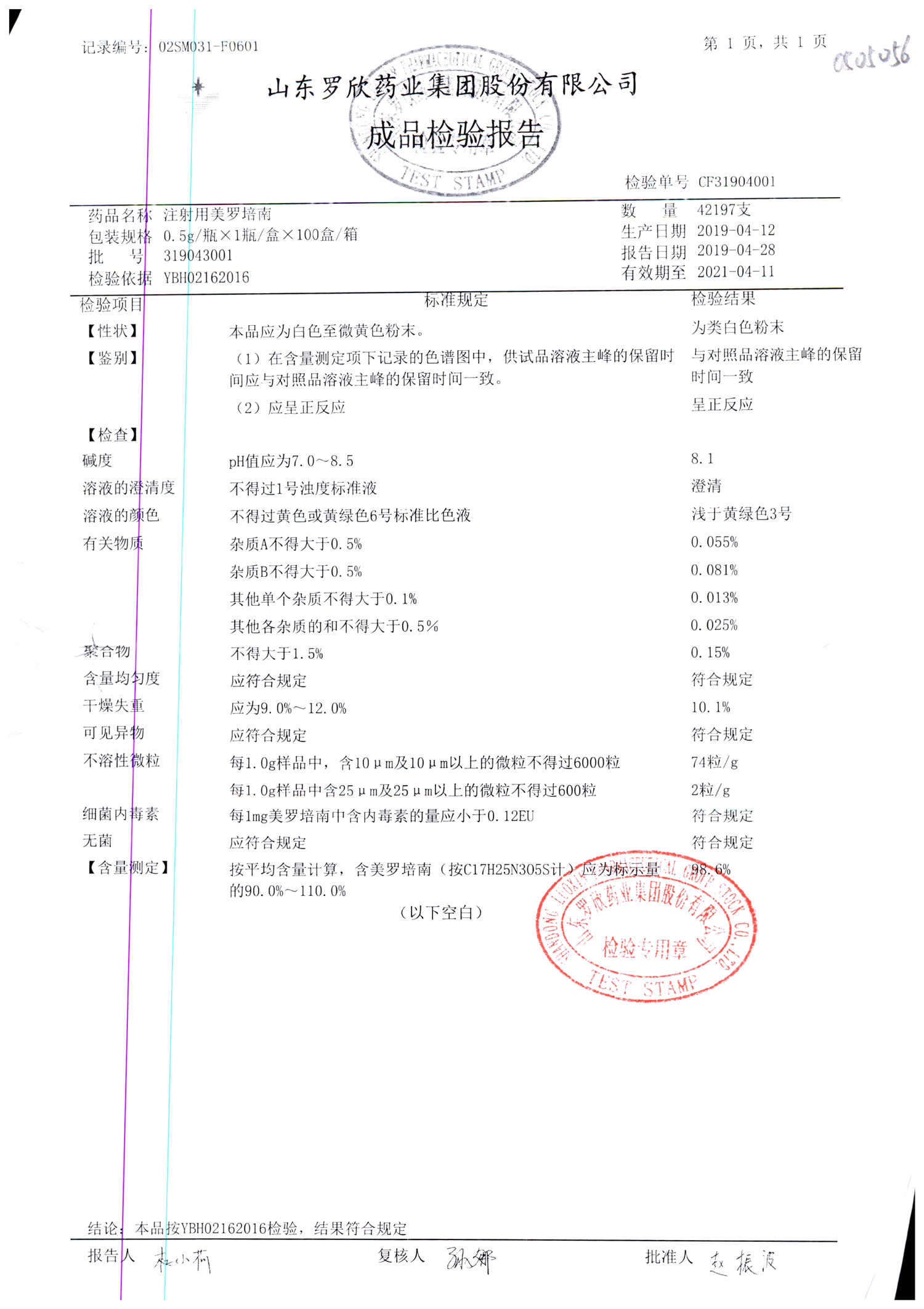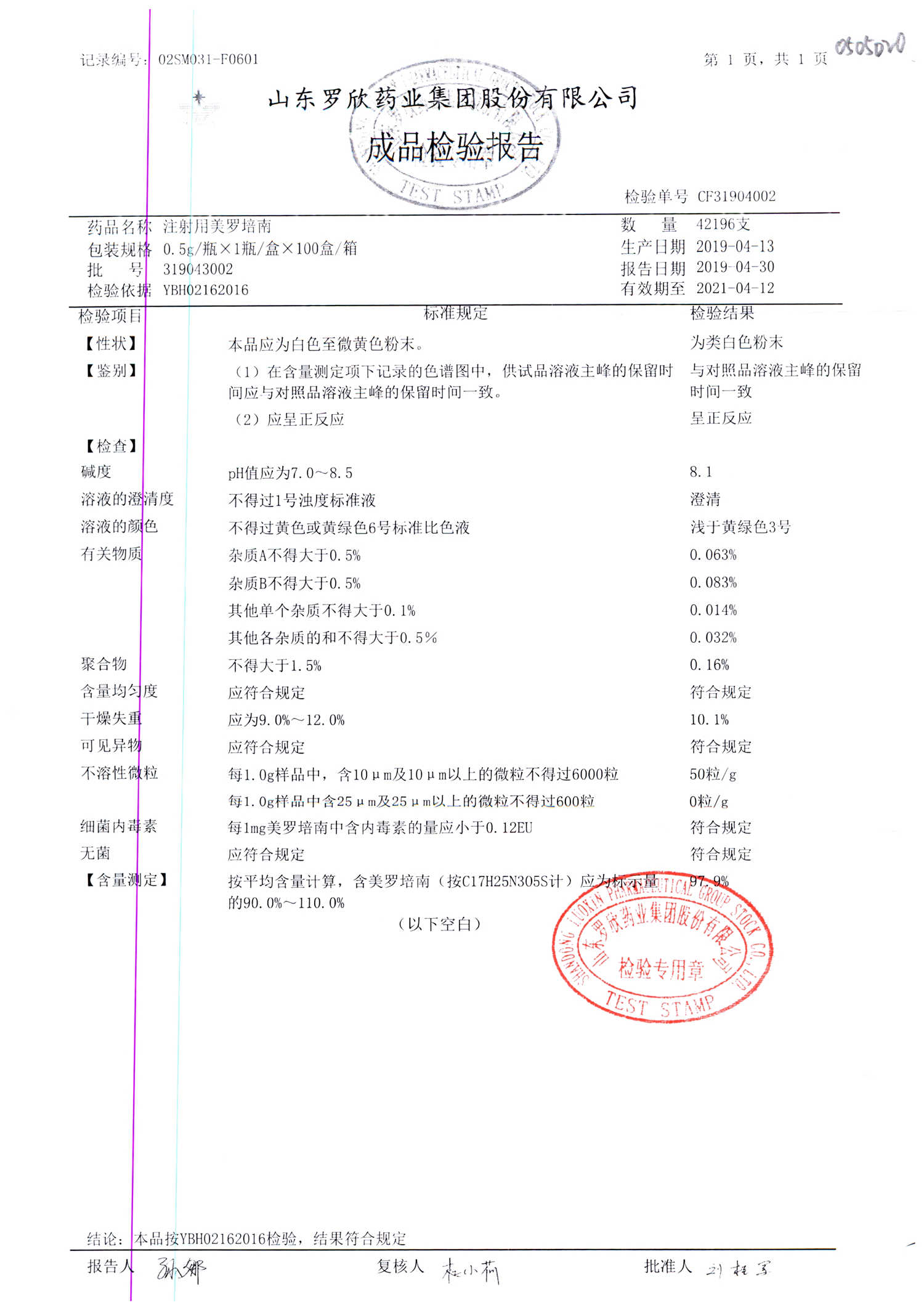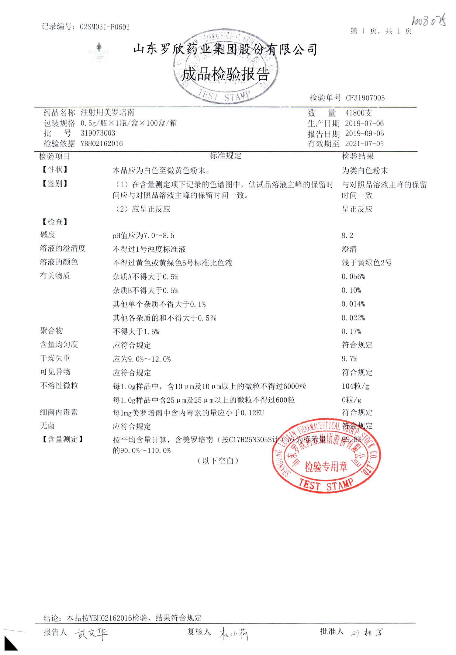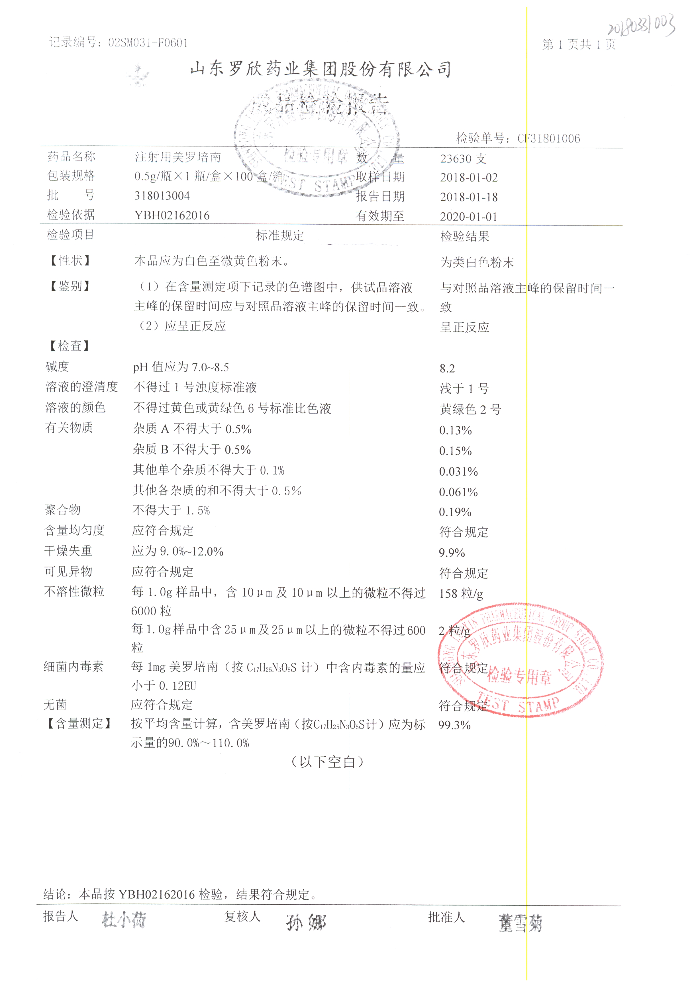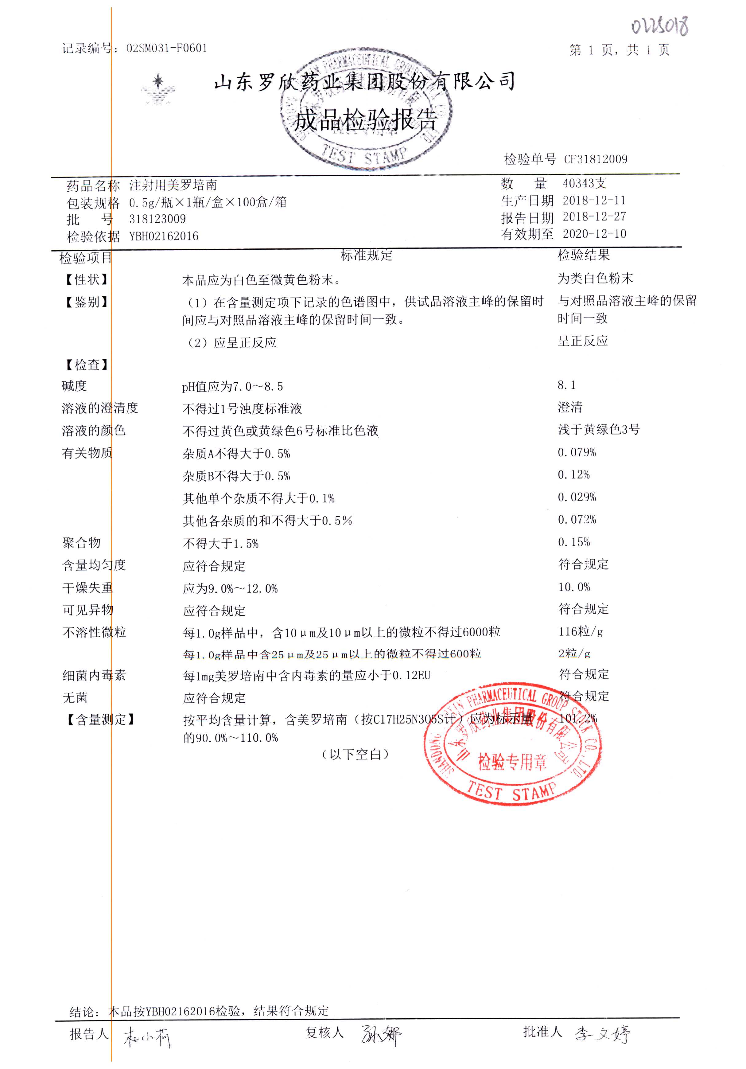 | 注射用美羅培南 | 0.5g | 318053026 | 查看詳情 |