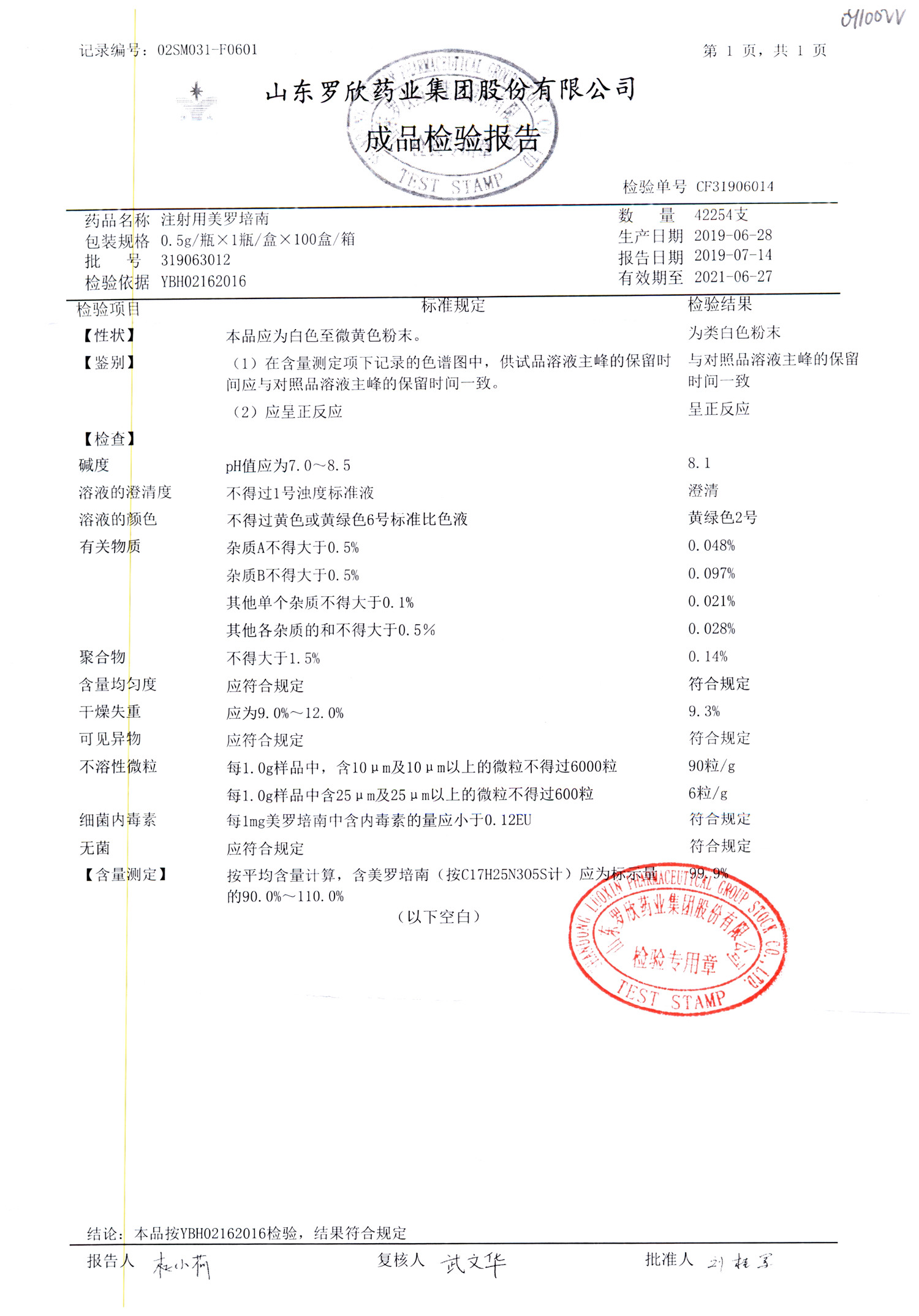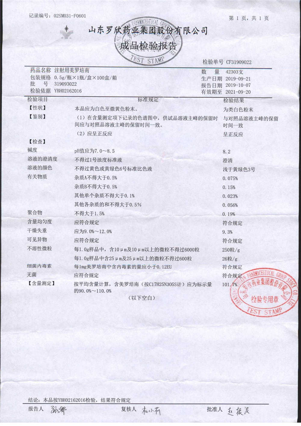 | 注射用美羅培南 | 0.5g | 319093022 | 查看詳情 |
