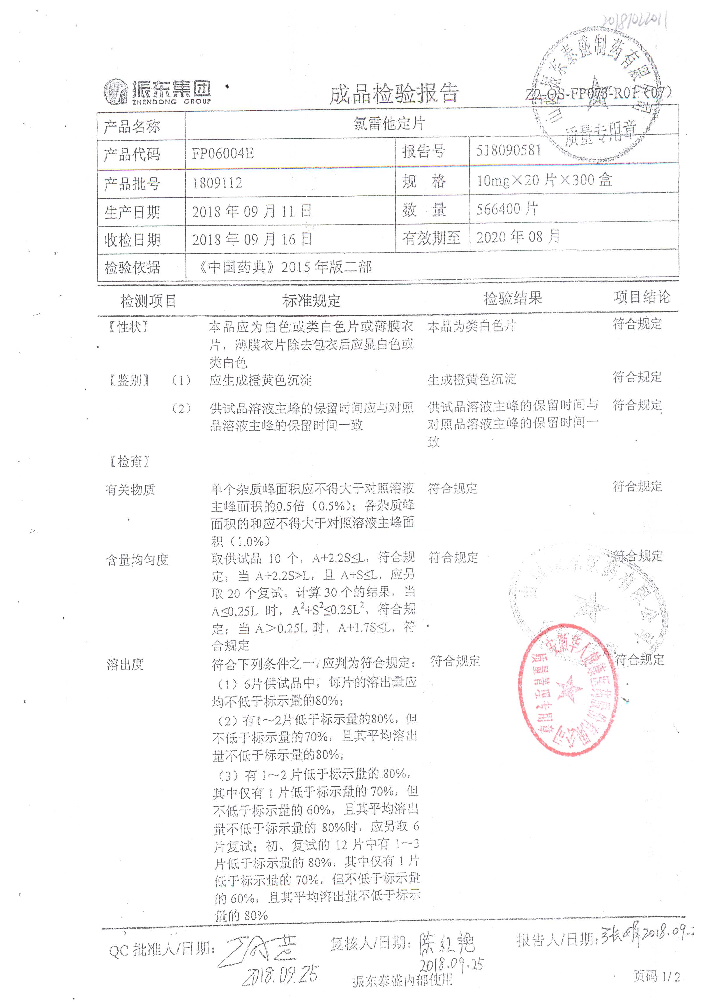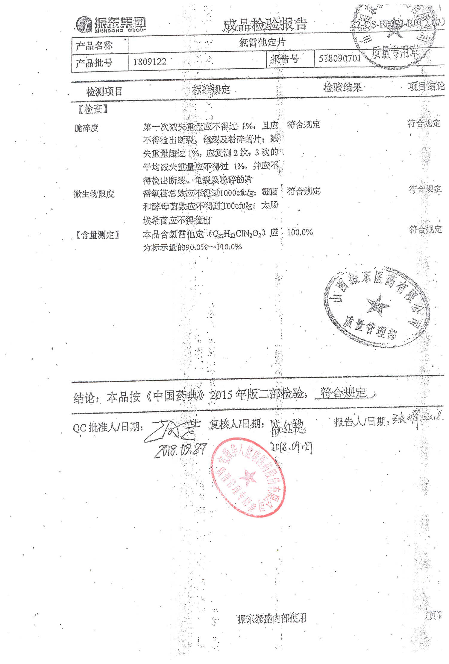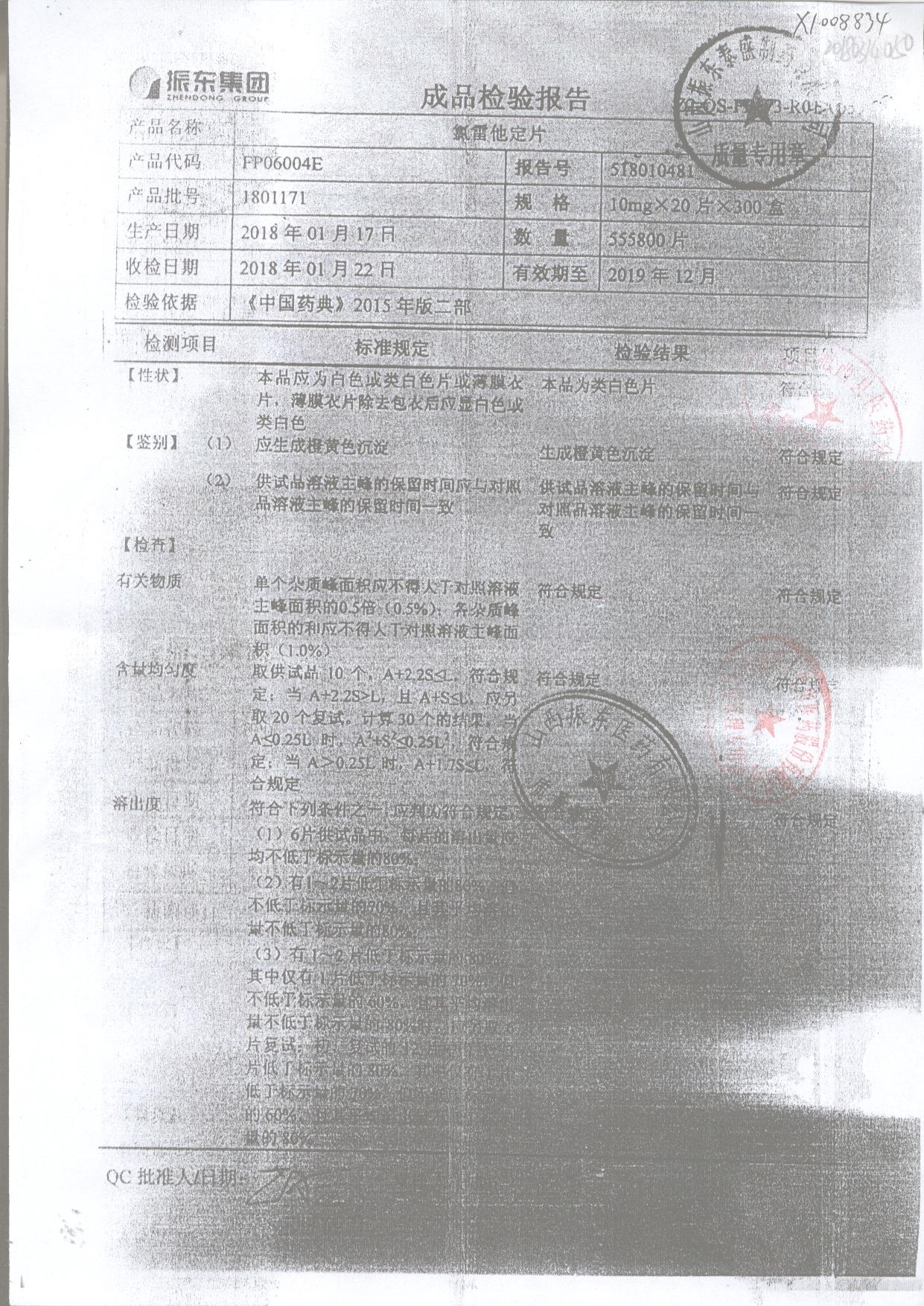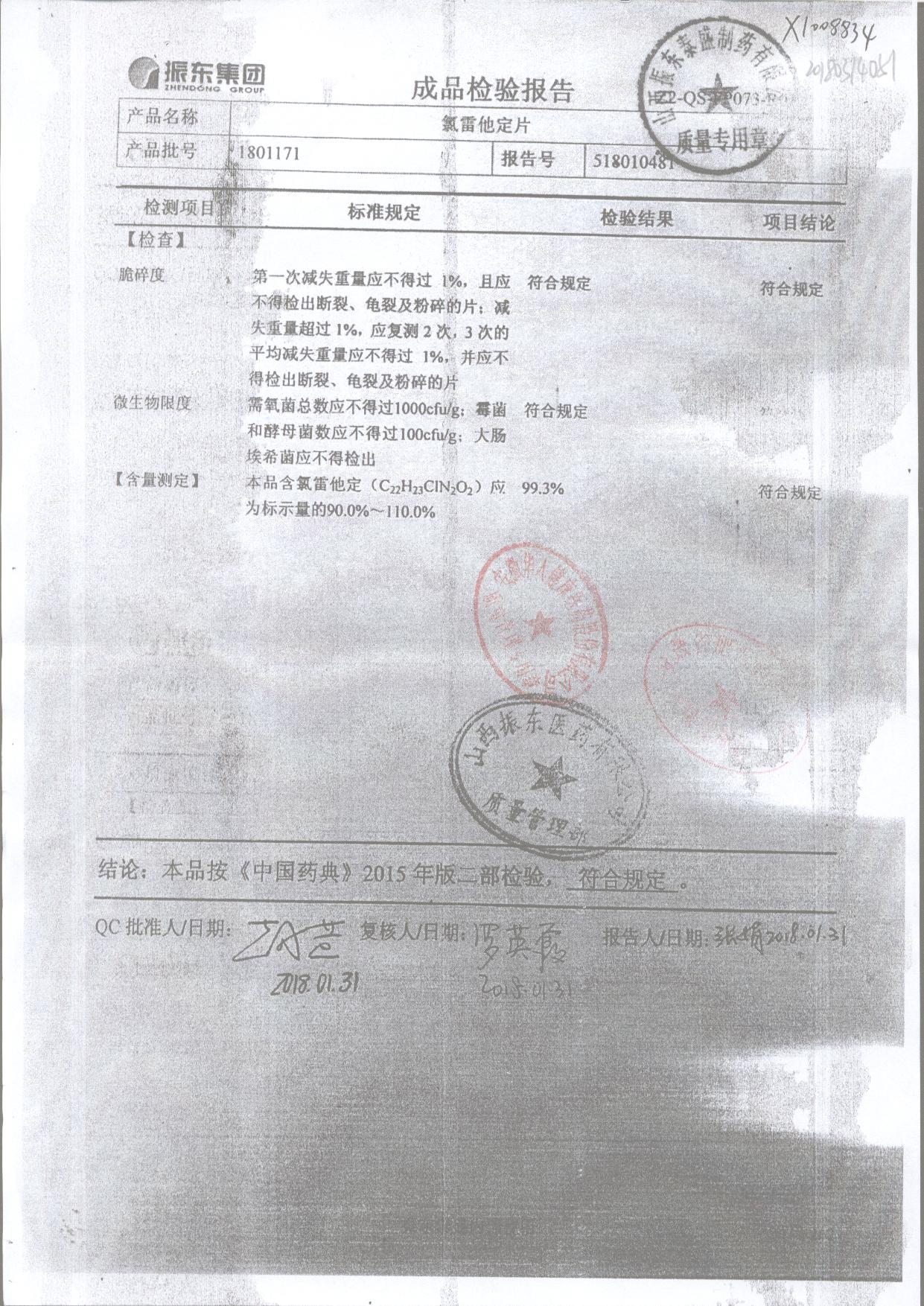 | 氯雷他定片 | 10mg*20s | 1809111(2/2) | 查看詳情 |
