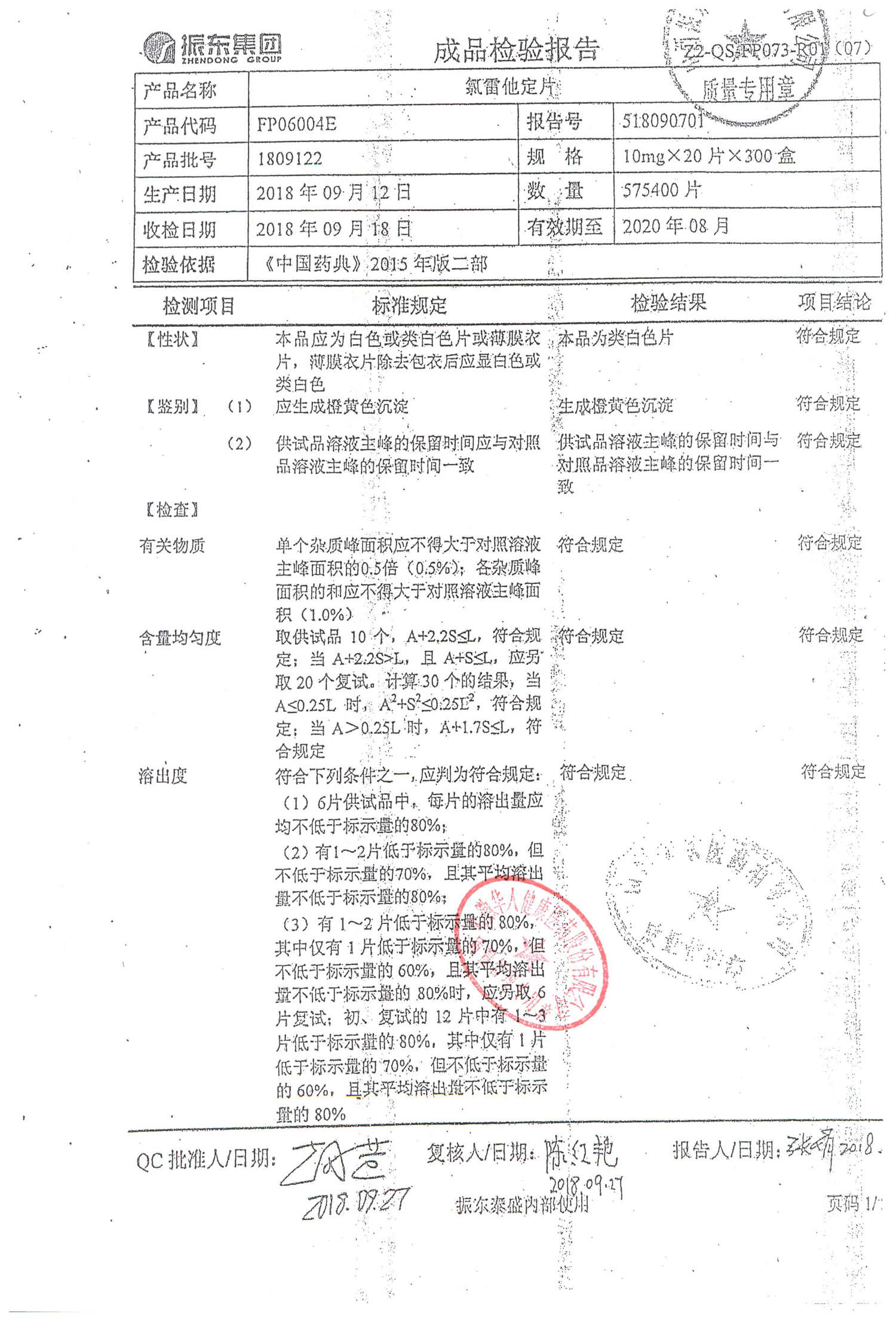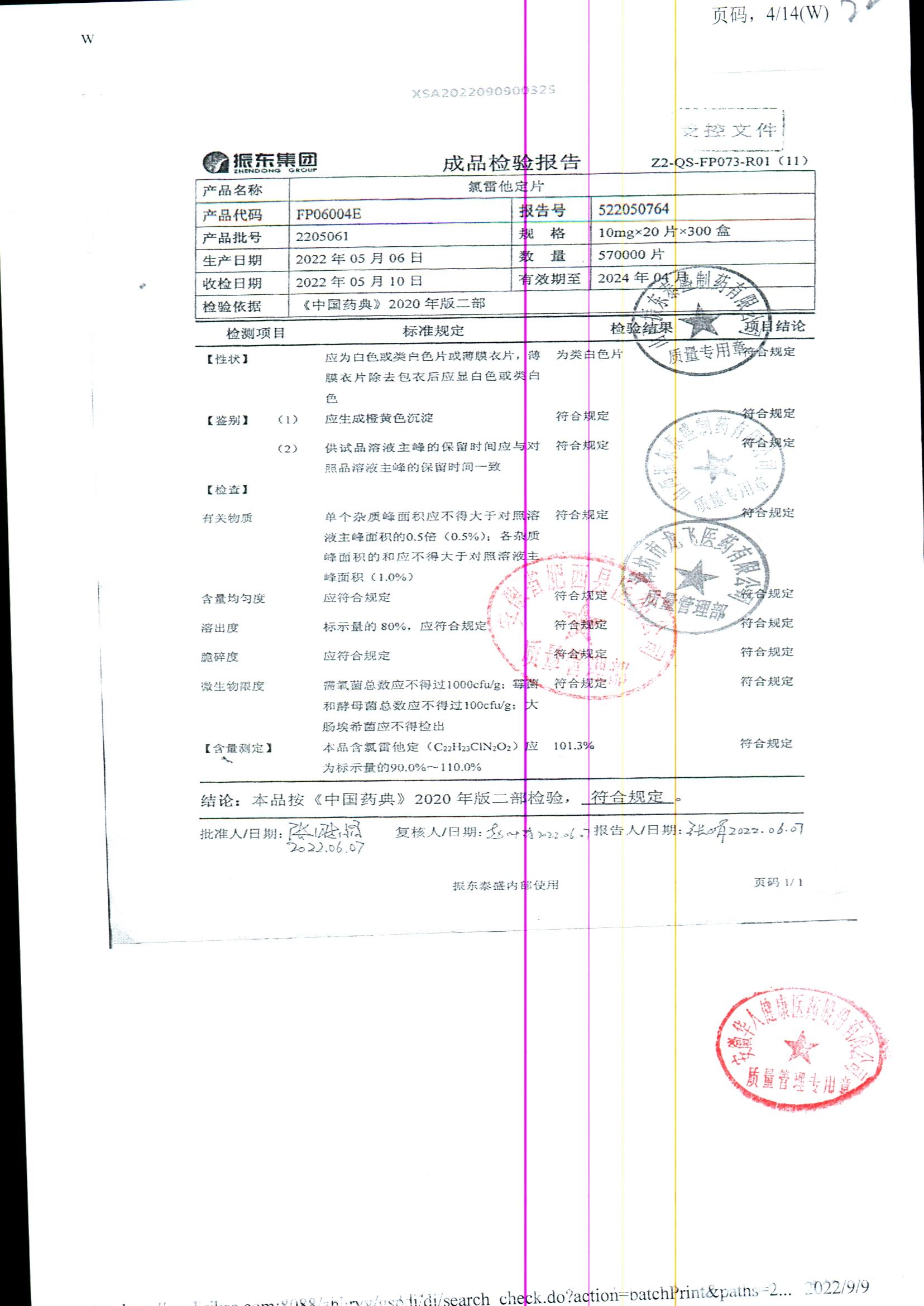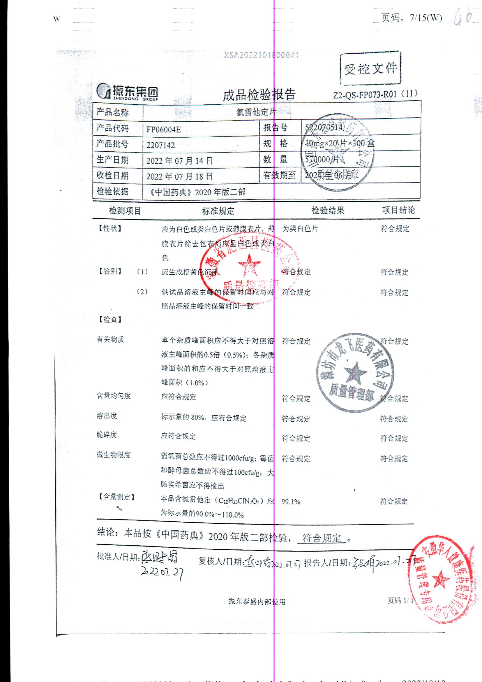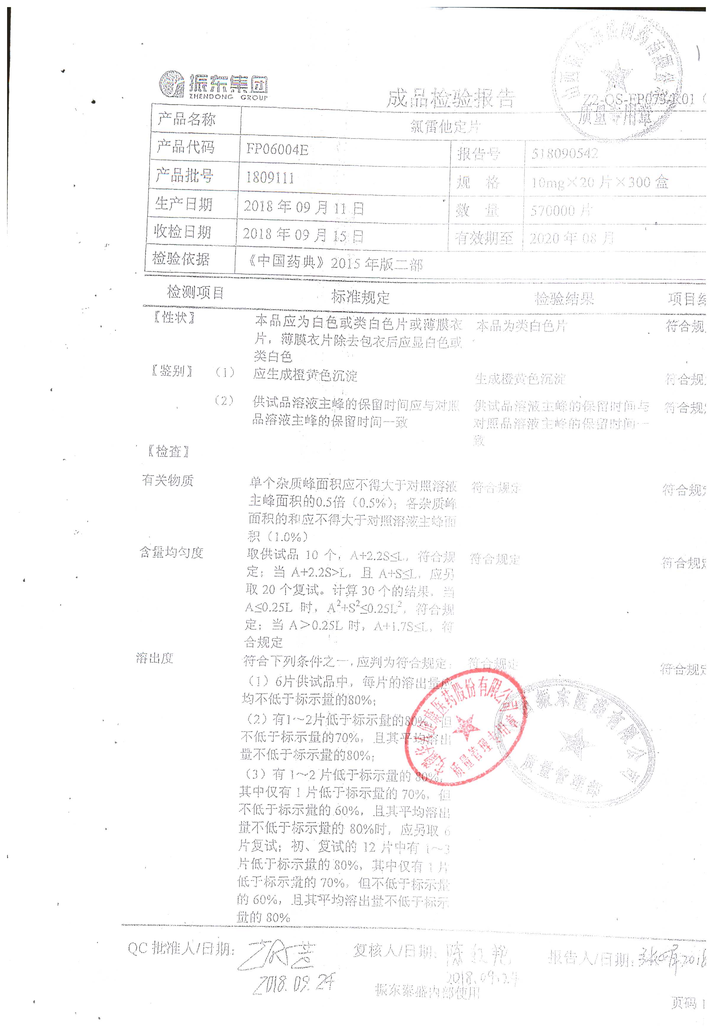 | 氯雷他定片 | 10mg*20s | 1809111(2/2) | 查看詳情 |