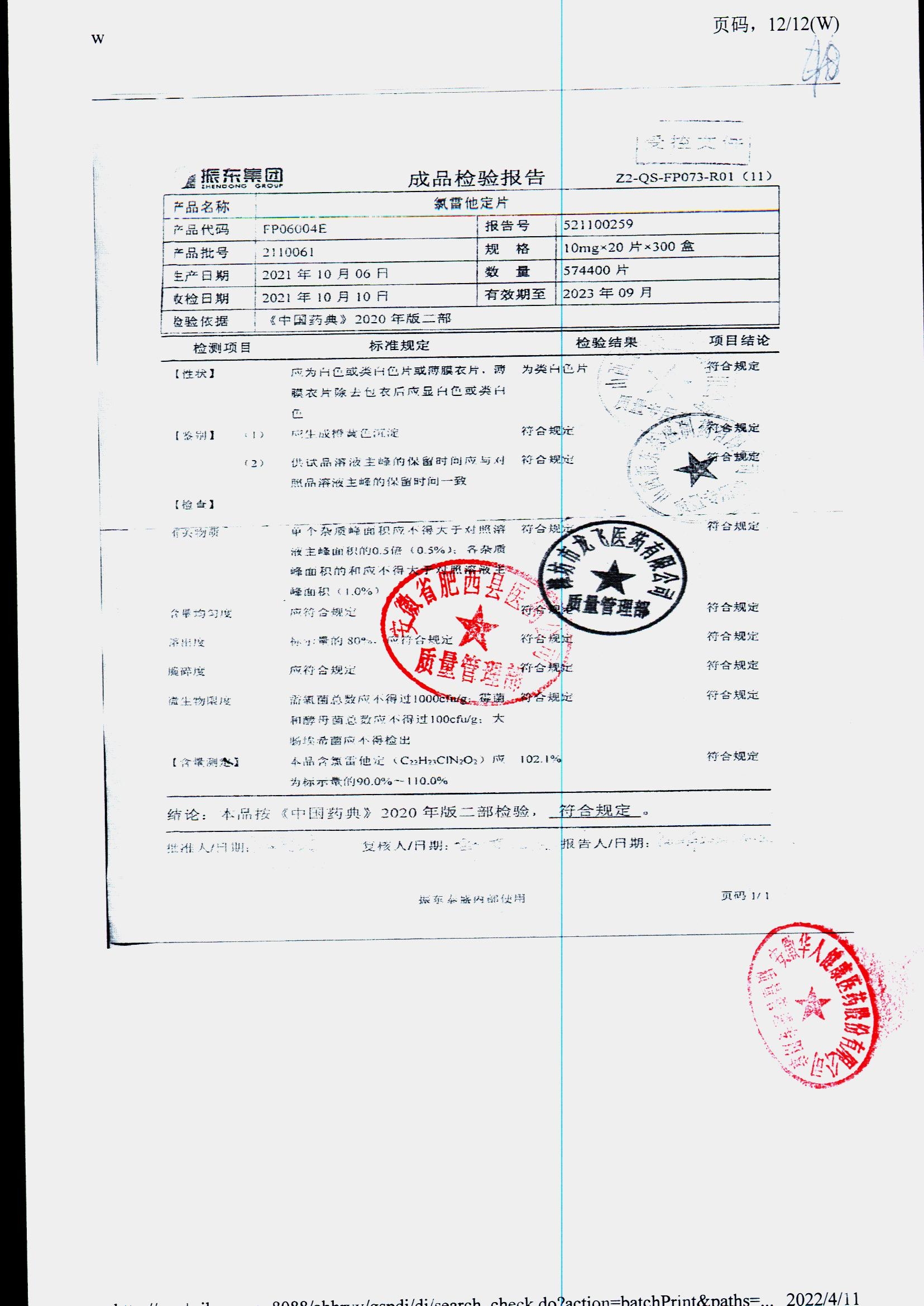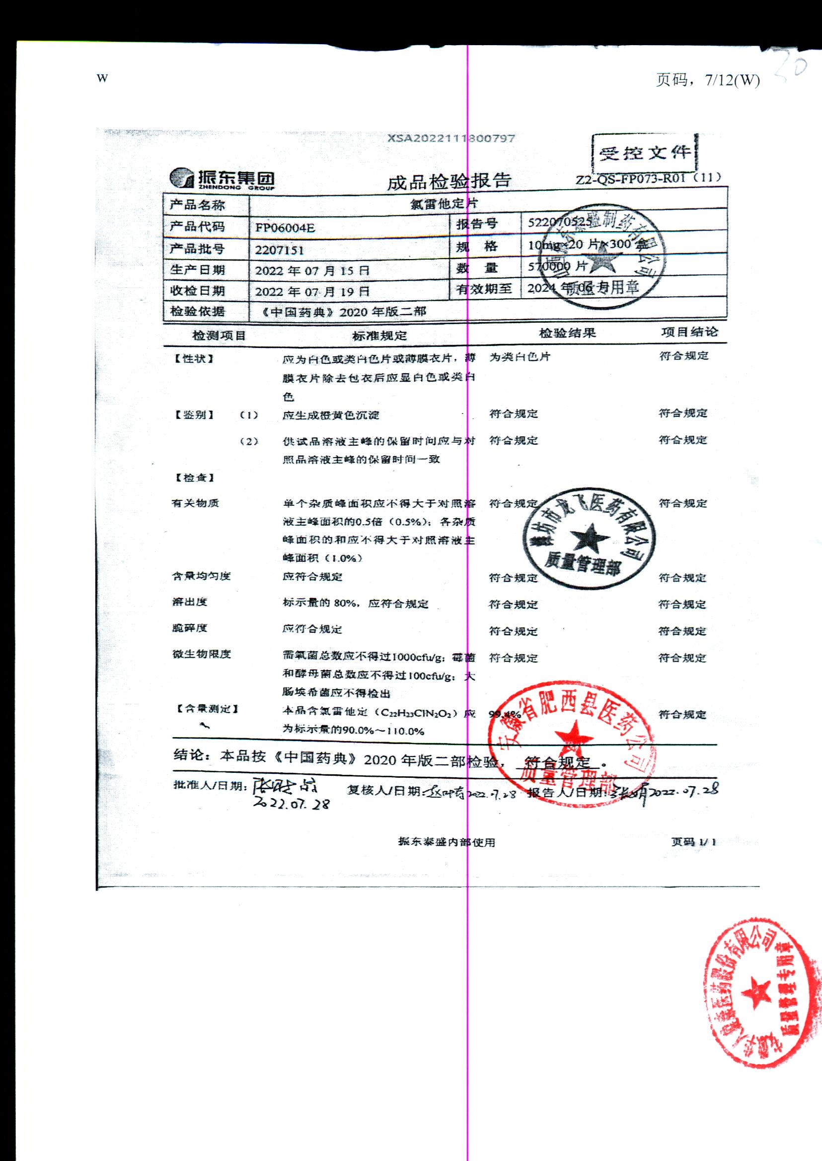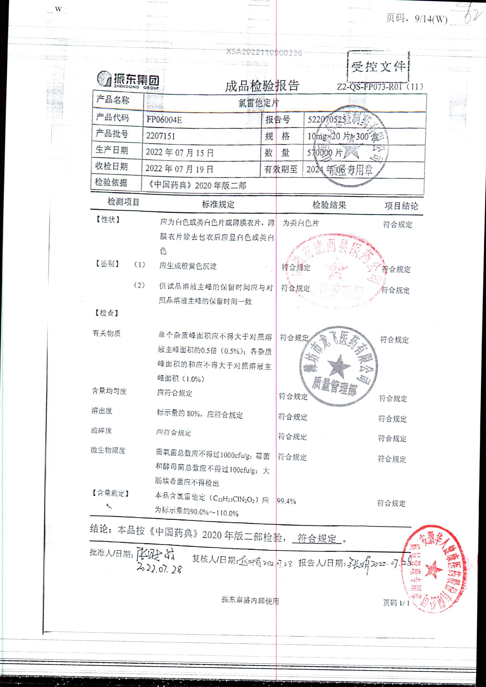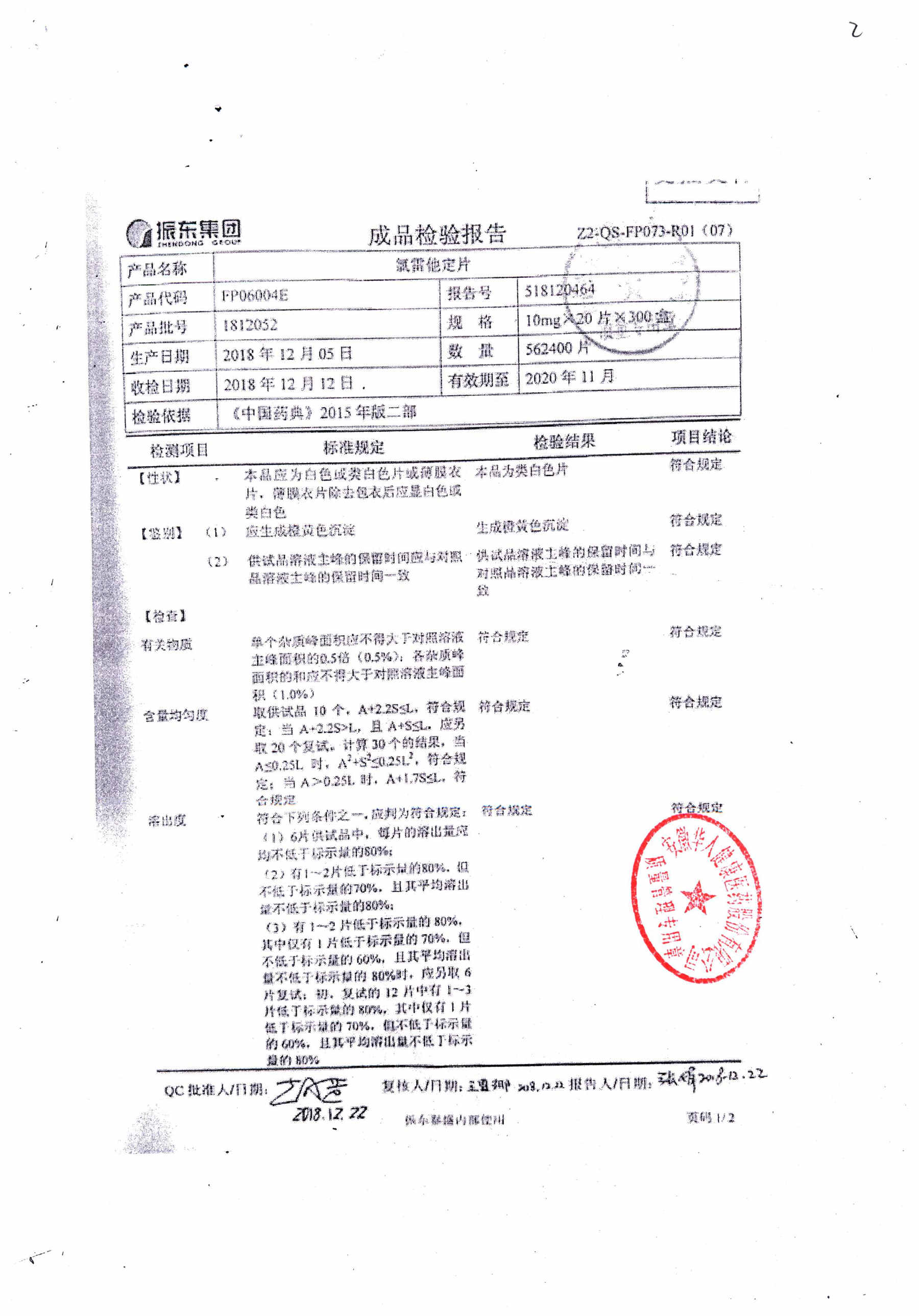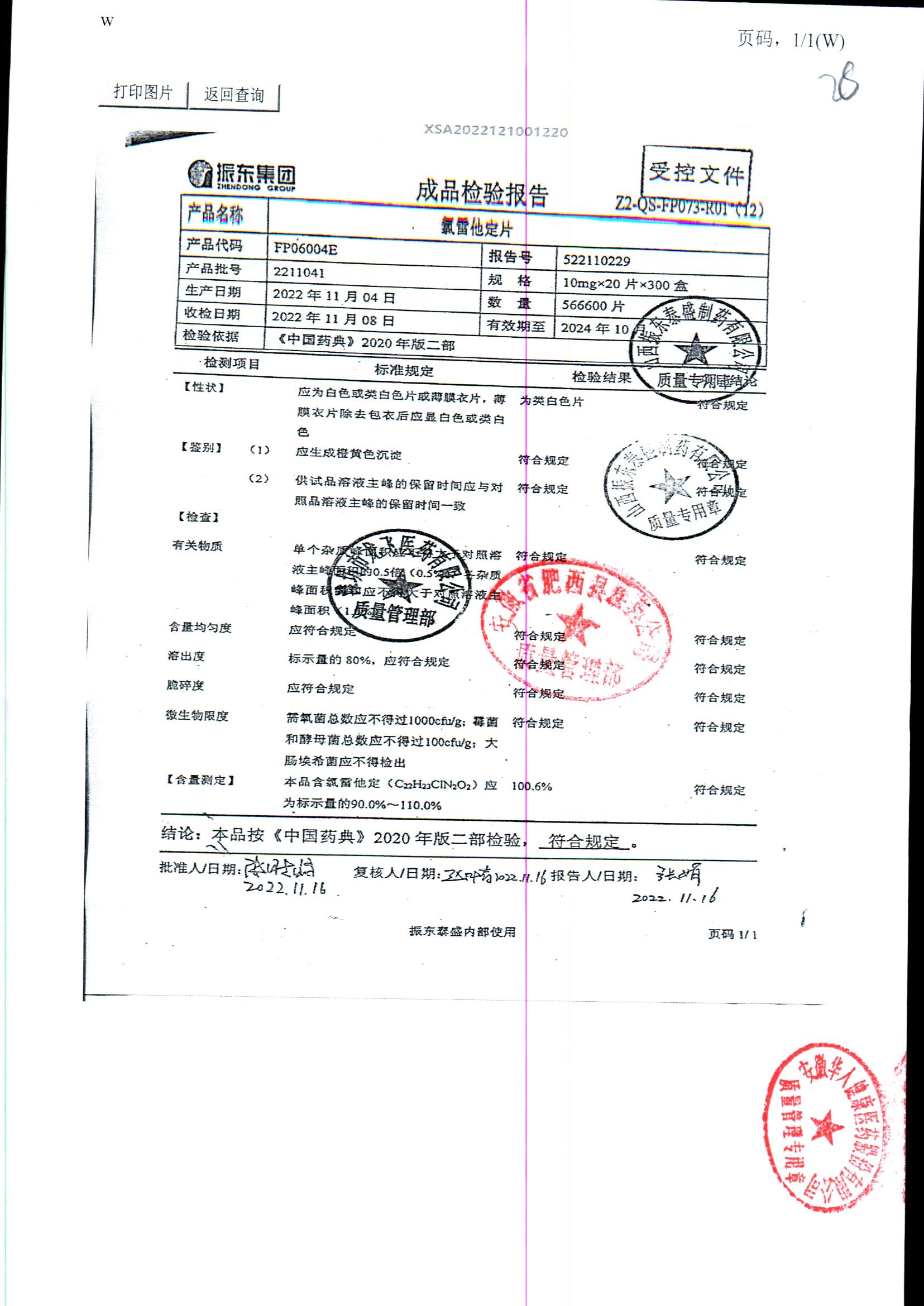 | 氯雷他定片 | 10mg*20s | 1809111(2/2) | 查看詳情 |